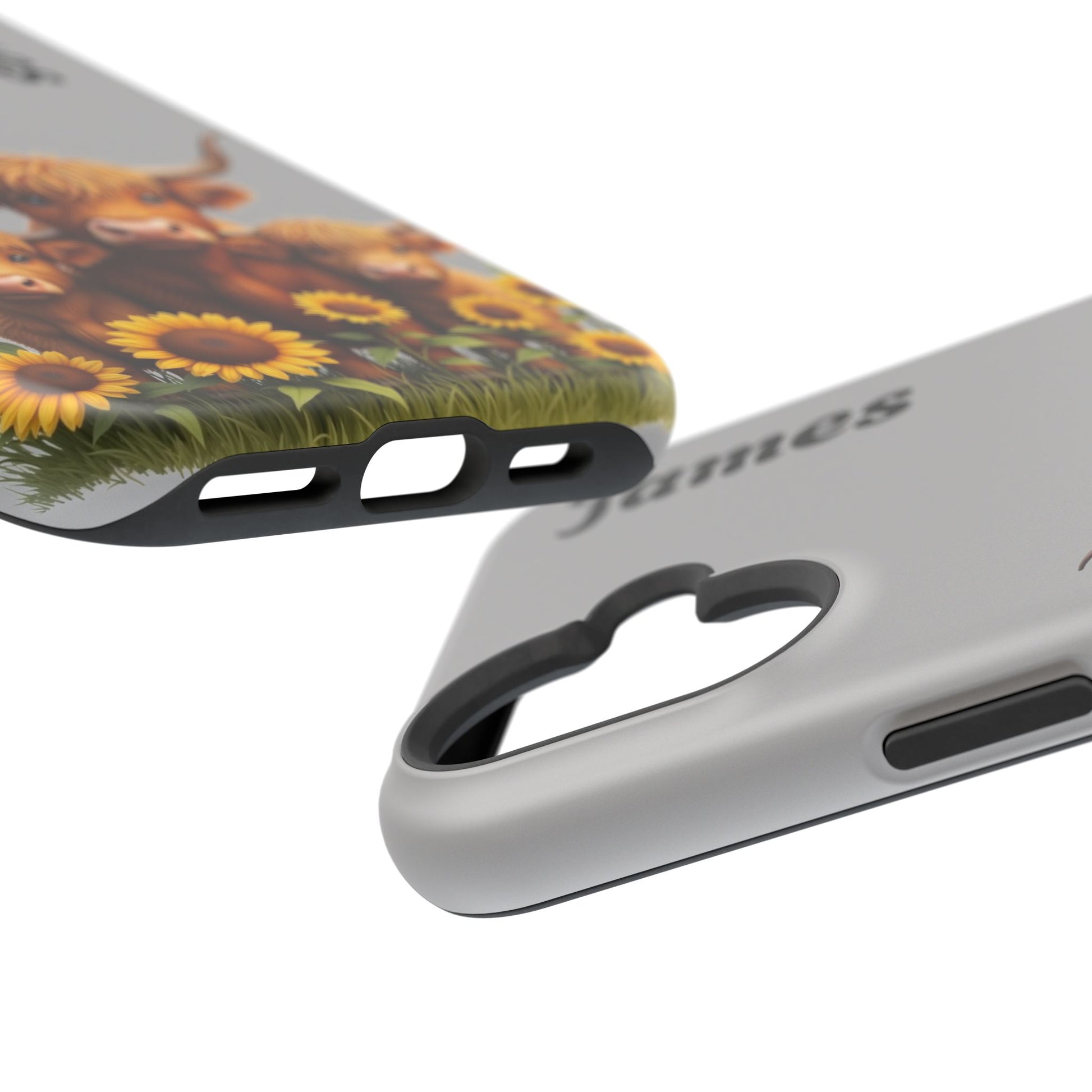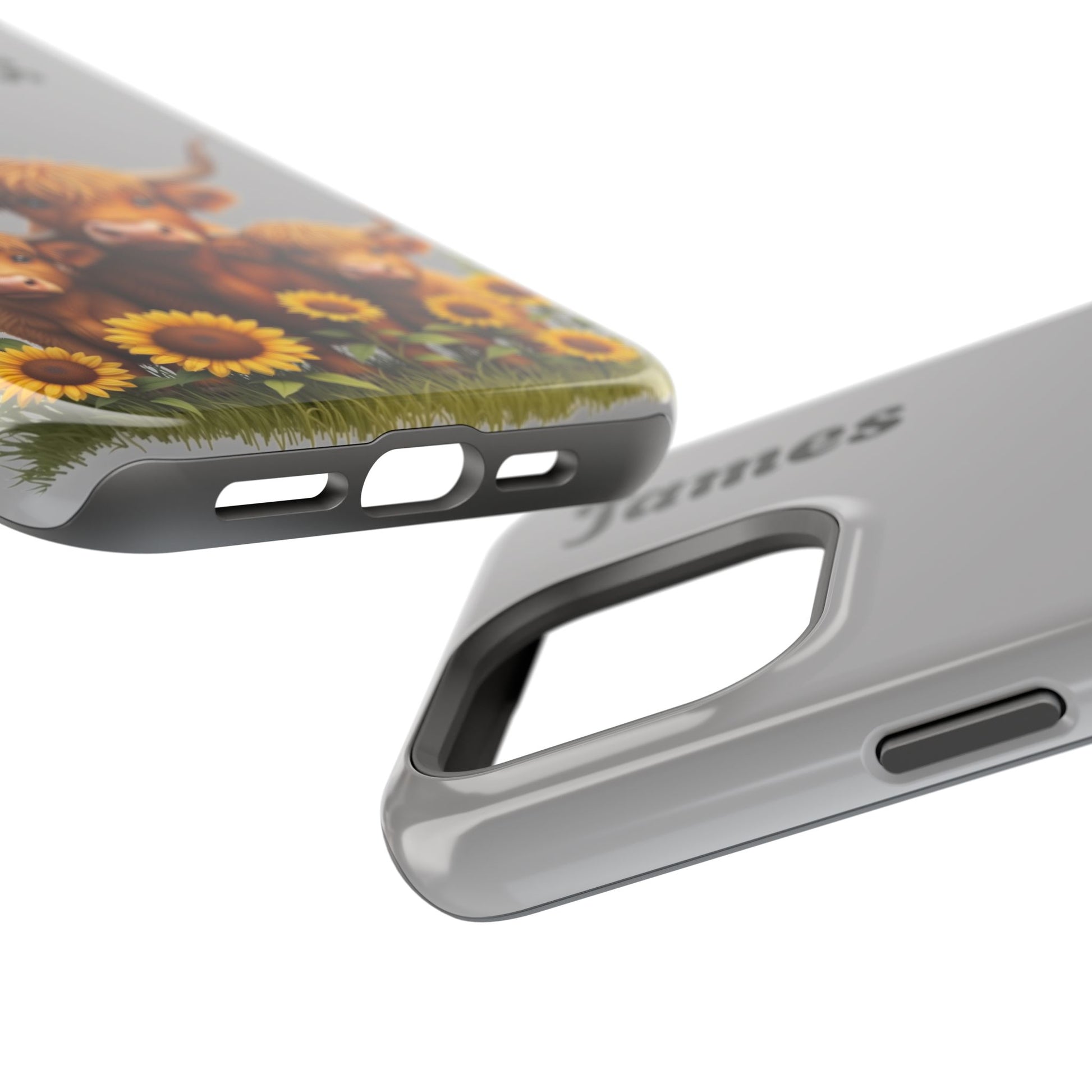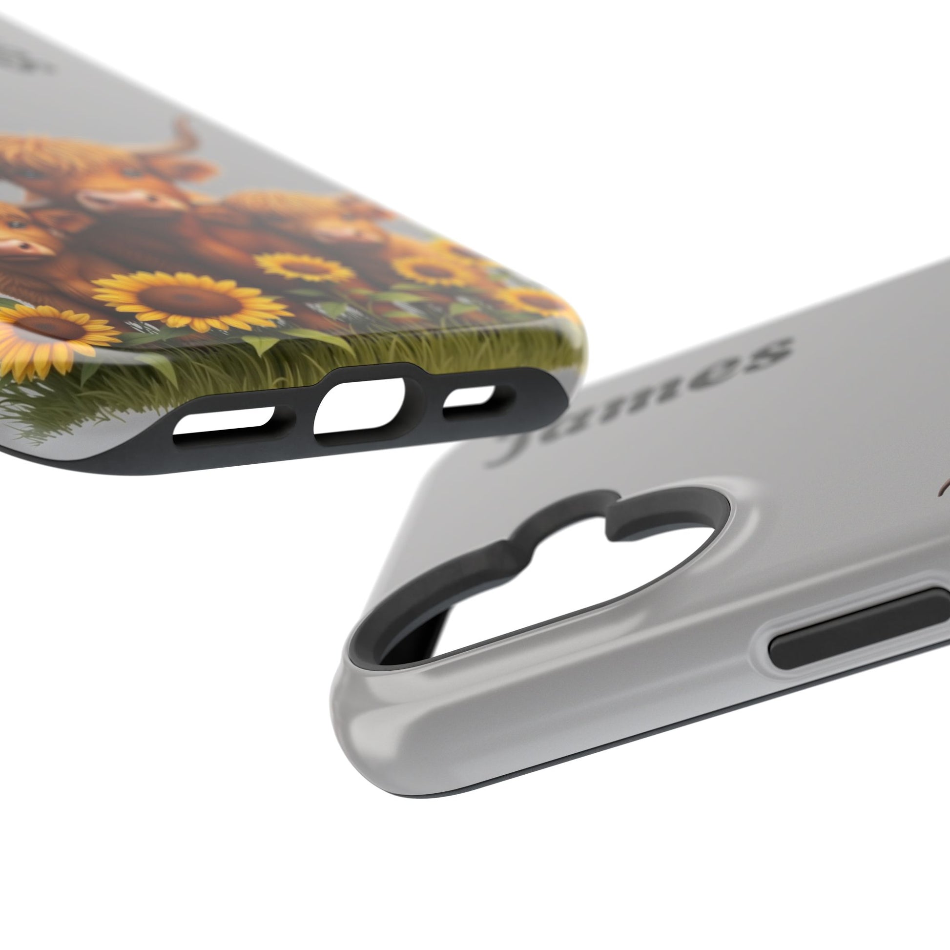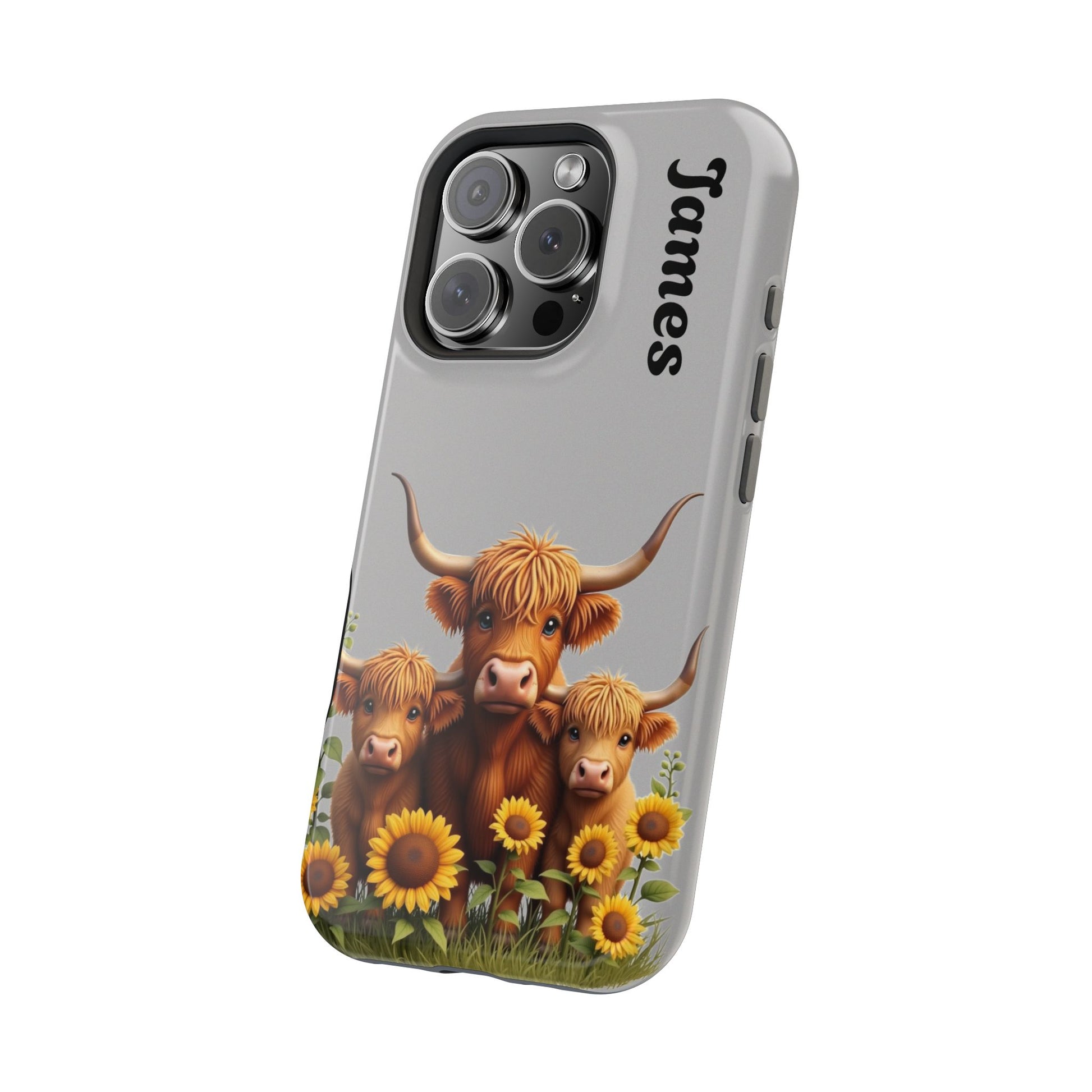 Is your phone feeling…a little lonely? Brighten up your day with our utterly adorable Highland Cow Family iPhone case! Featuring a sweet illustration of a mama and baby cow nestled amongst cheerful sunflowers on a soft gray background, this case isn’t just protection – it's a heartwarming reminder of love and connection. And the best part? You can personalize it with a name to make it uniquely yours!