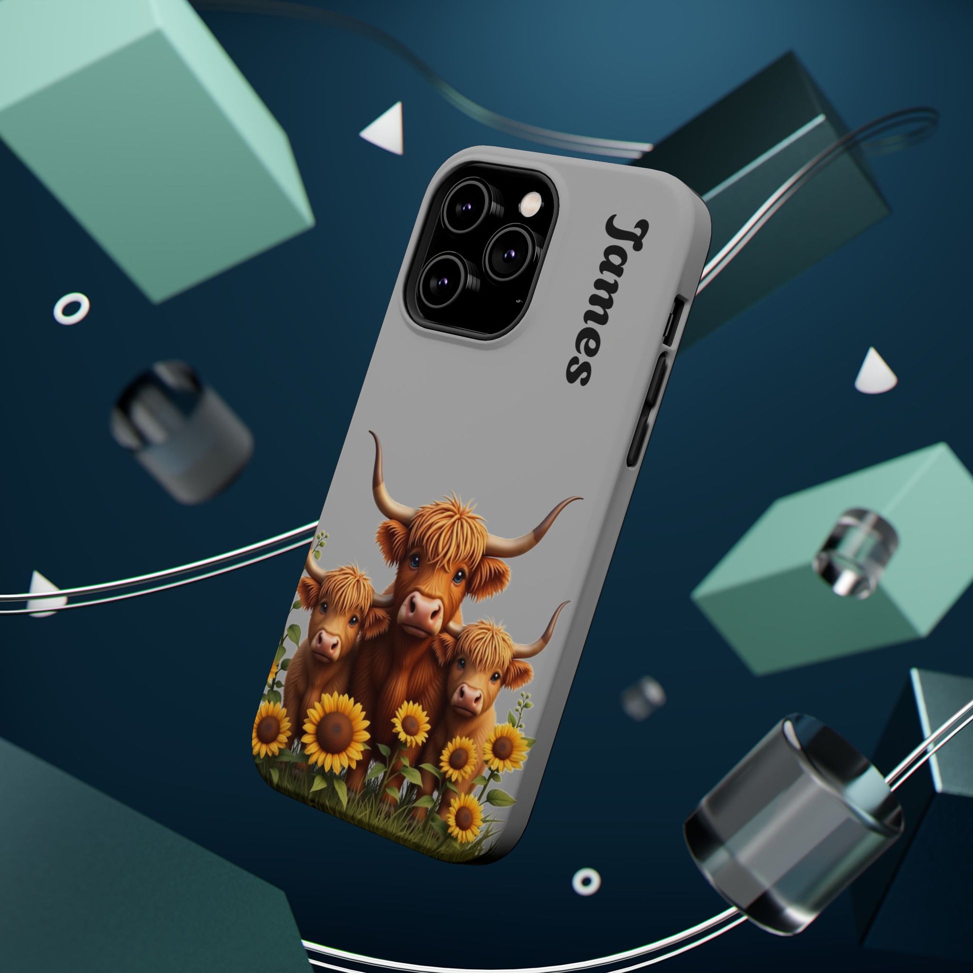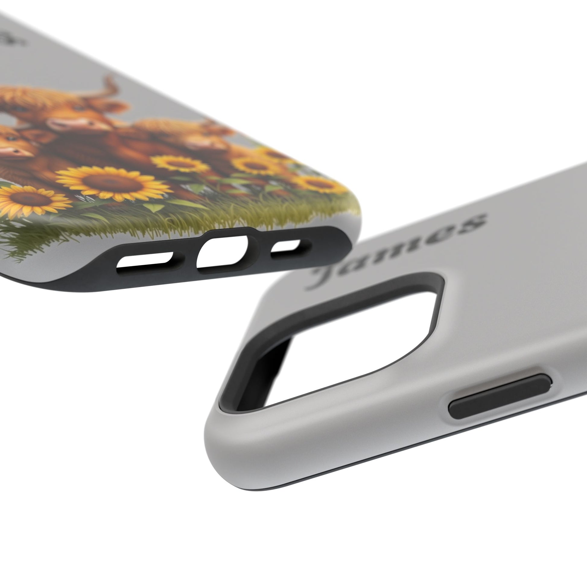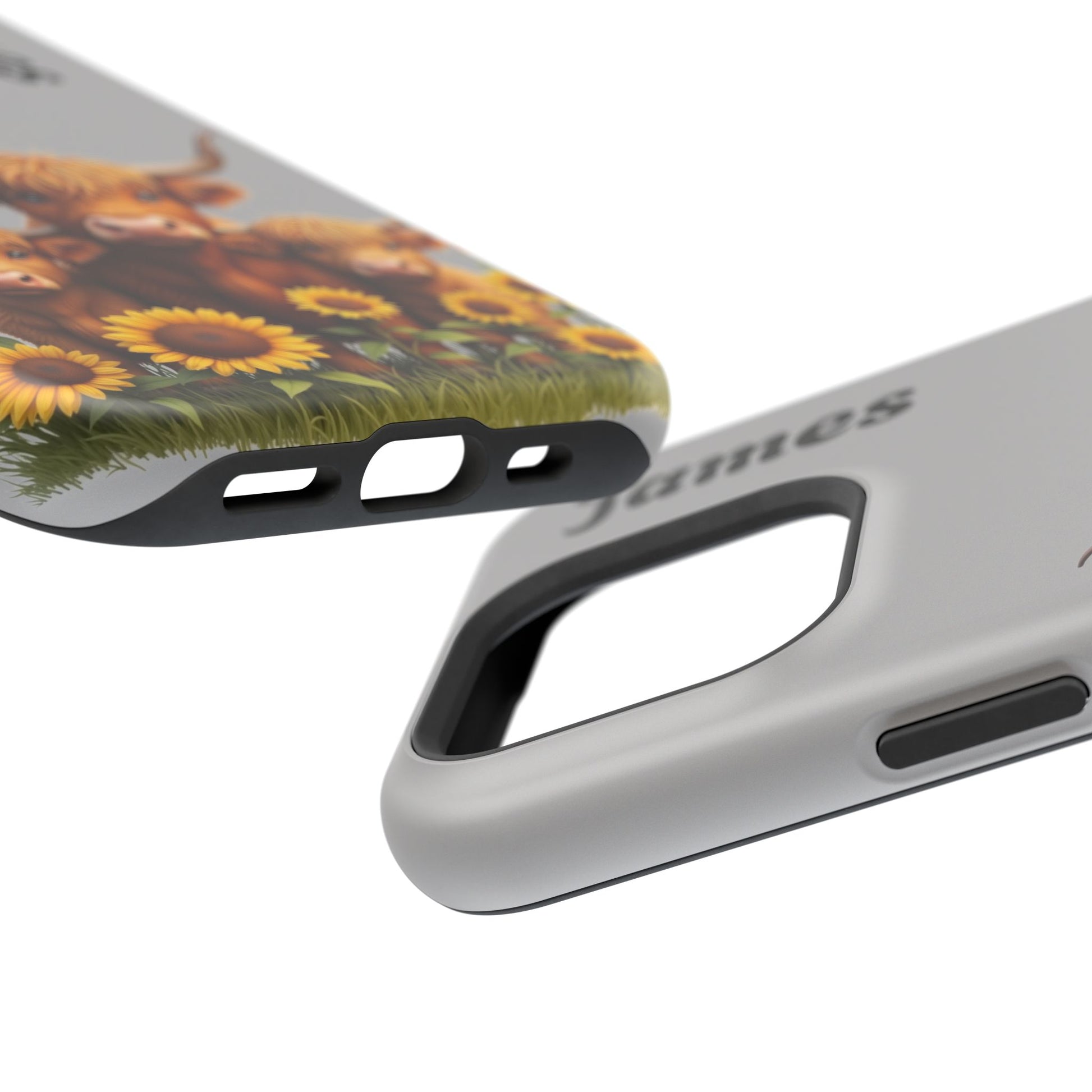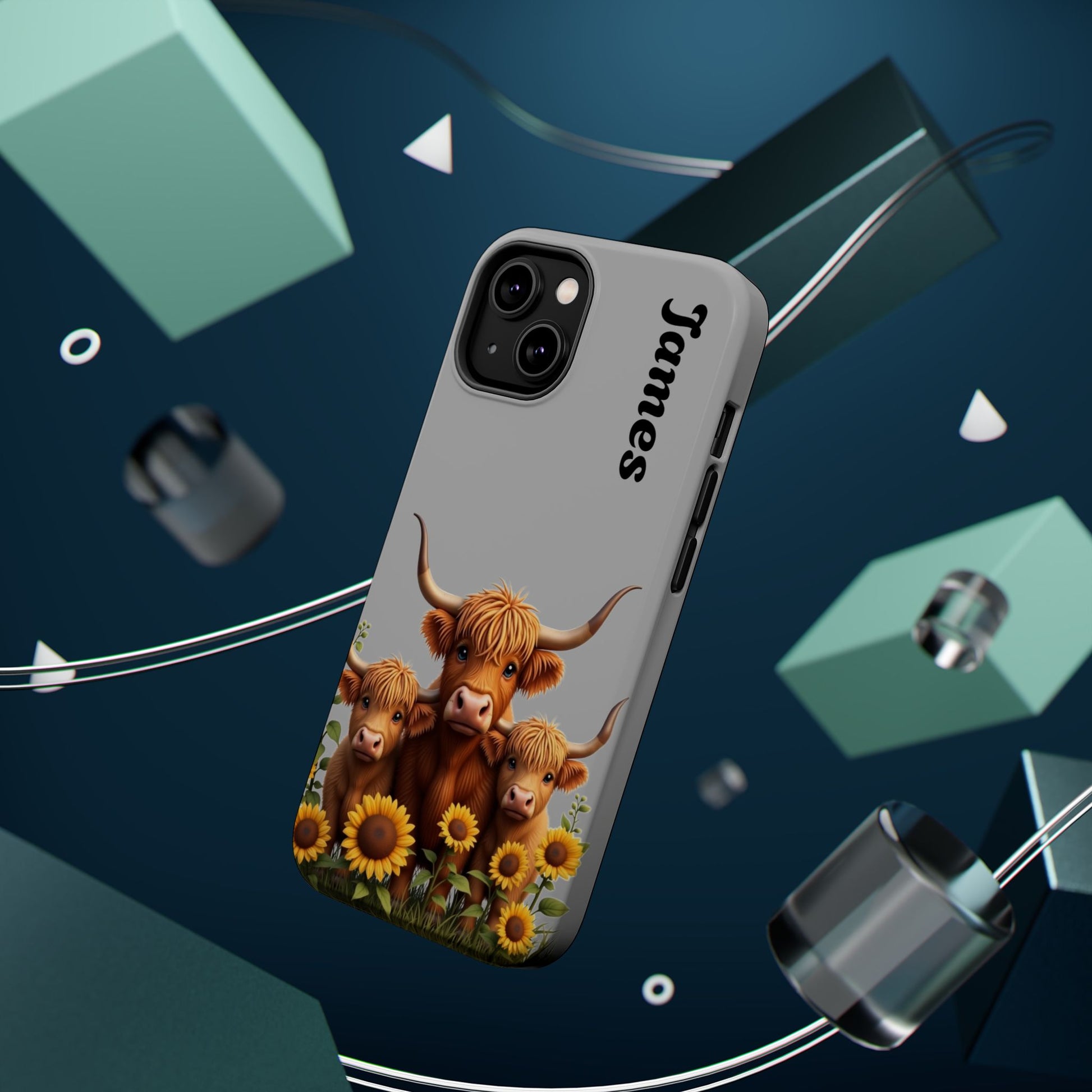 Is your phone feeling…a little lonely? Brighten up your day with our utterly adorable Highland Cow Family iPhone case! Featuring a sweet illustration of a mama and baby cow nestled amongst cheerful sunflowers on a soft gray background, this case isn’t just protection – it's a heartwarming reminder of love and connection. And the best part? You can personalize it with a name to make it uniquely yours!