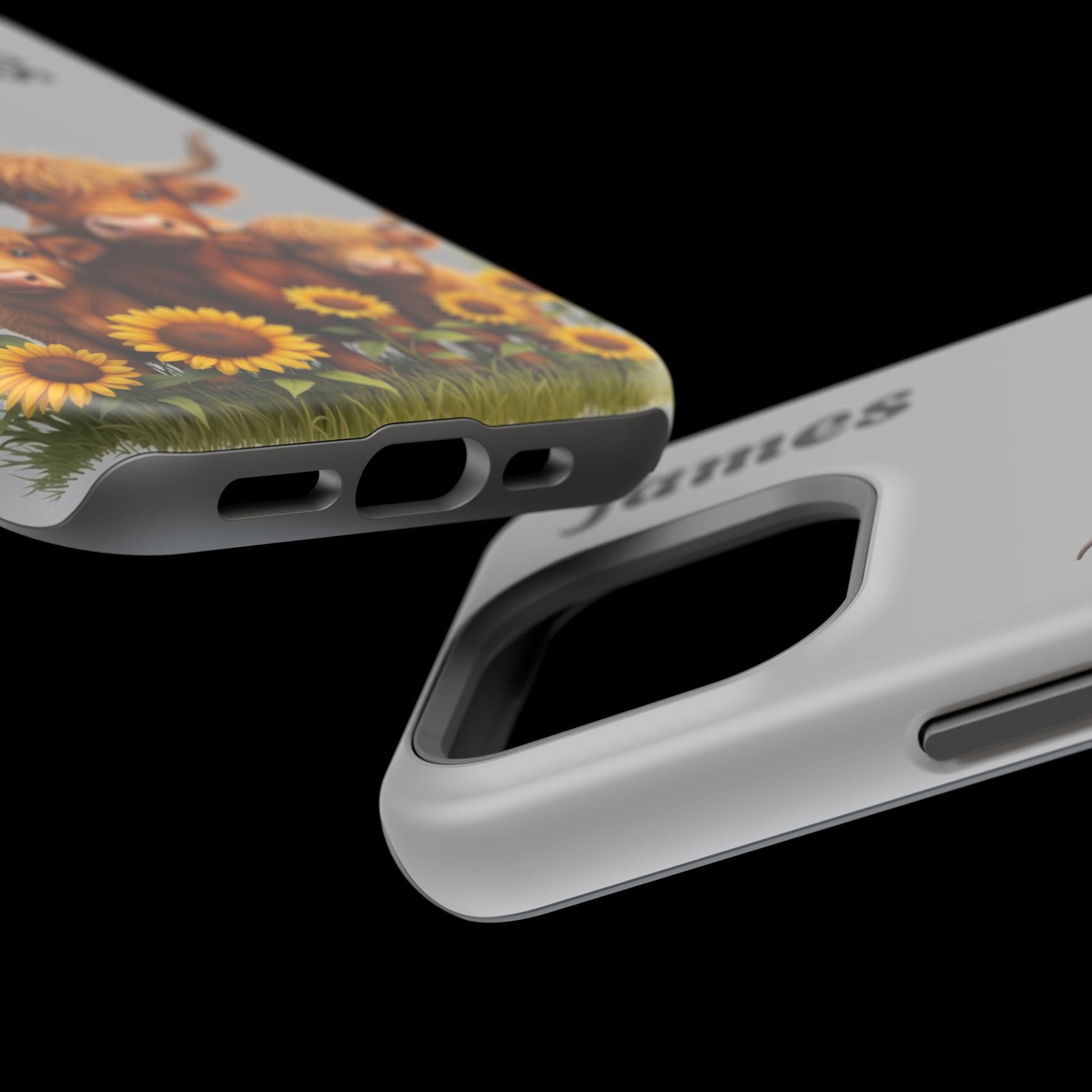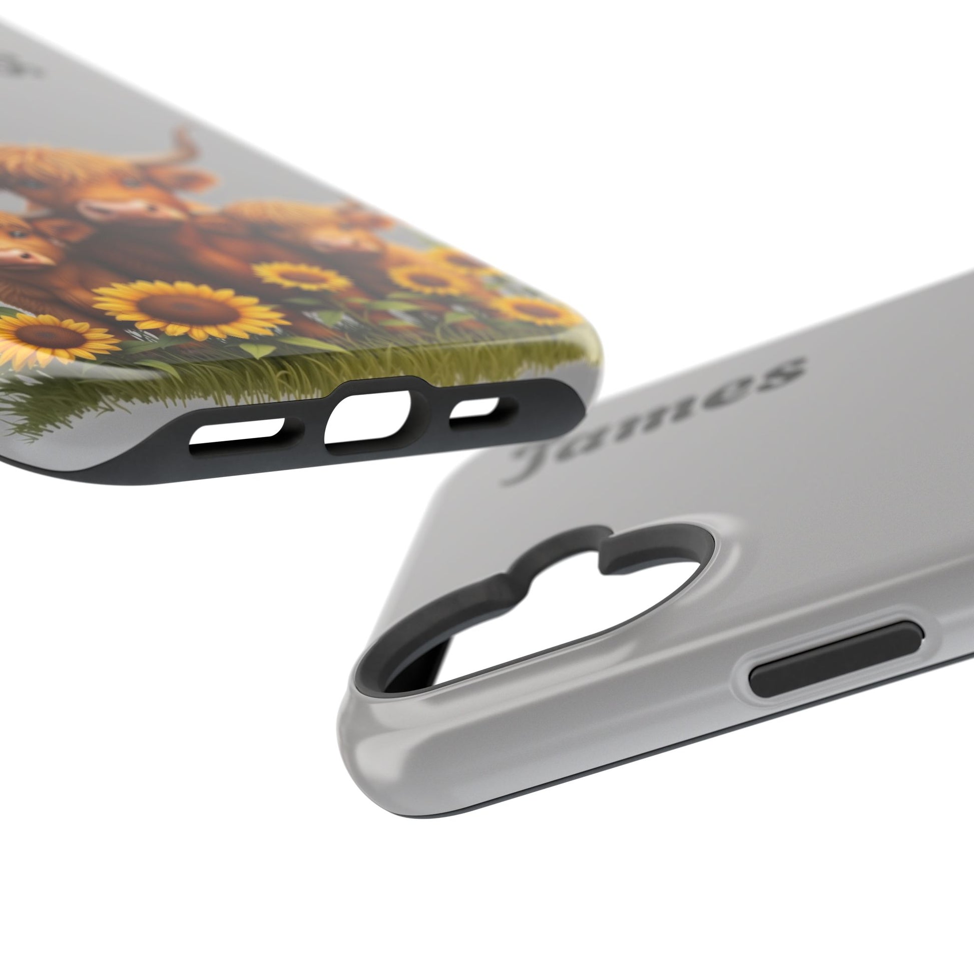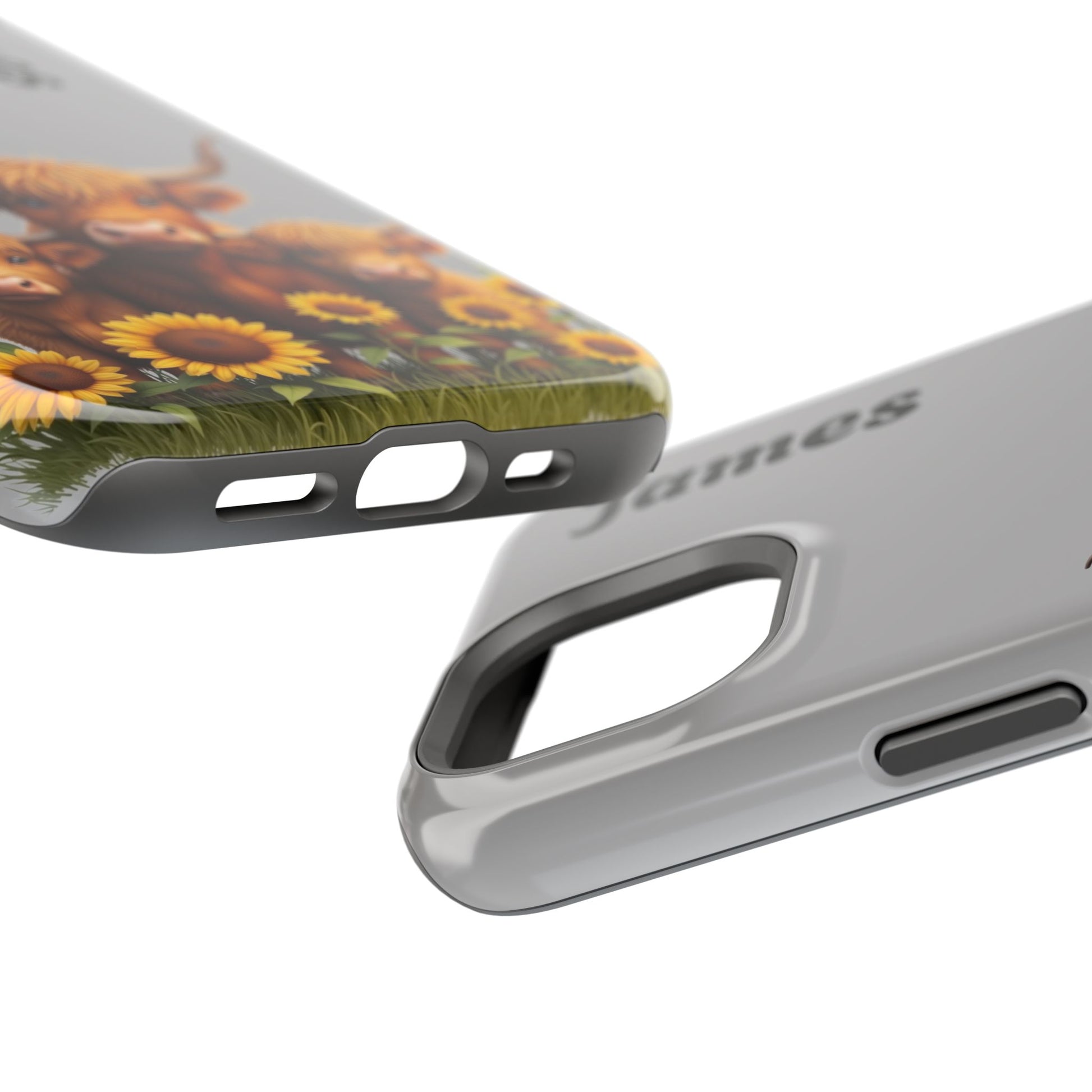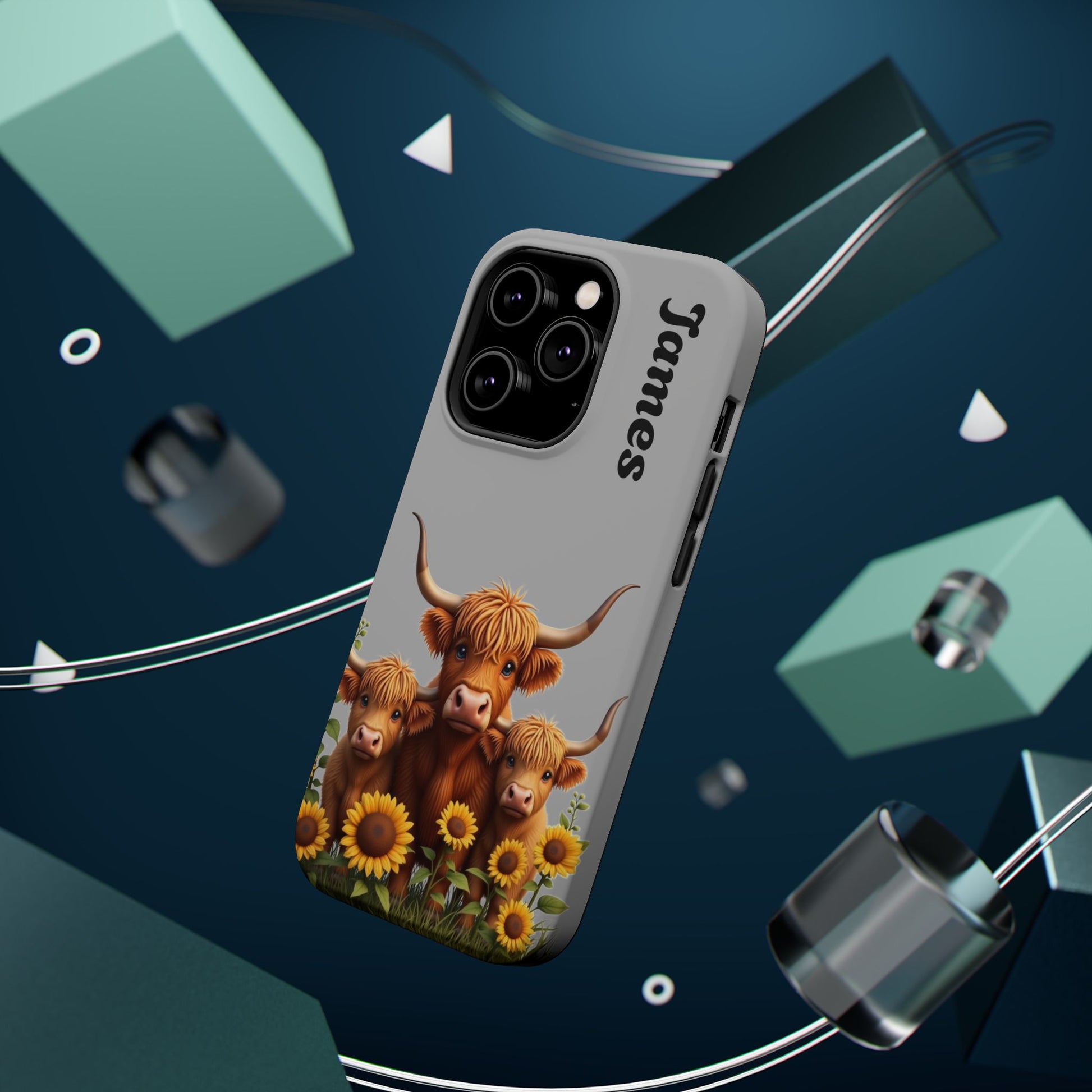 Is your phone feeling…a little lonely? Brighten up your day with our utterly adorable Highland Cow Family iPhone case! Featuring a sweet illustration of a mama and baby cow nestled amongst cheerful sunflowers on a soft gray background, this case isn’t just protection – it's a heartwarming reminder of love and connection. And the best part? You can personalize it with a name to make it uniquely yours!