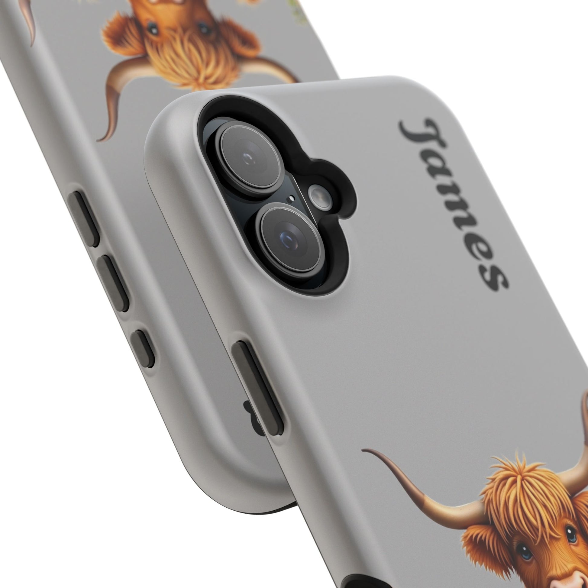 Personalized Gray Highland Cow Phone Case - Custom Name Farm Animal Gift | Cute Gray iPhone Cases for Women & Girls