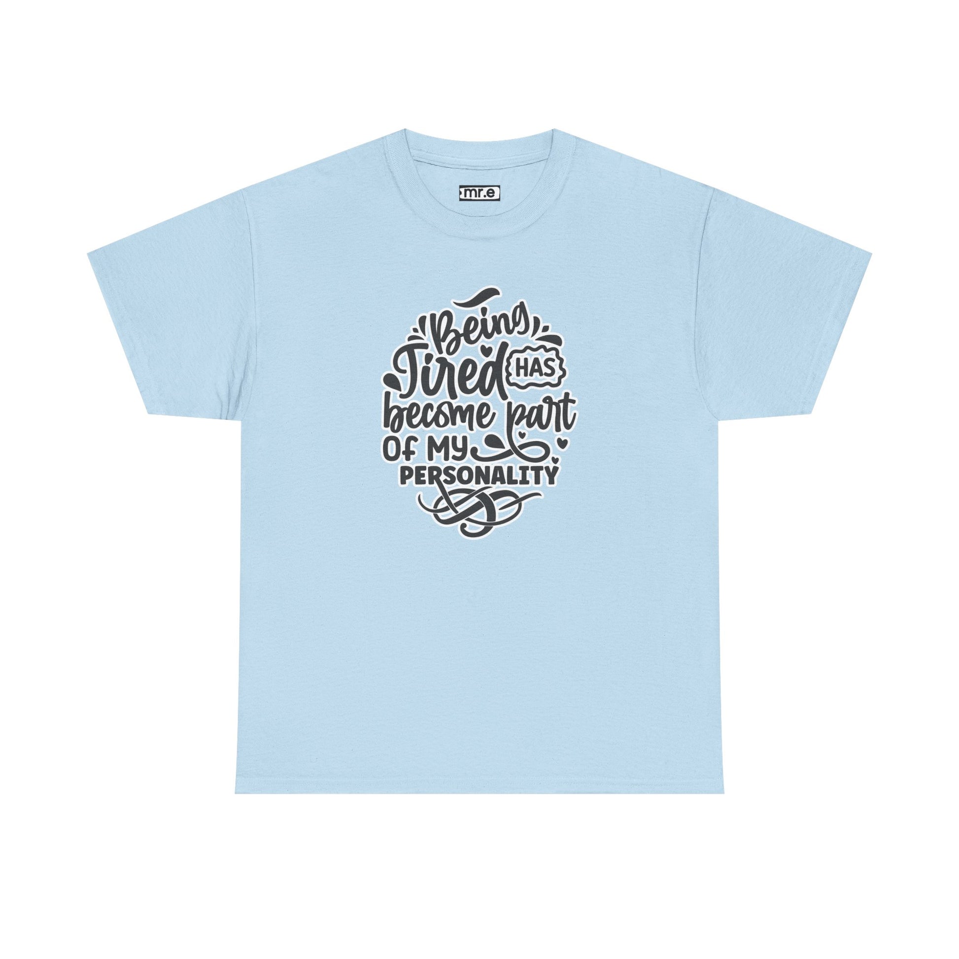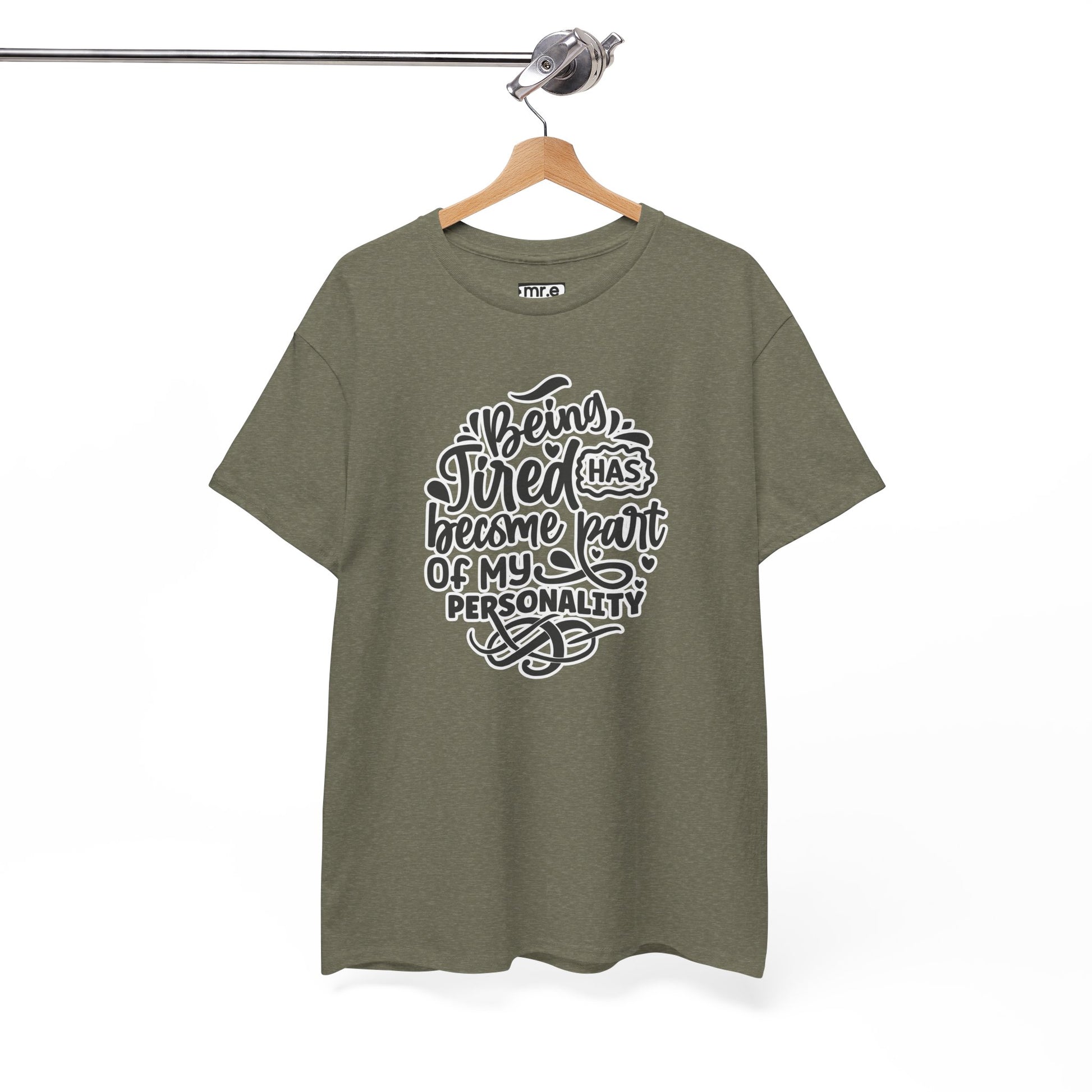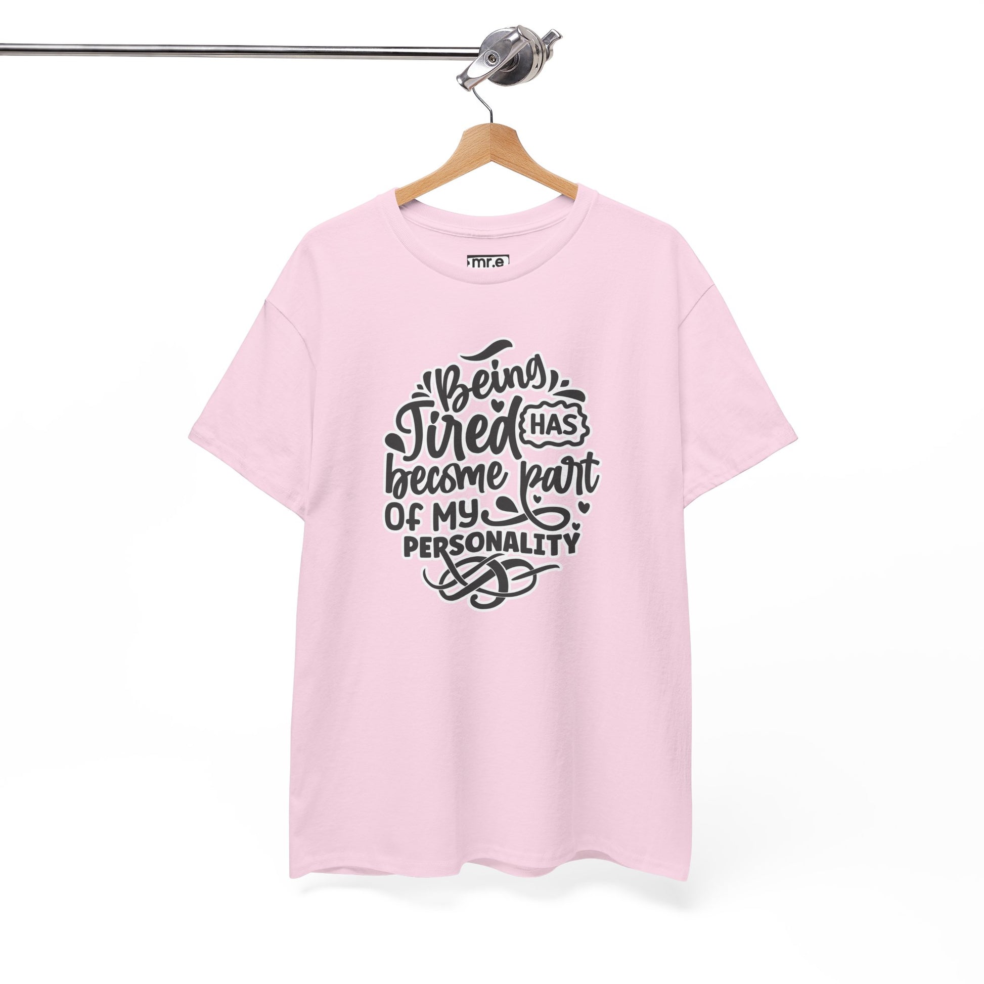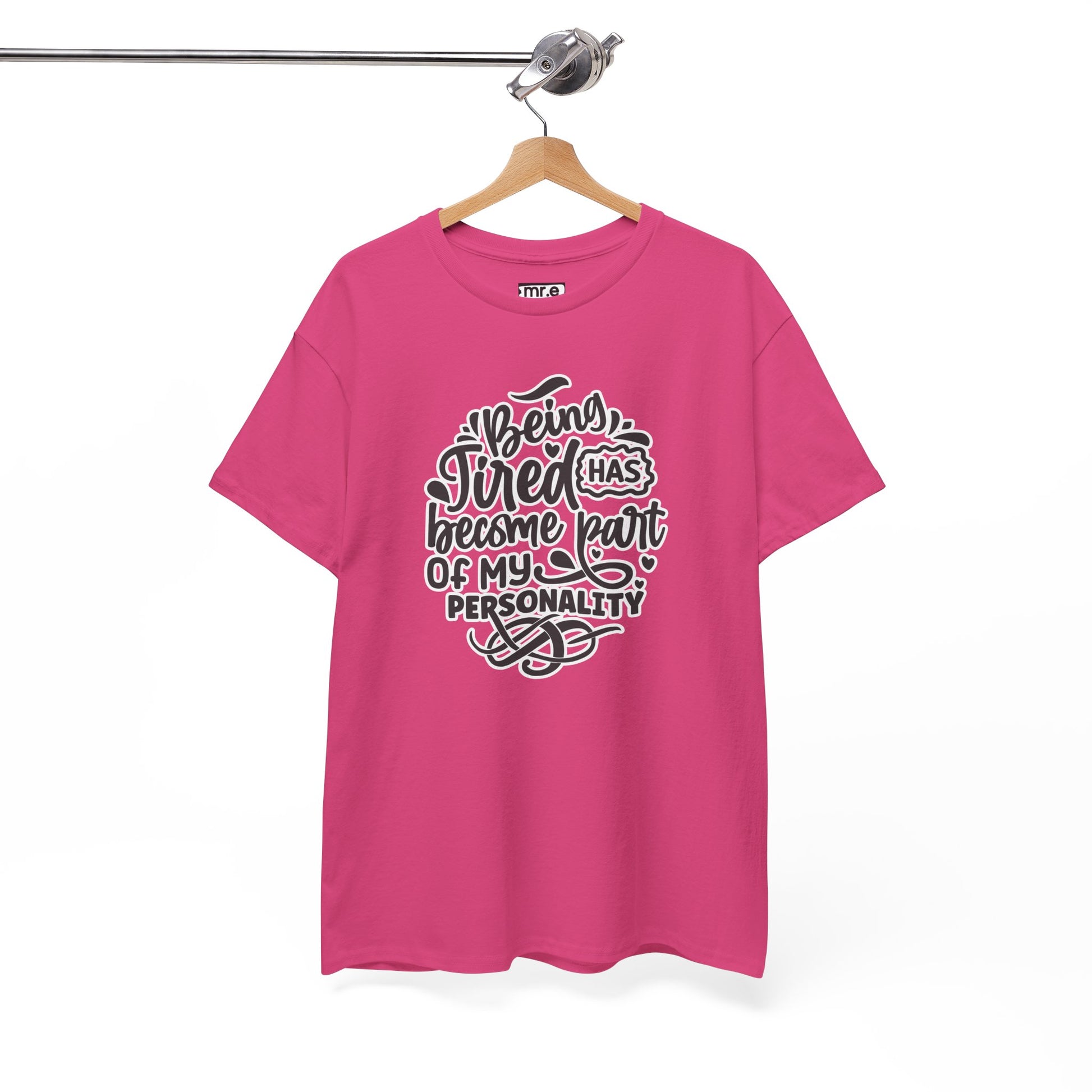 "Being Tired Has Become Part of My Personality" Funny & Relatable Oversized Graphic Tee – Quirky Self-Care Humor Shirt
