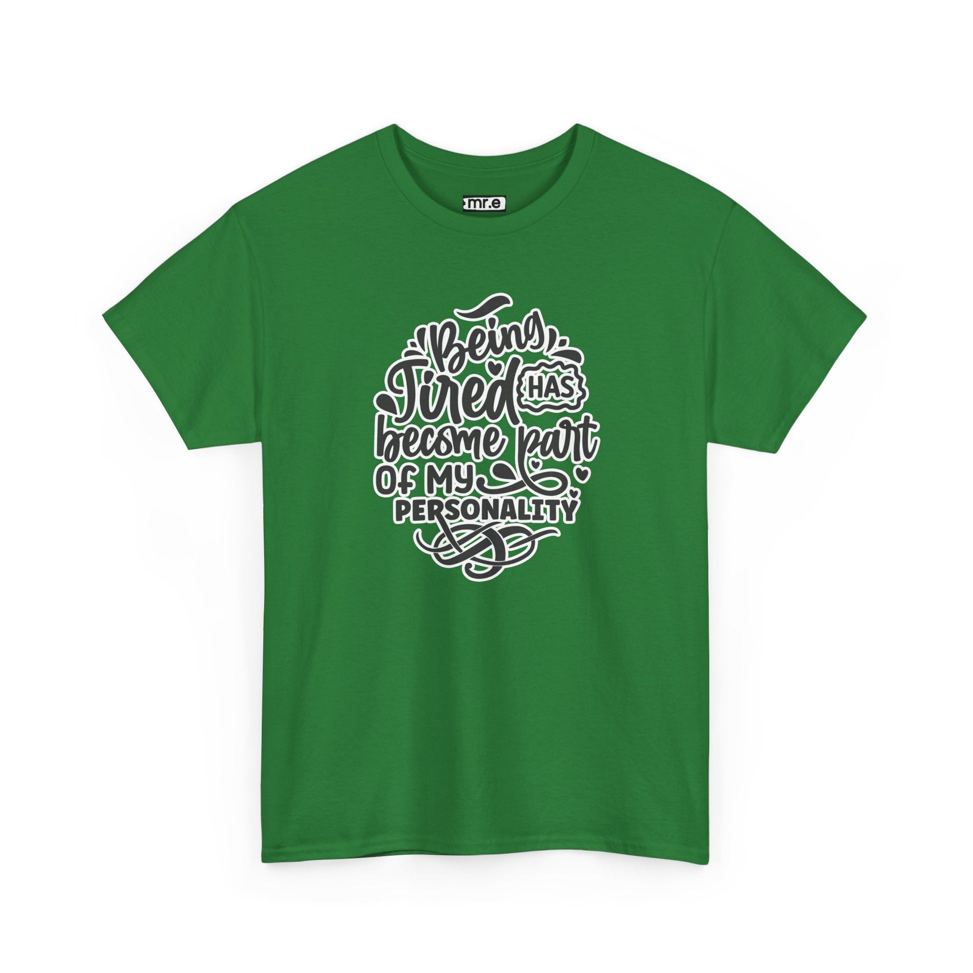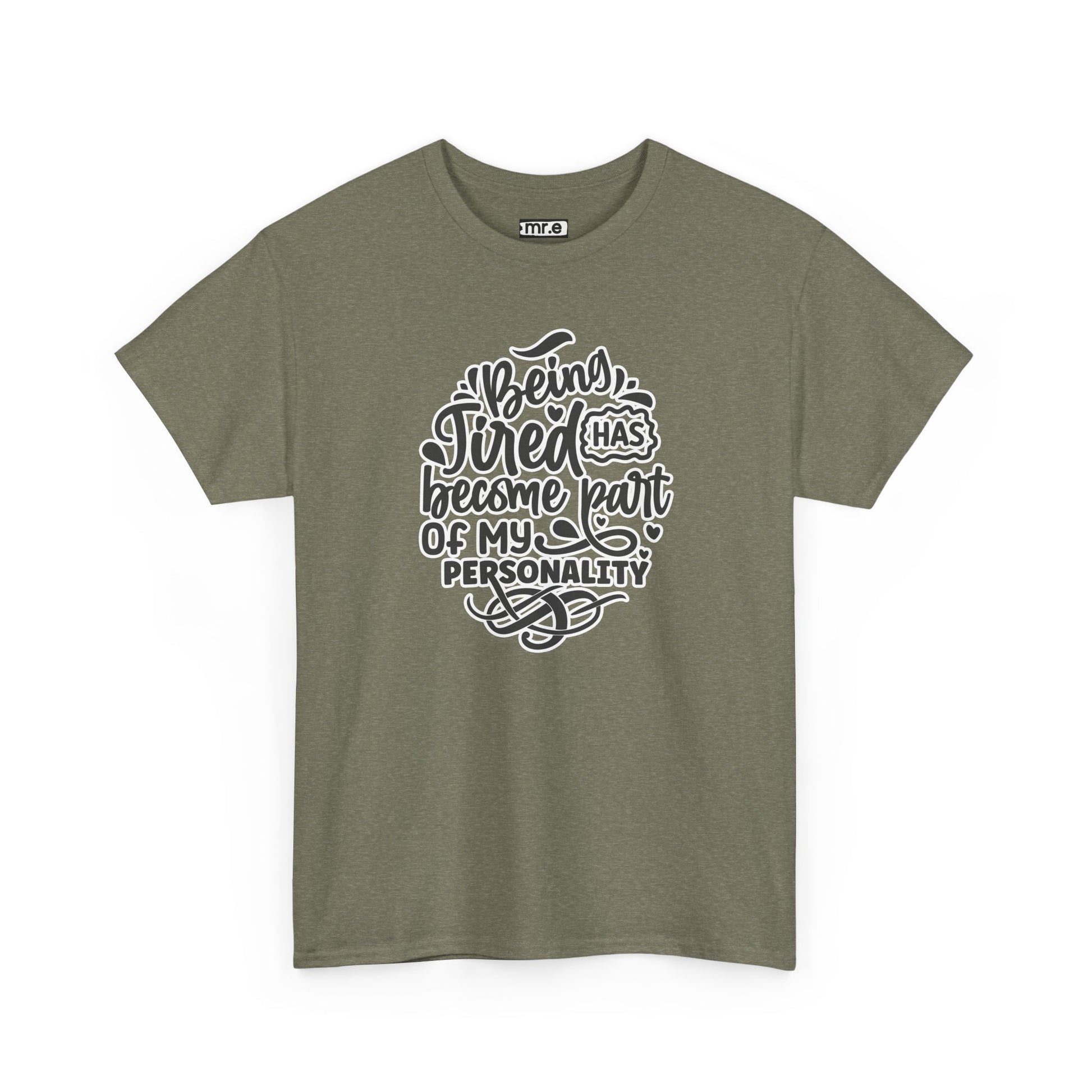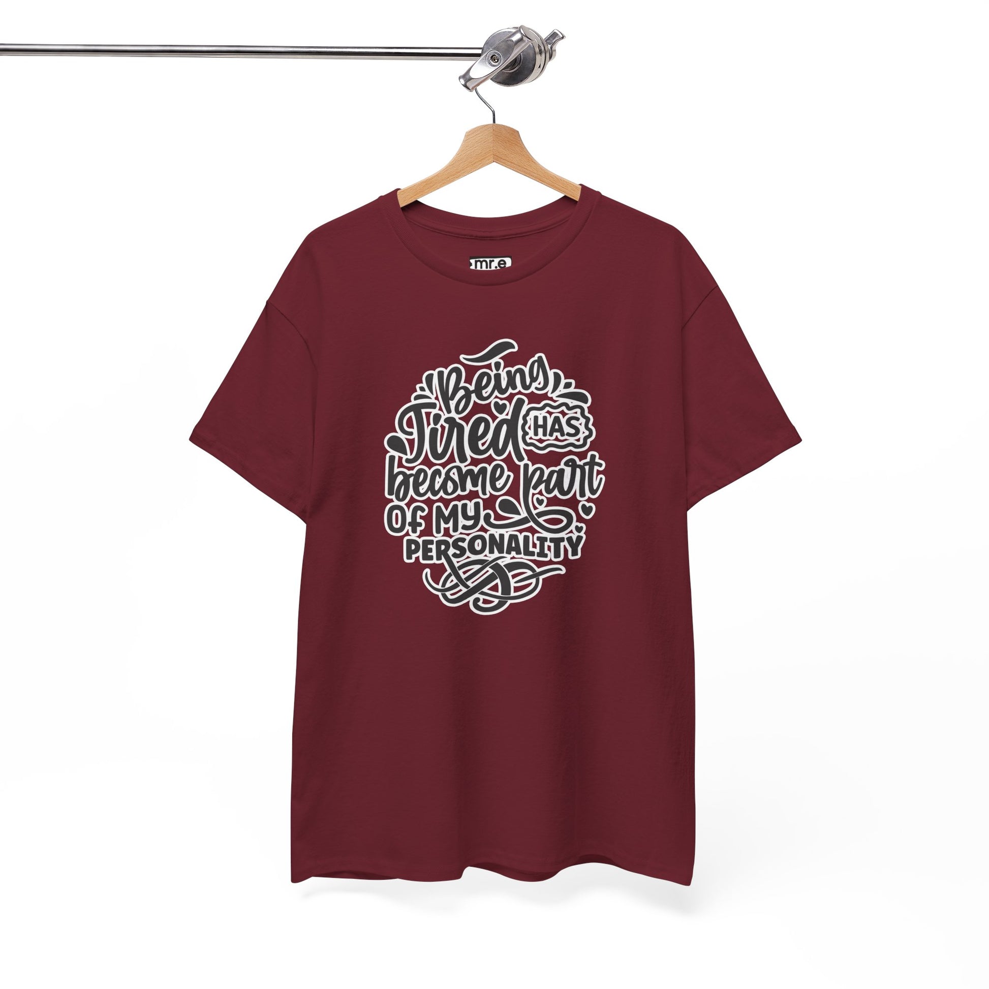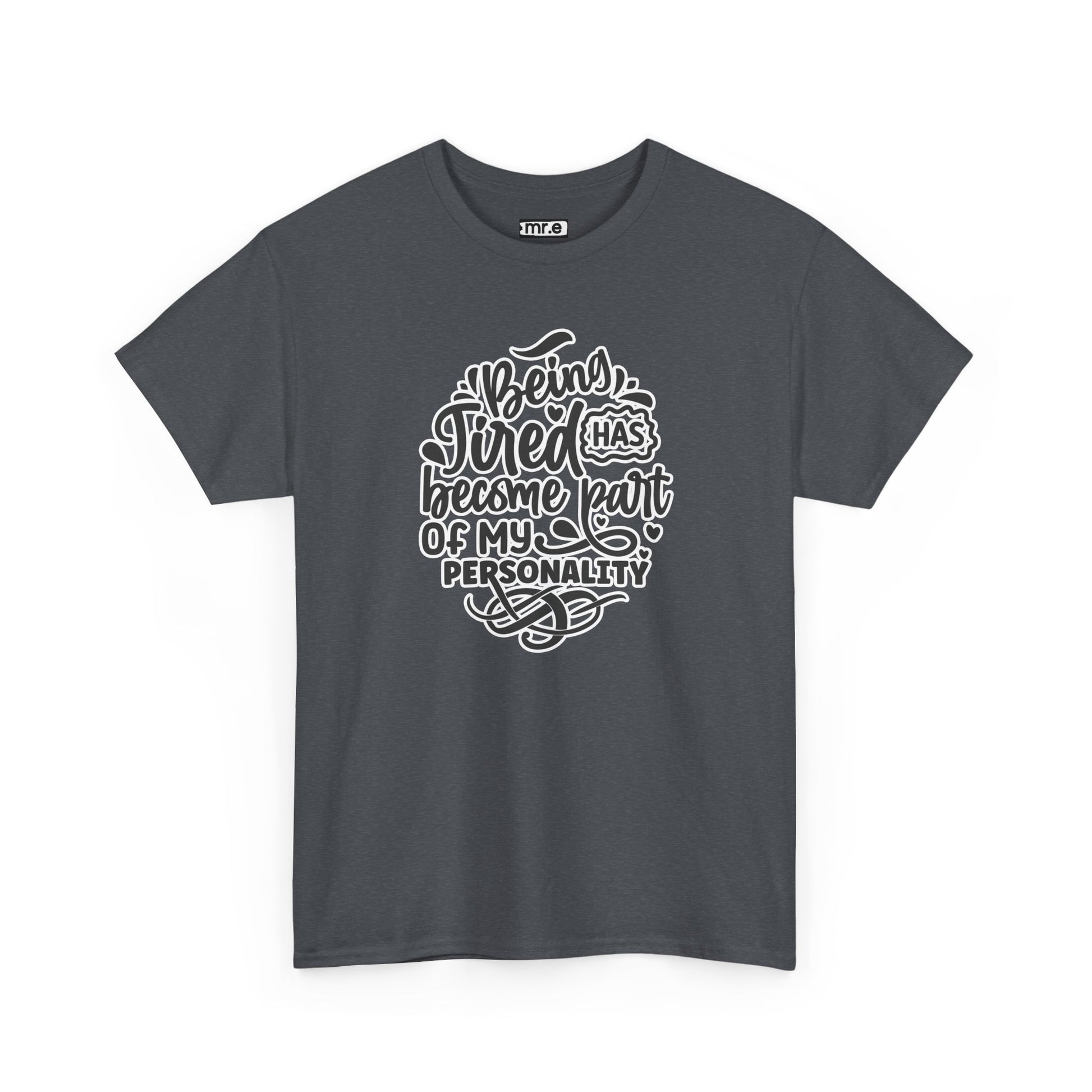 "Being Tired Has Become Part of My Personality" Funny & Relatable Oversized Graphic Tee – Quirky Self-Care Humor Shirt