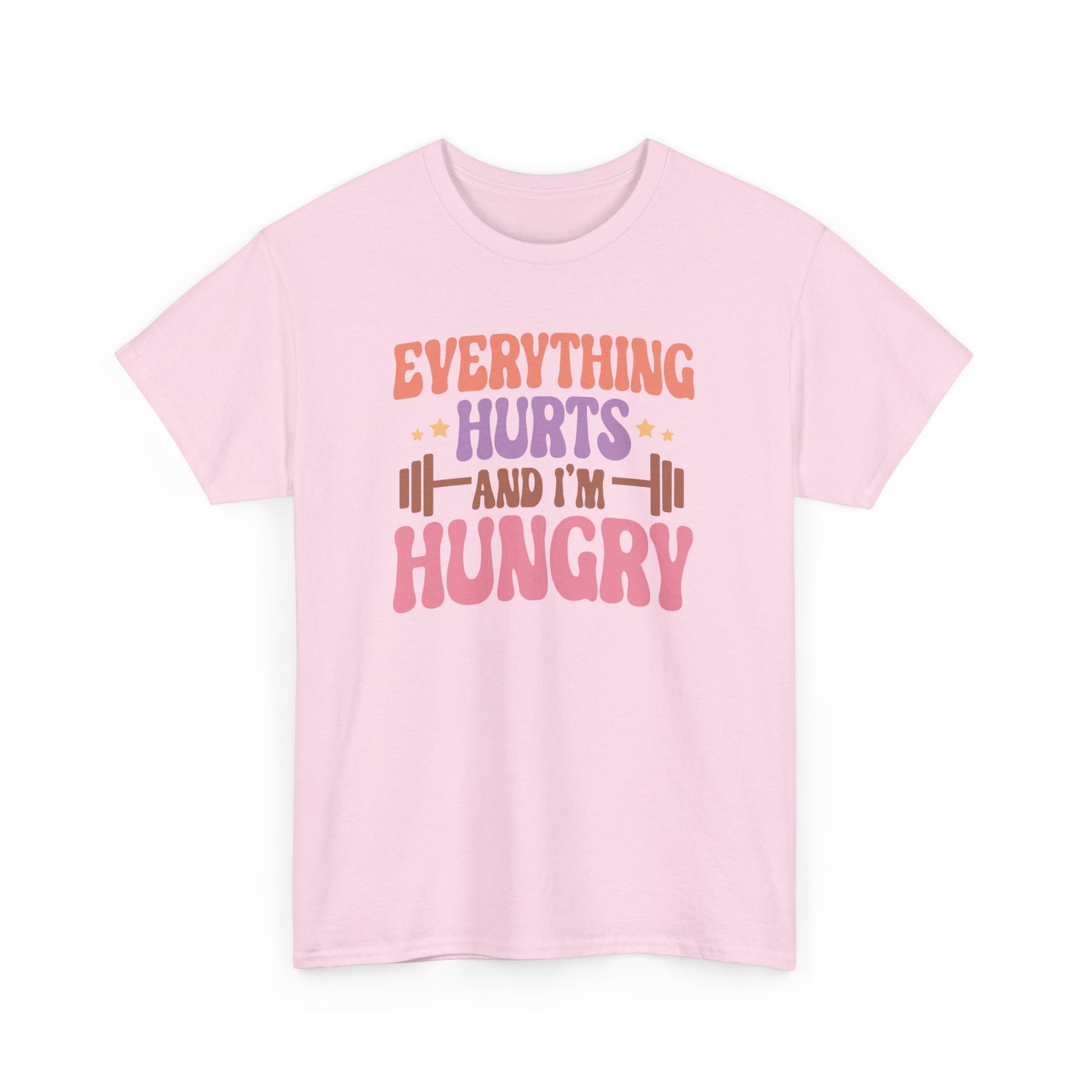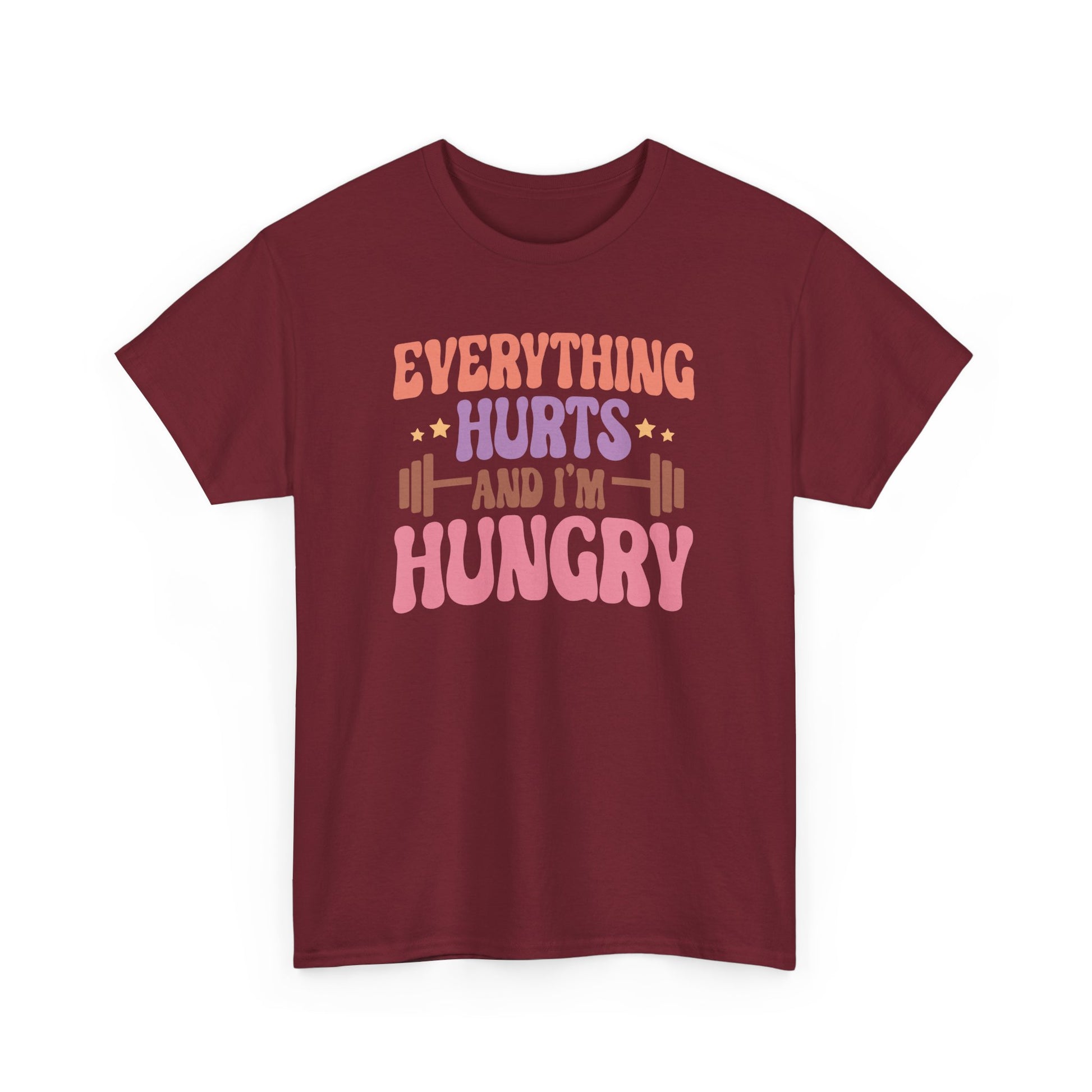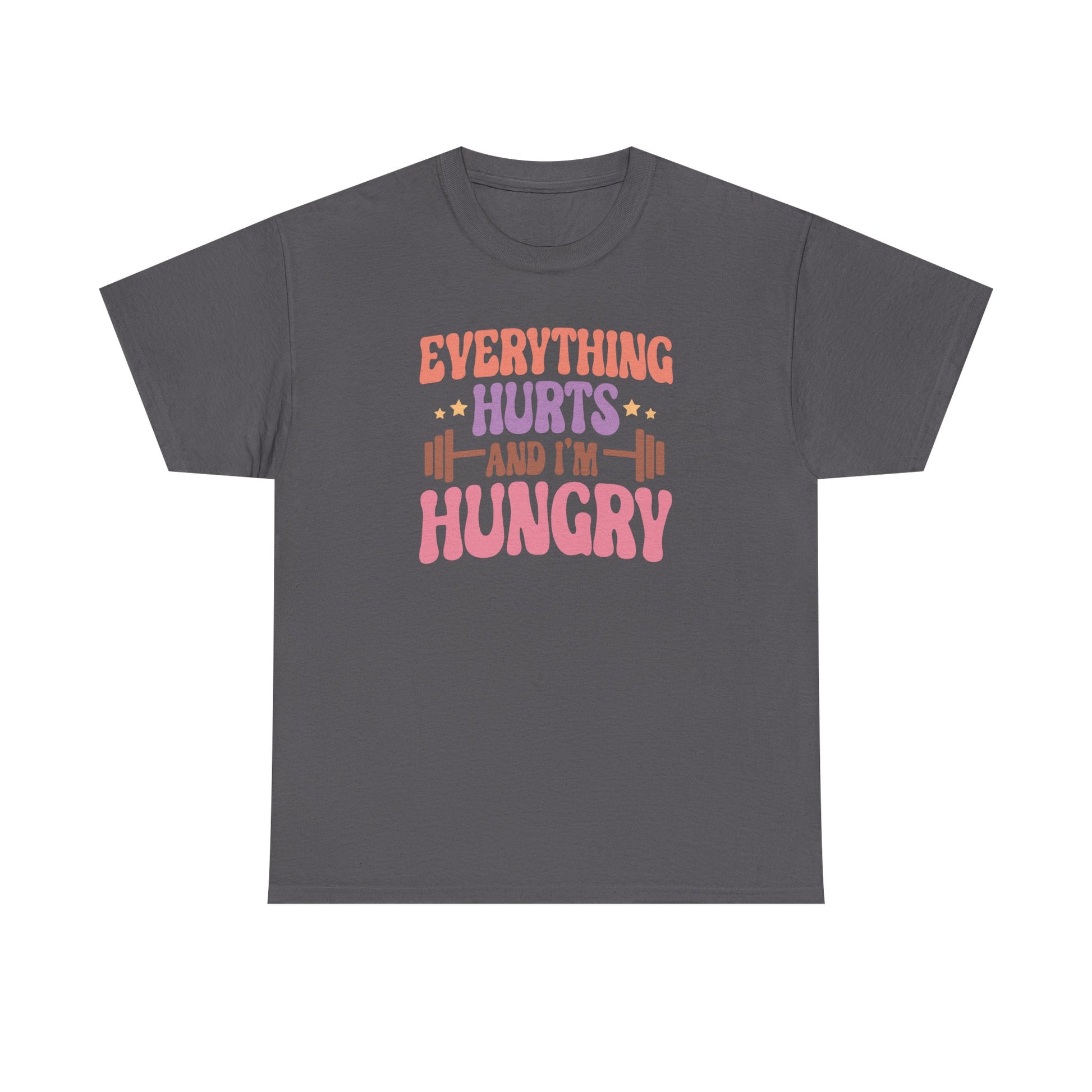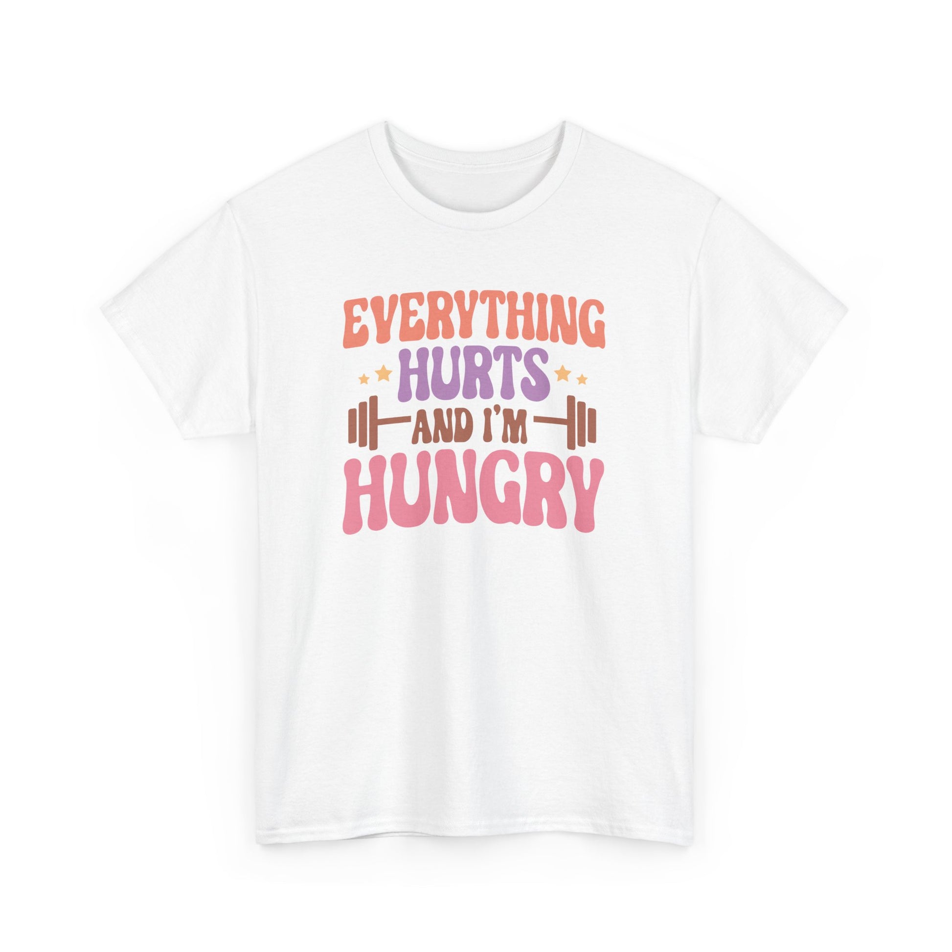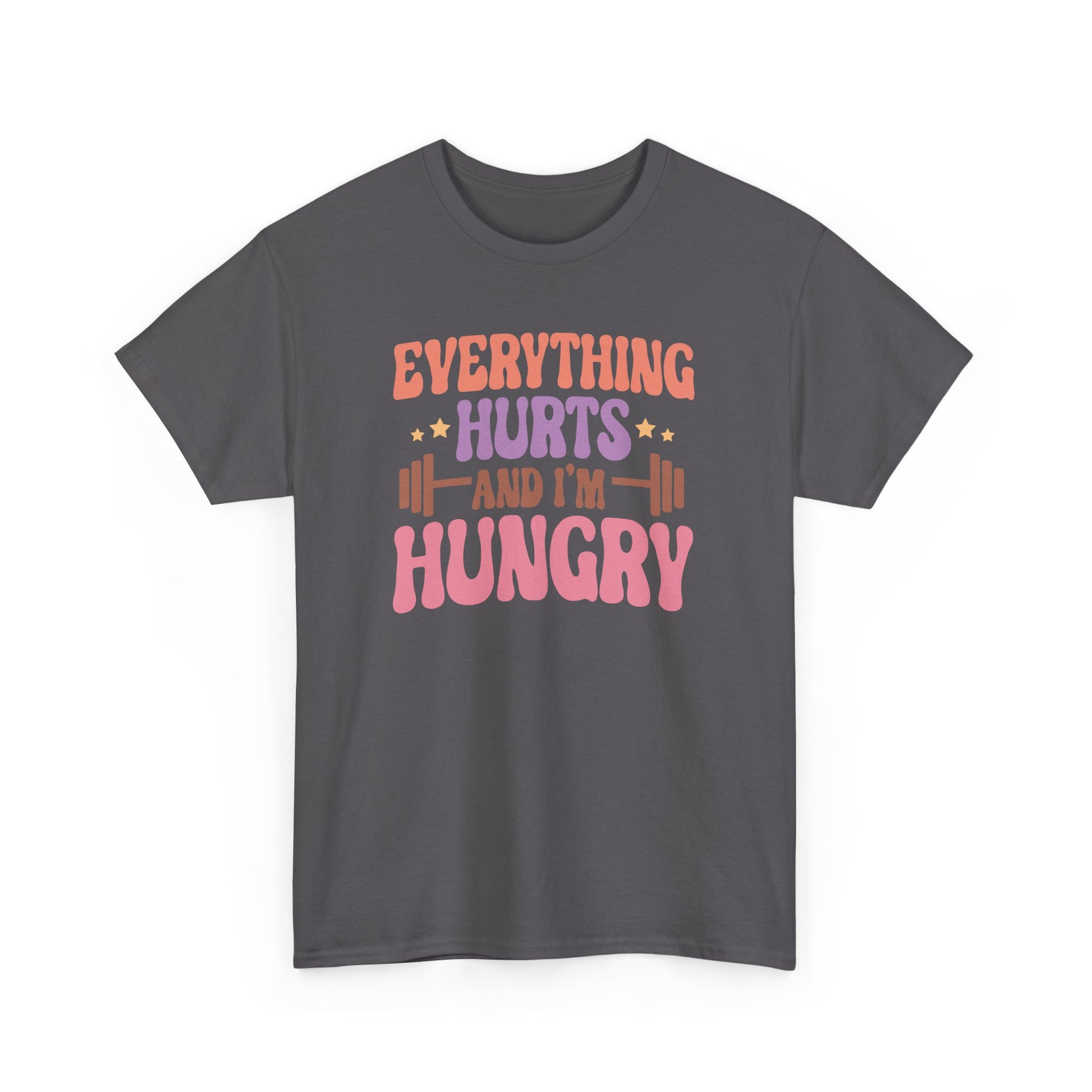 Funny Gym Workout T-Shirt – “Everything Hurts and I’m Hungry” – Fitness Humor Tee for Gym Lovers & Lifters