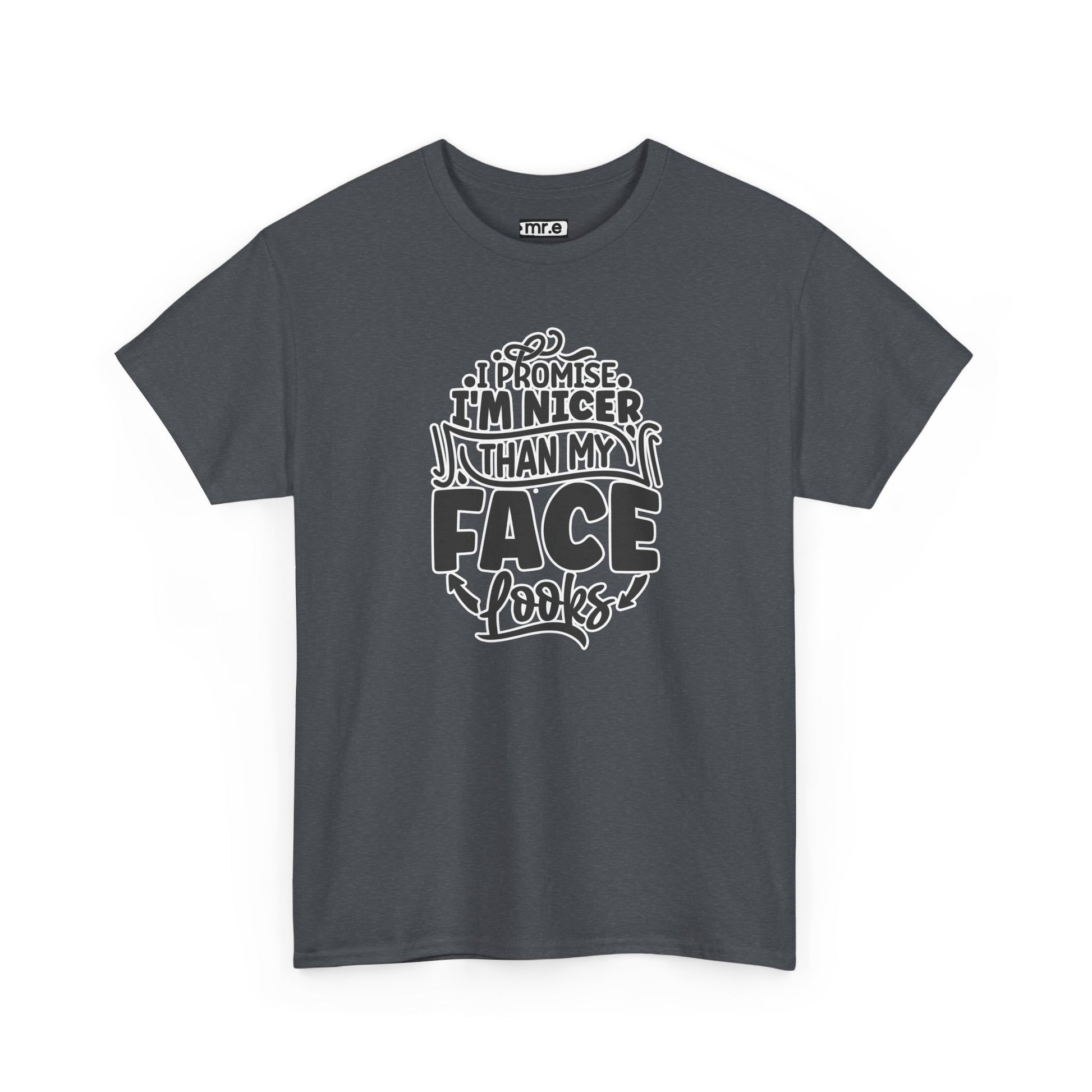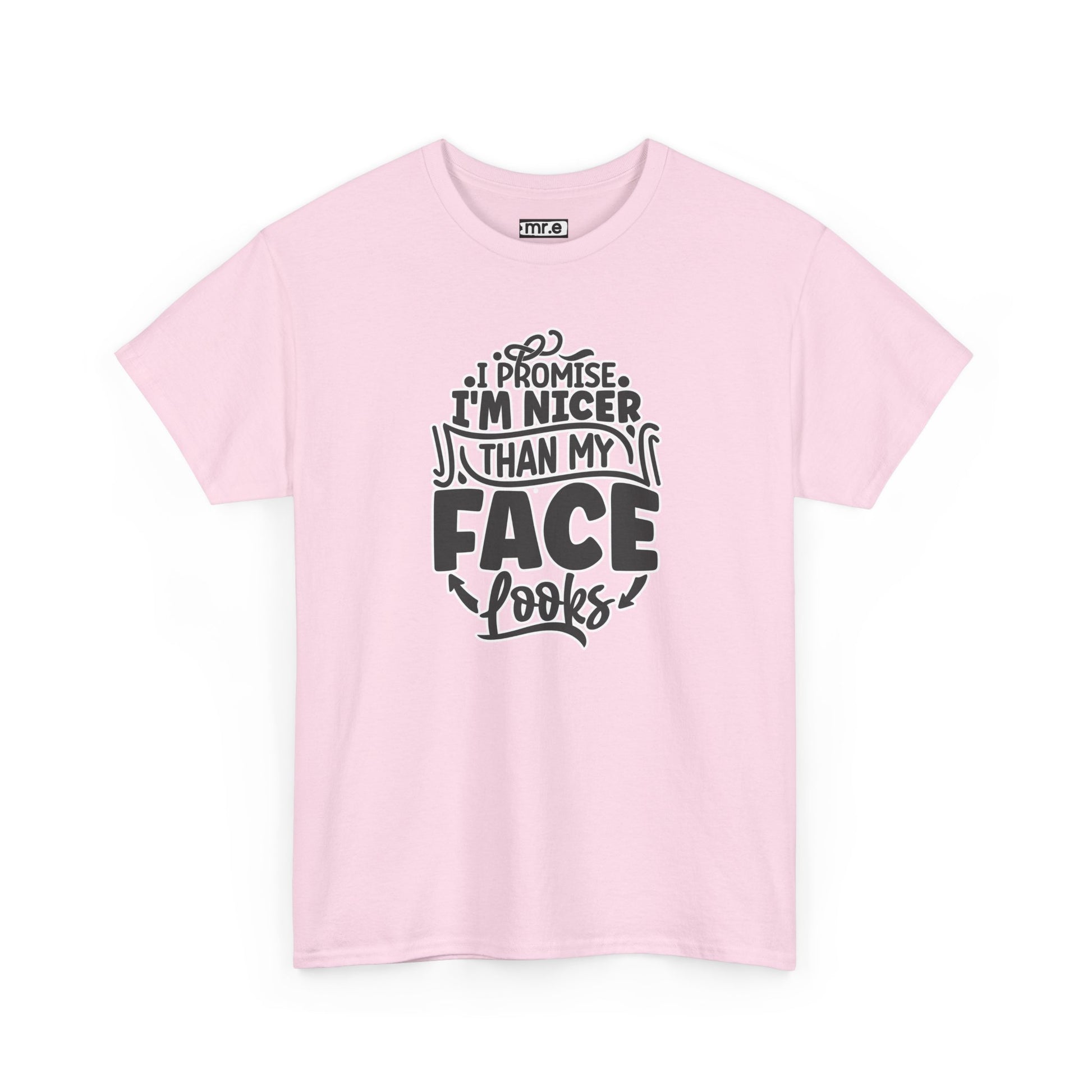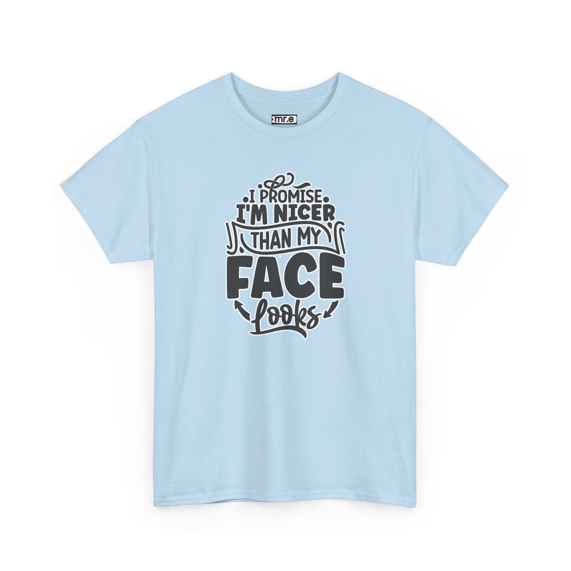 "I Promise I’m Nicer Than My Face Looks" Funny & Flirty Graphic Tee – Sarcastic Confidence Shirt for Introverts, Overthinkers & Chill Vibes