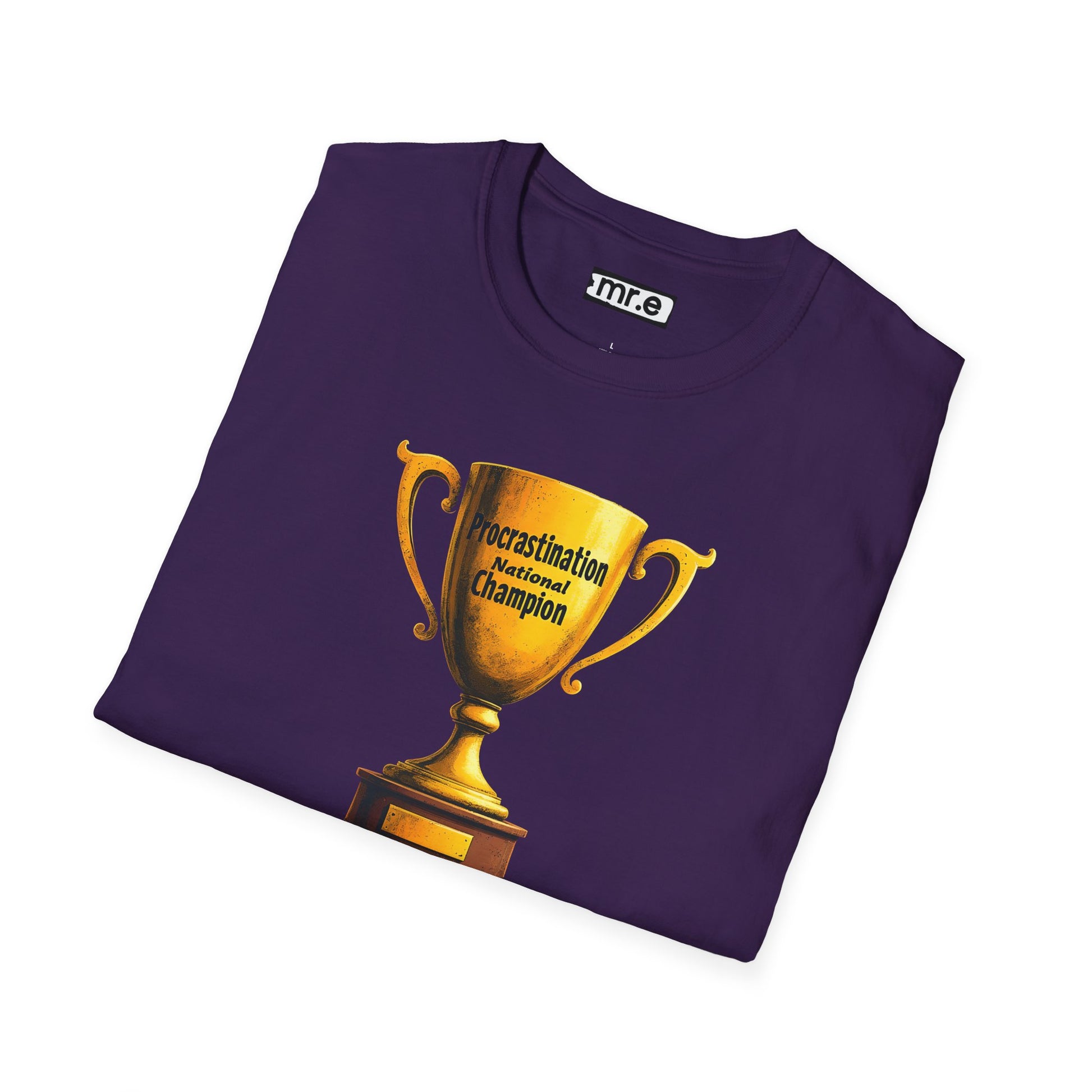 Funny Trophy T-Shirt – “Procrastination National Champion” Tee – Sarcastic Humor Gift for Lazy Legends