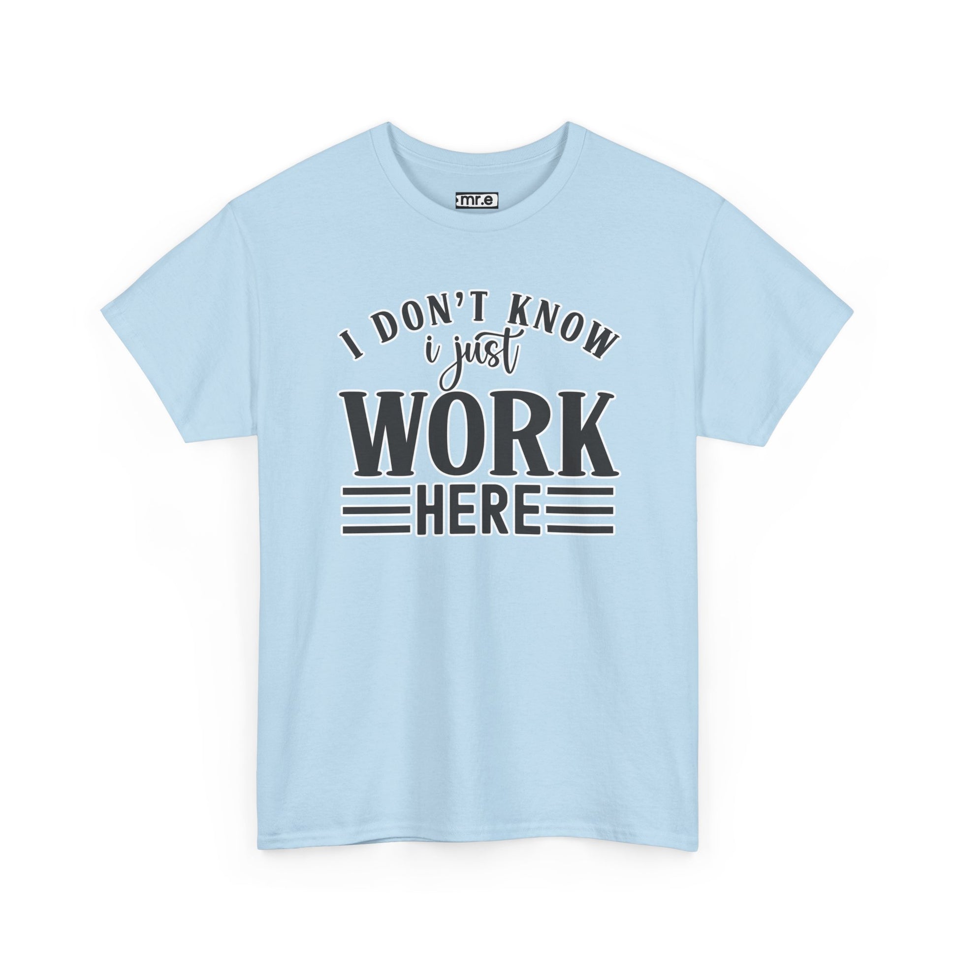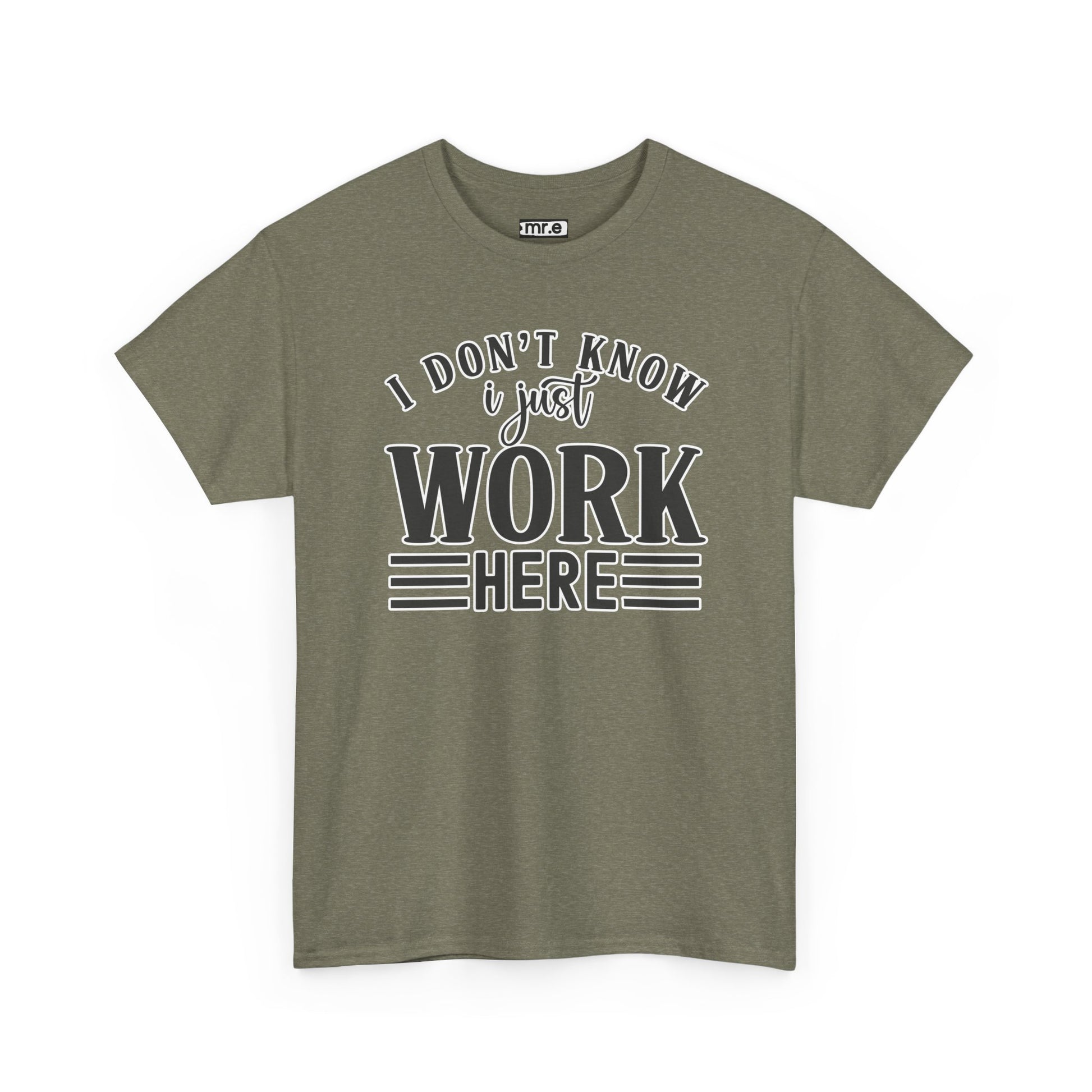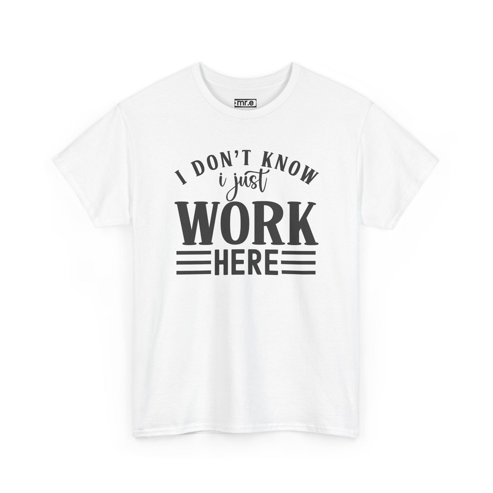 "I Don’t Know, I Just Work Here" Funny Office Shirt – Sarcastic & Relatable Work Humor T-Shirt for Overwhelmed Employees