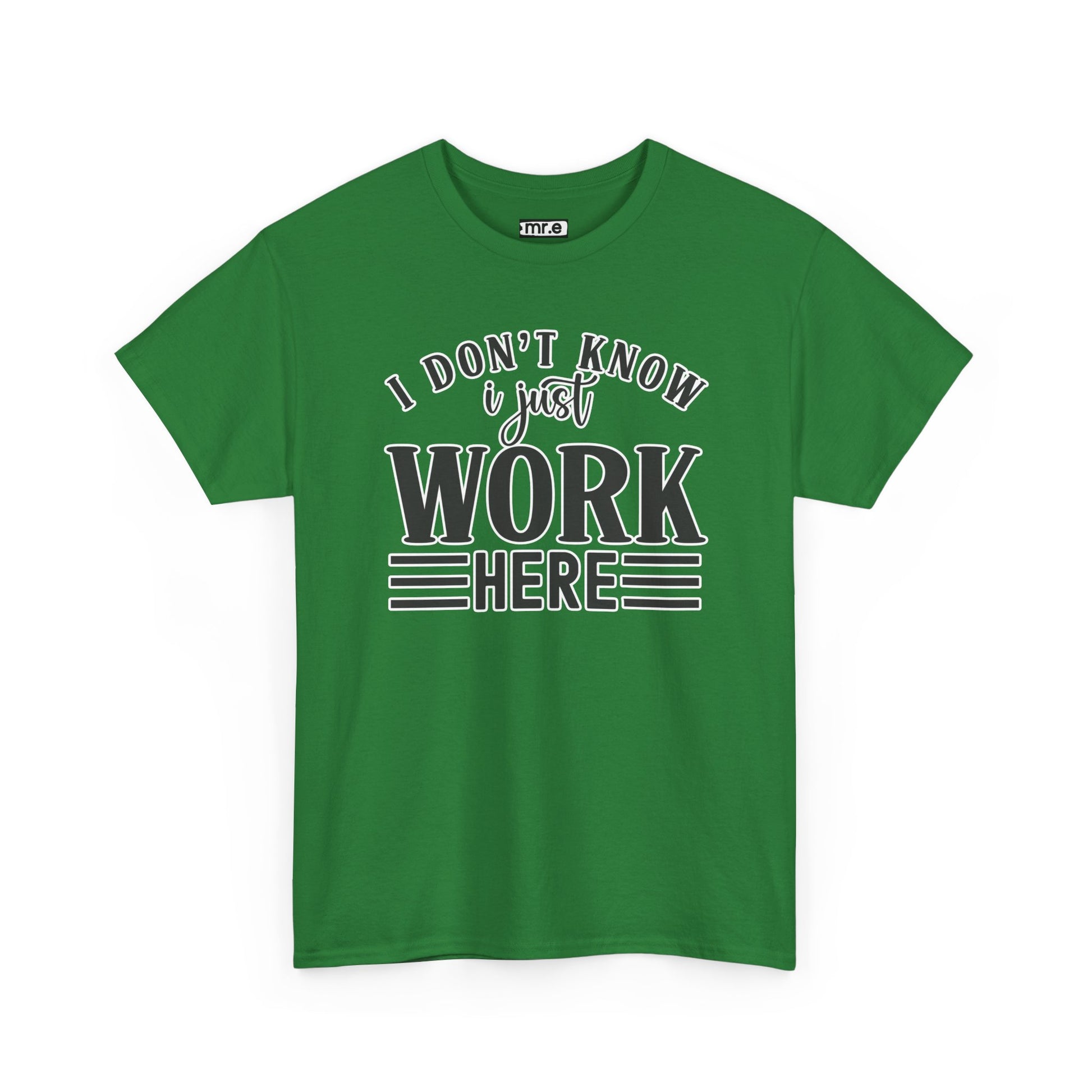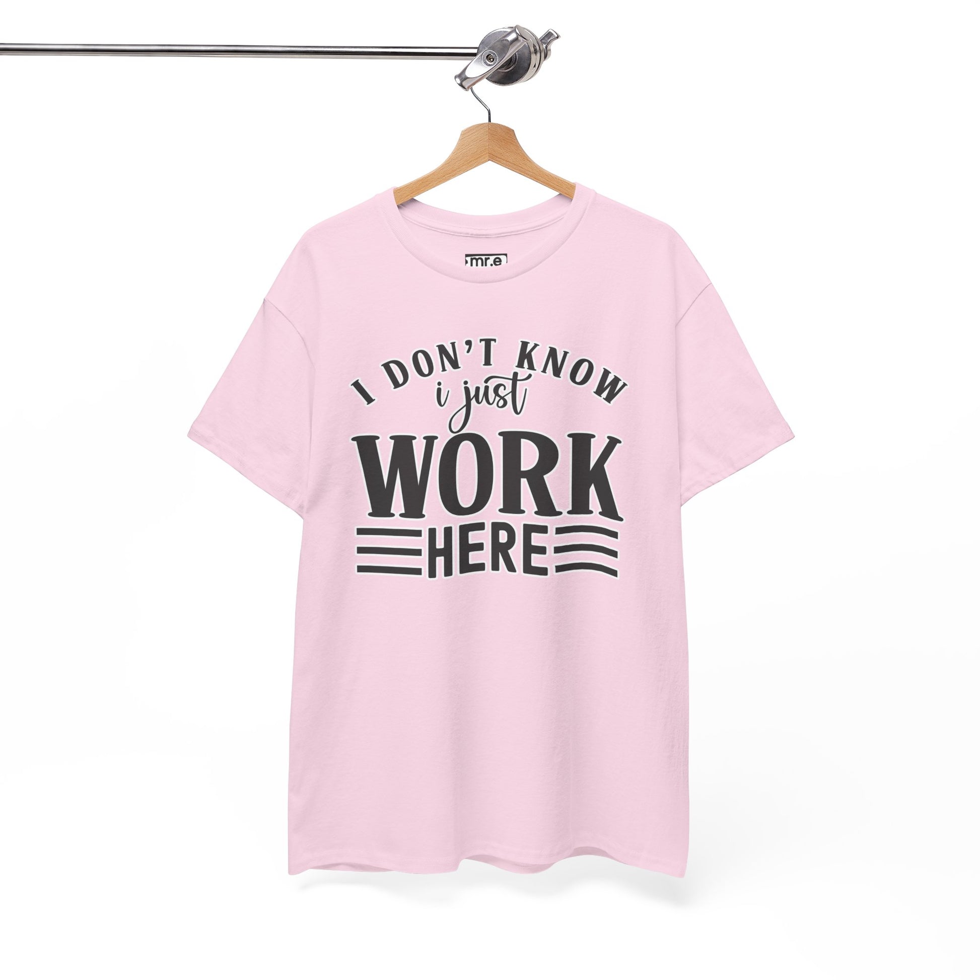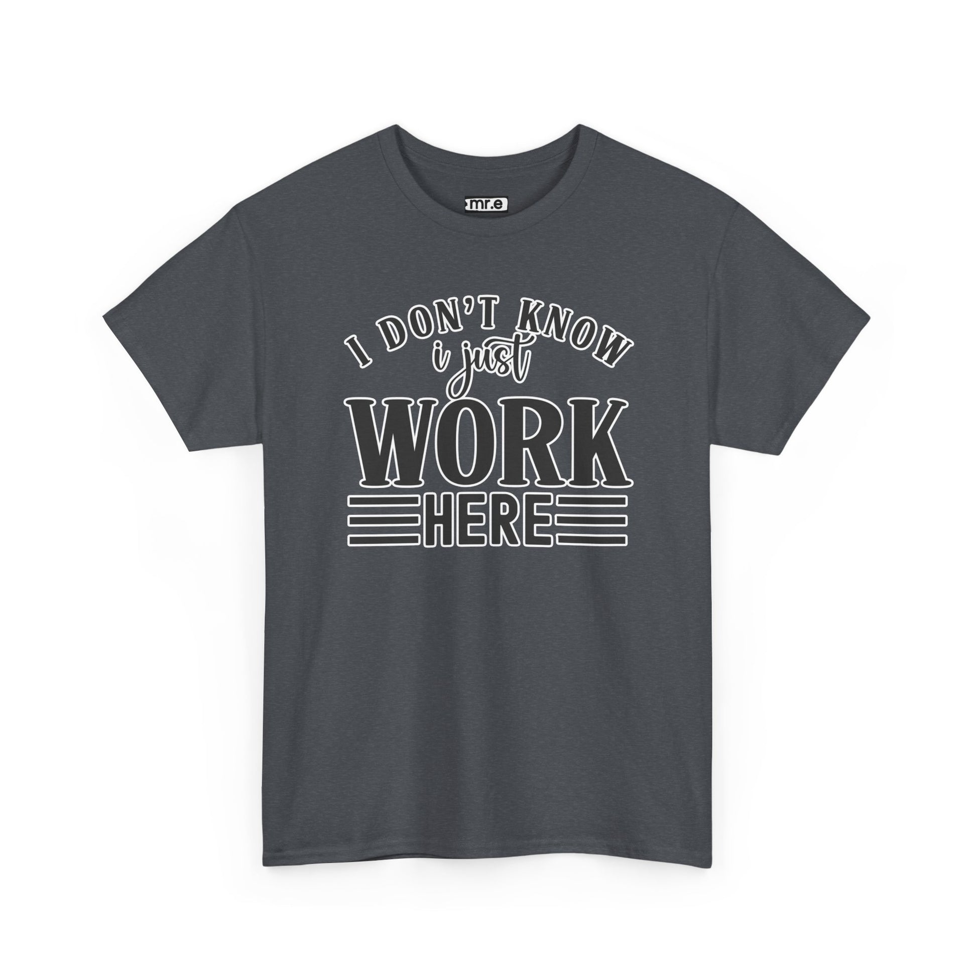 "I Don’t Know, I Just Work Here" Funny Office Shirt – Sarcastic & Relatable Work Humor T-Shirt for Overwhelmed Employees