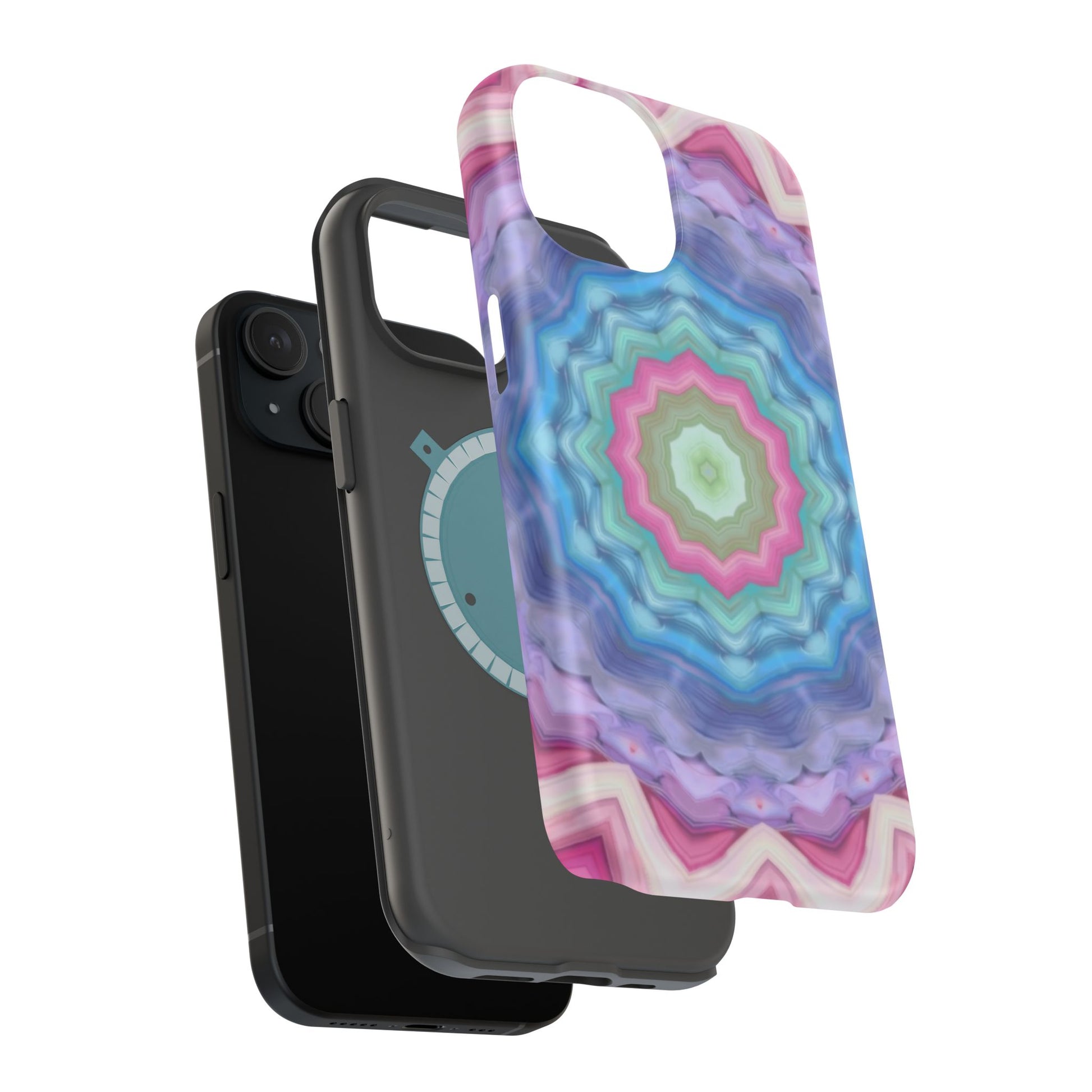 This striking case showcases a symmetrical kaleidoscope with rich colors and captivating details. Prepare to lose yourself in its hypnotic beauty every time you pull out your phone!