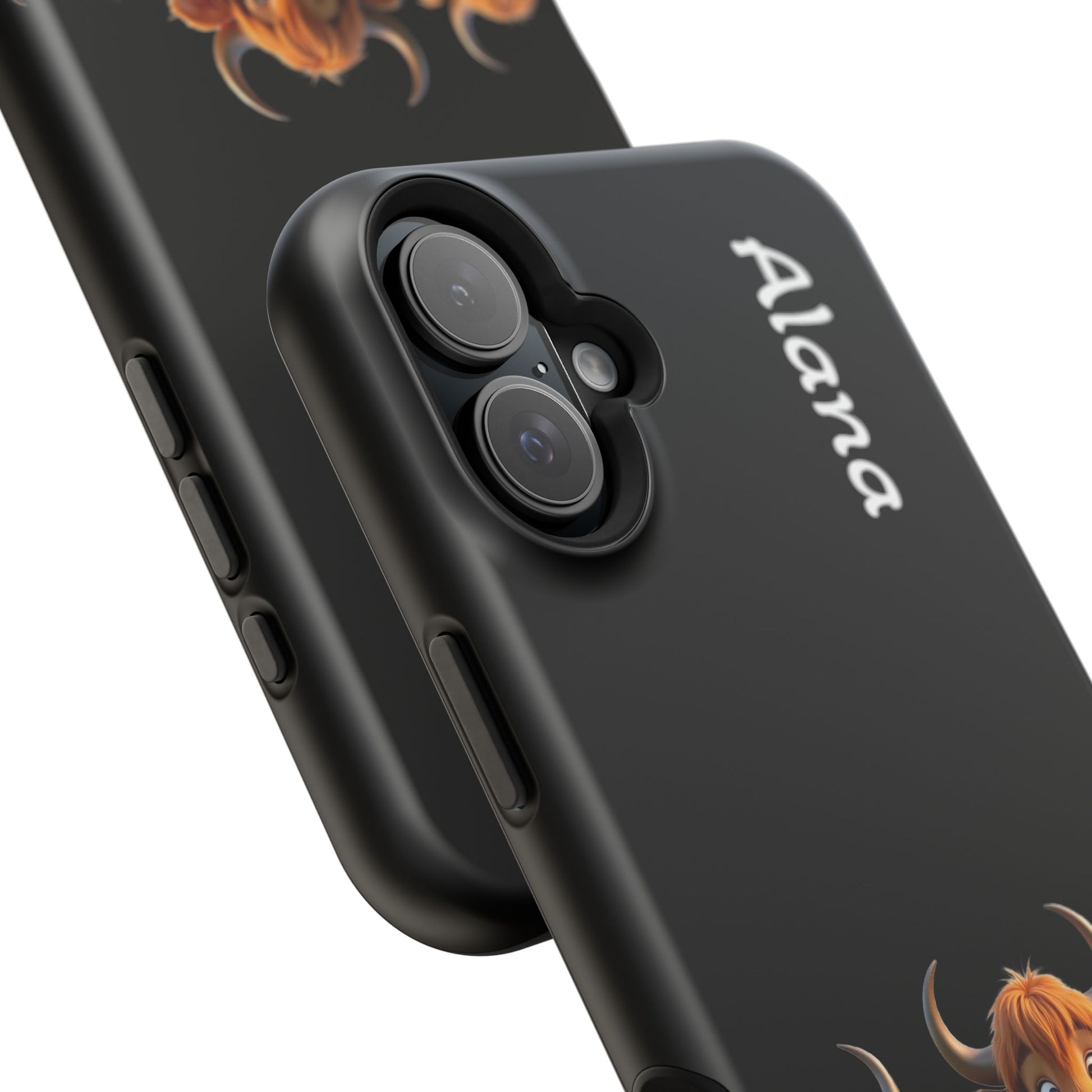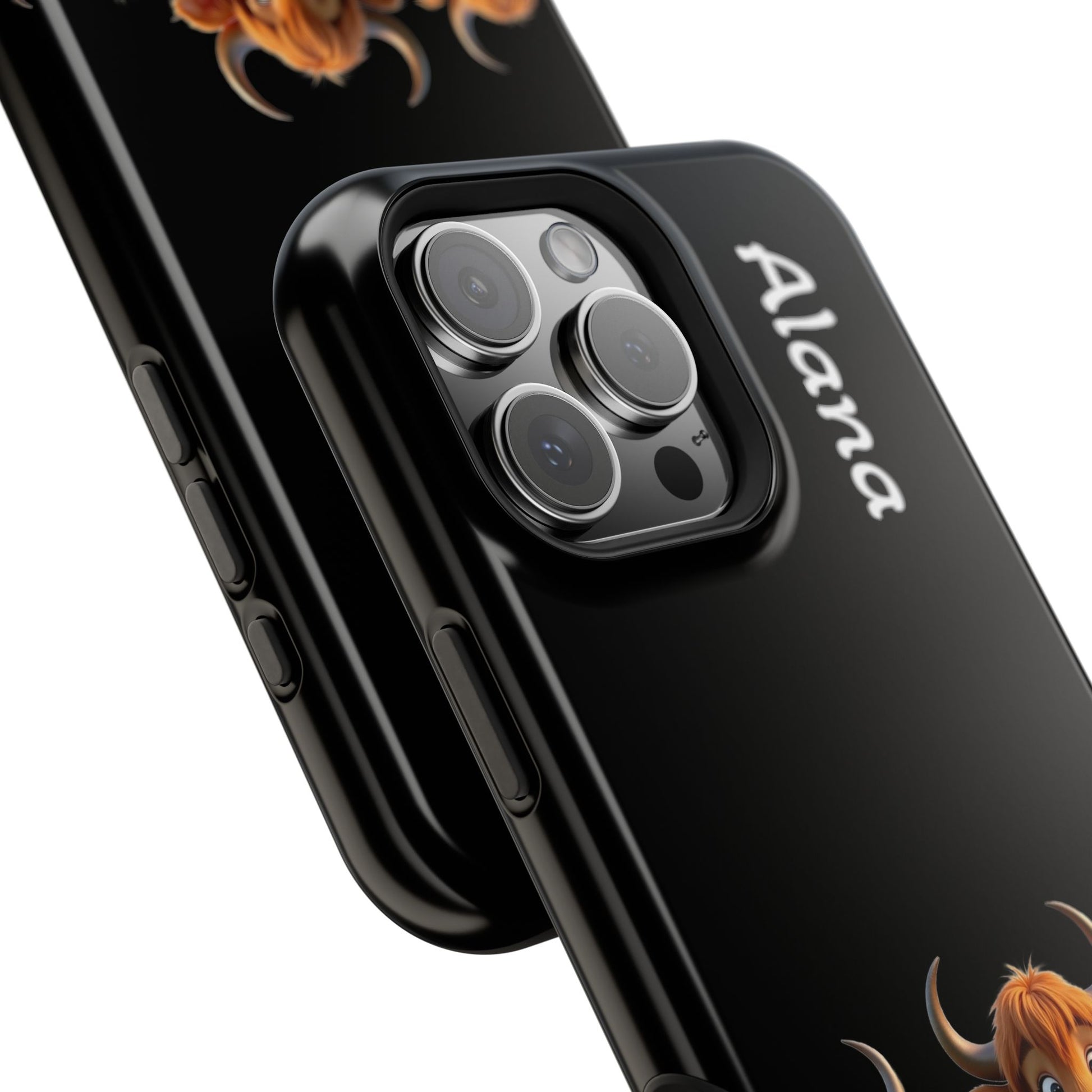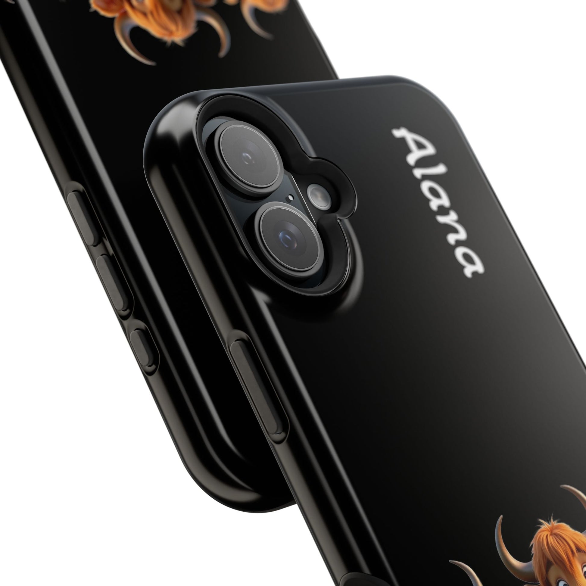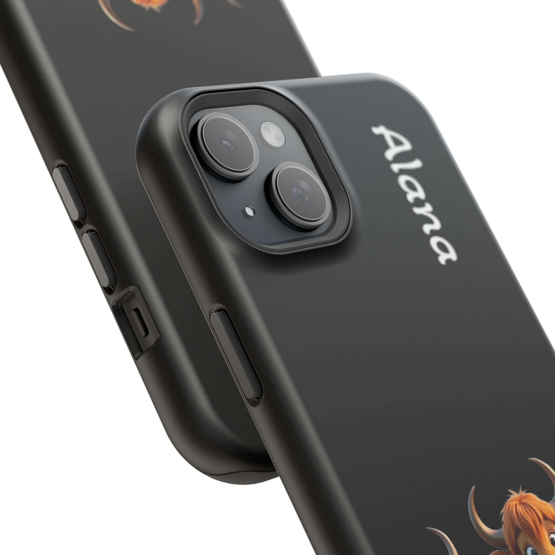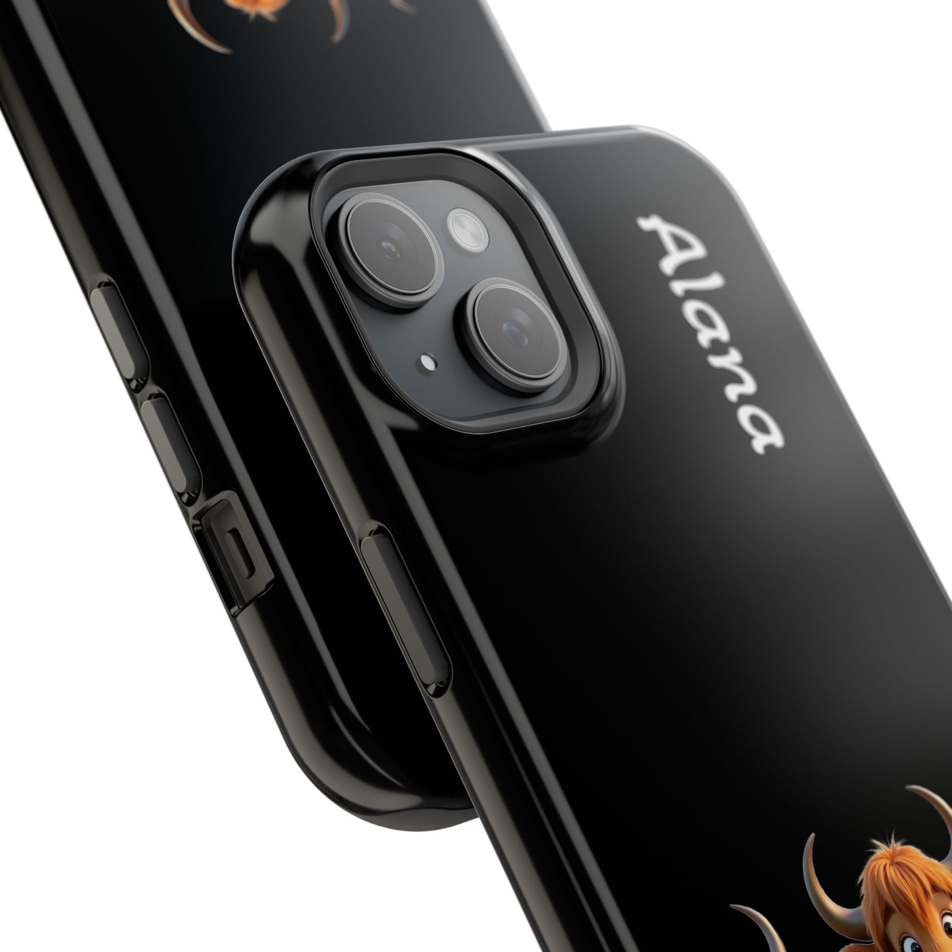 Personalized Highland Cow Phone Case - Custom Name Farm Animal Gift | Cute Black iPhone Cases for Women & Girls