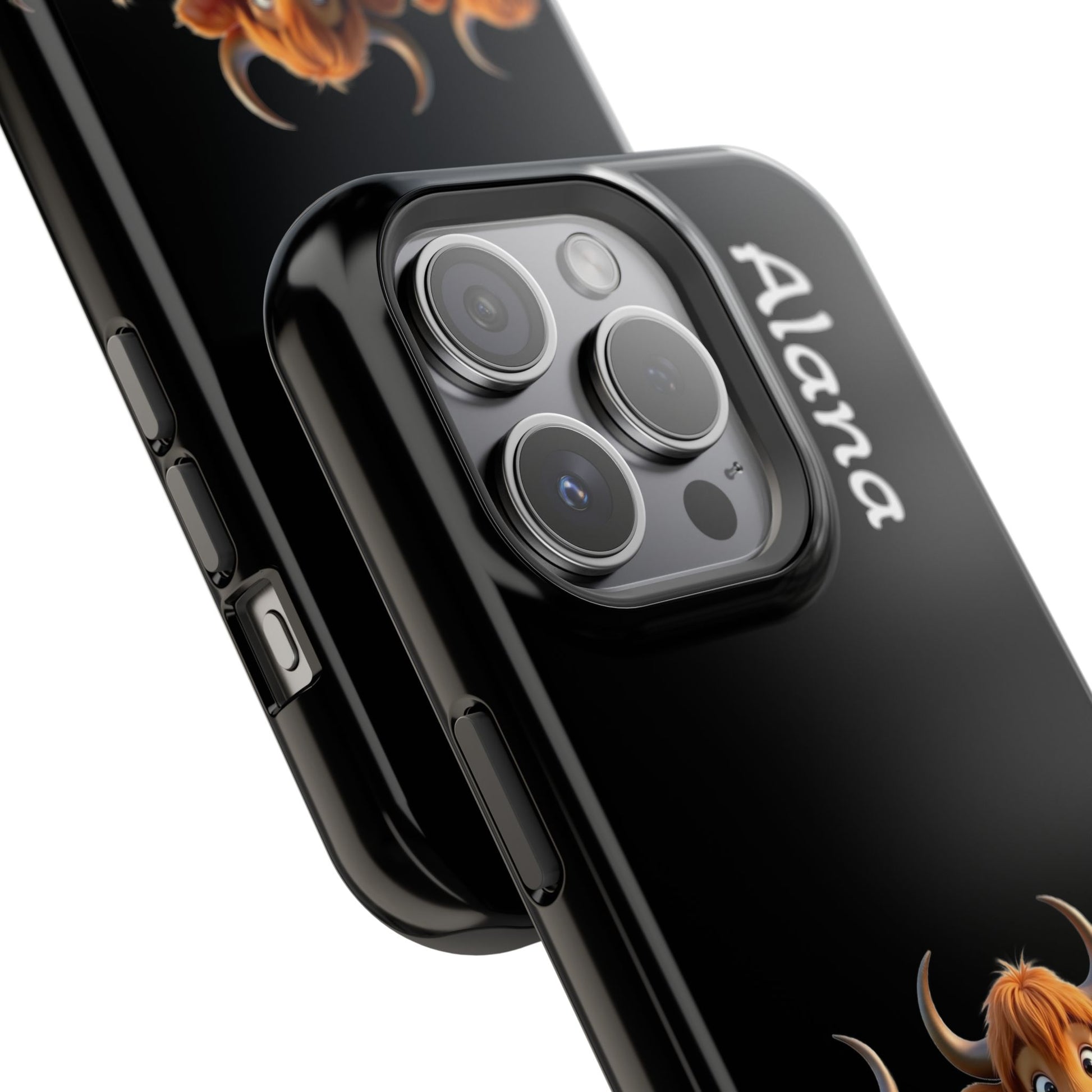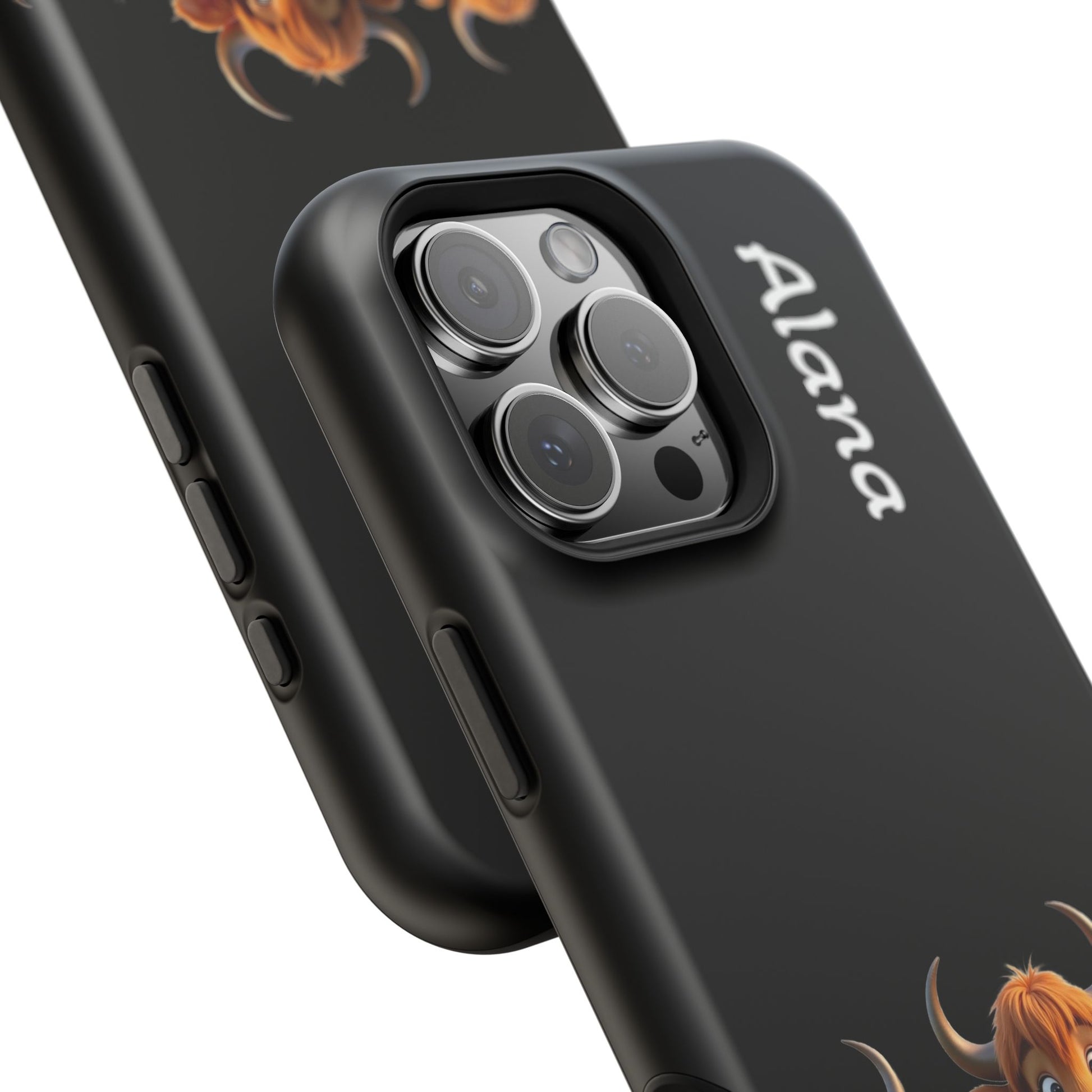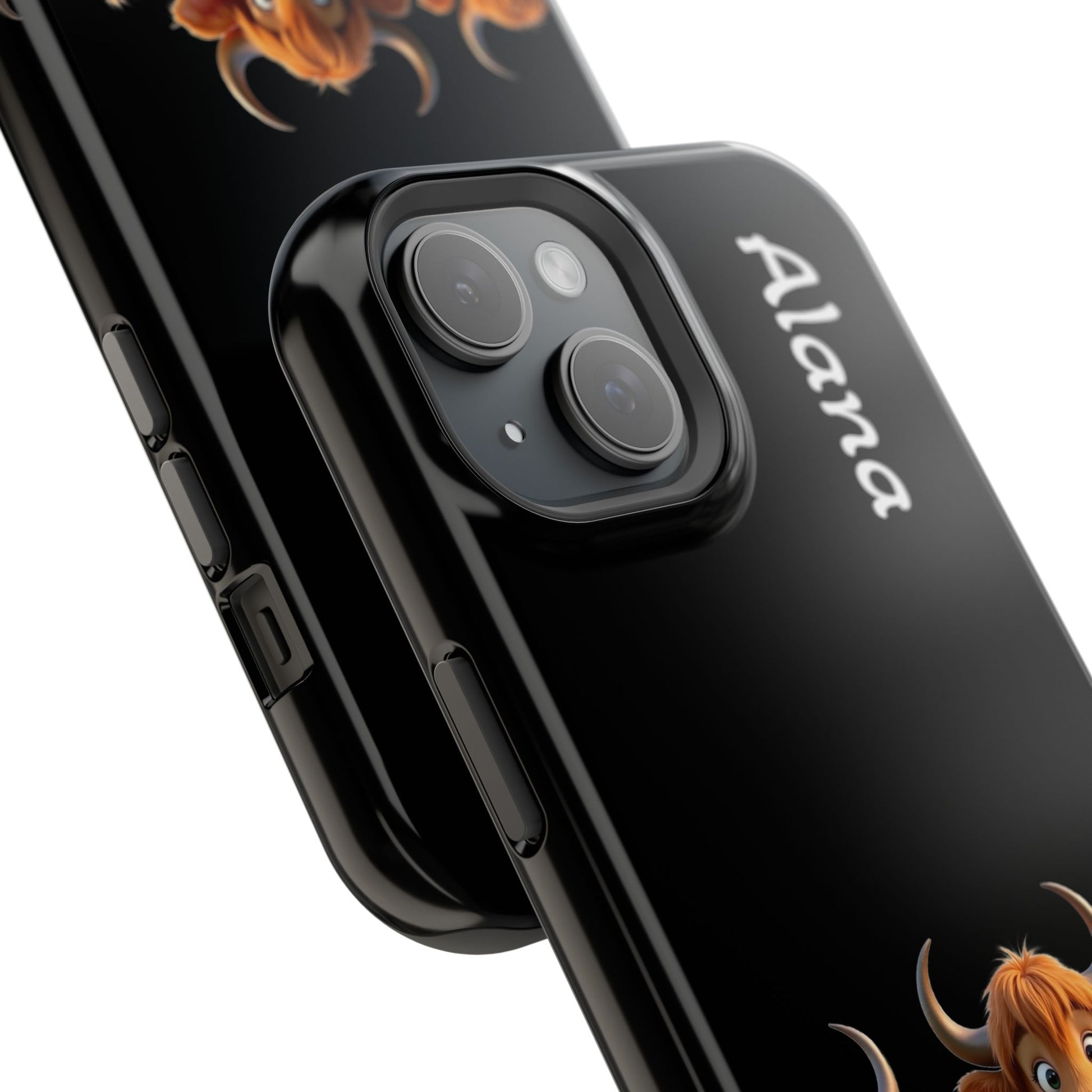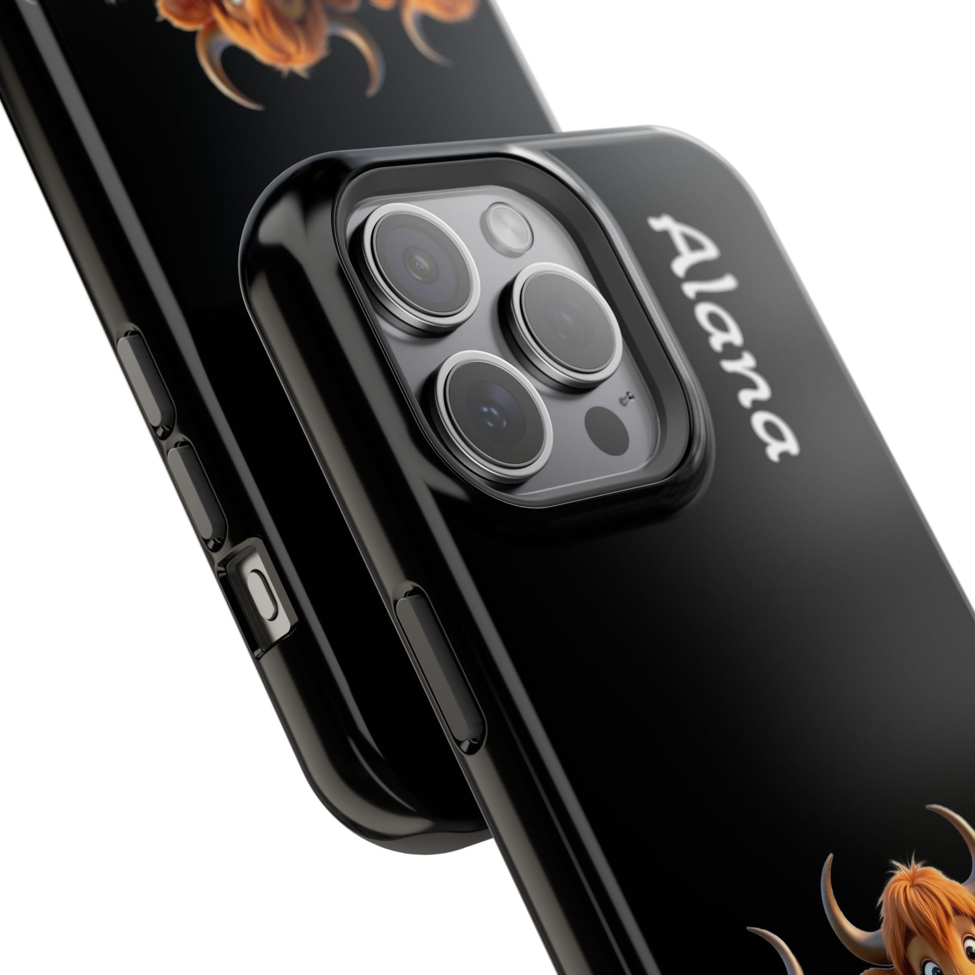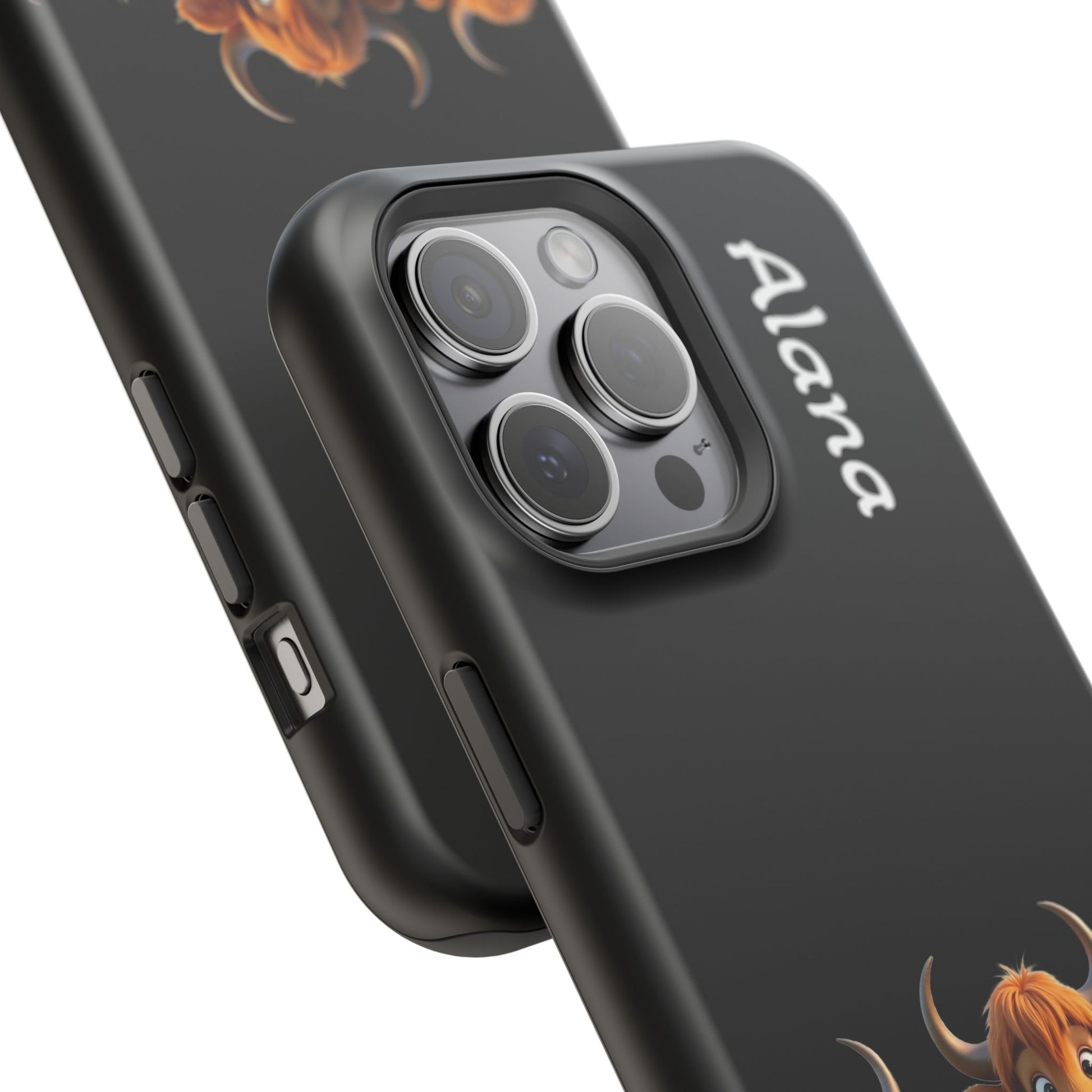 Personalized Highland Cow Phone Case - Custom Name Farm Animal Gift | Cute Black iPhone Cases for Women & Girls