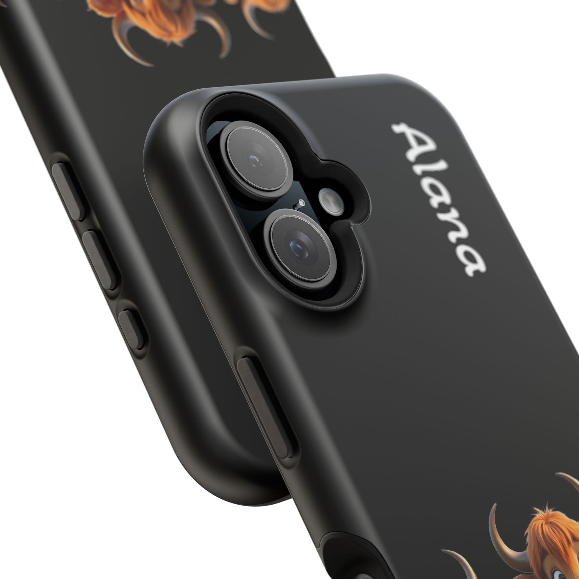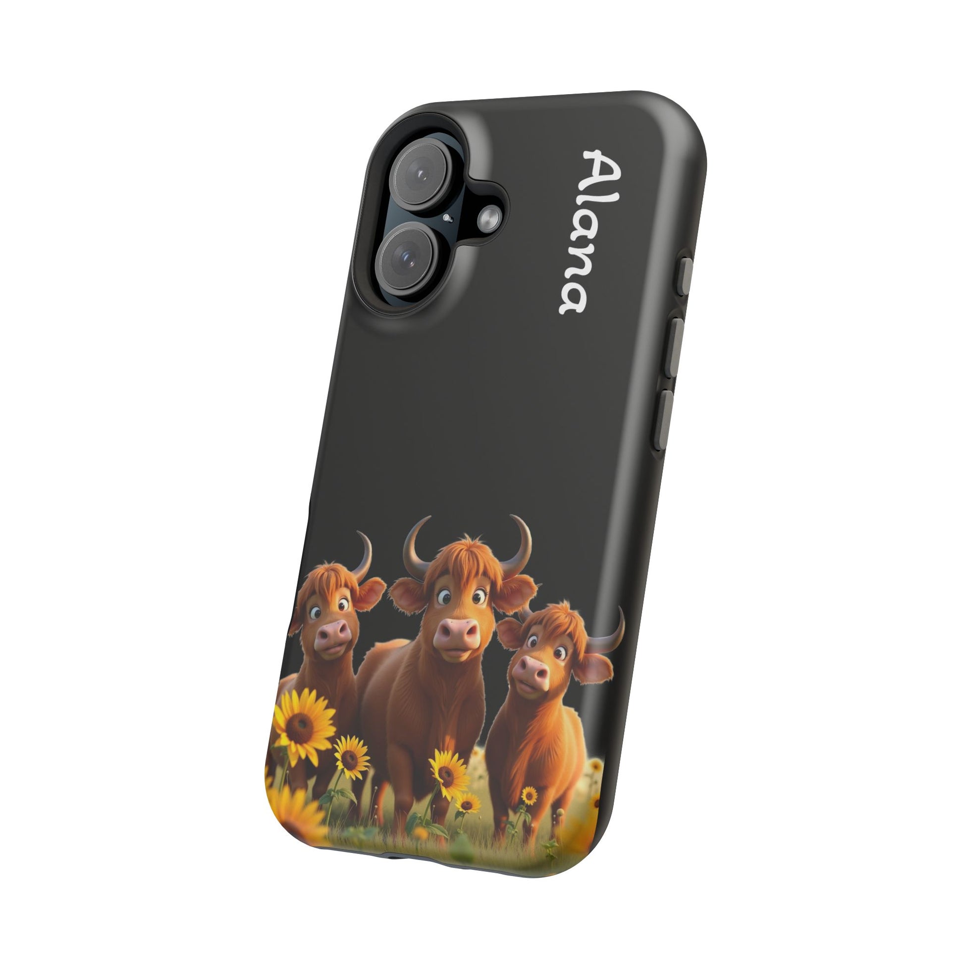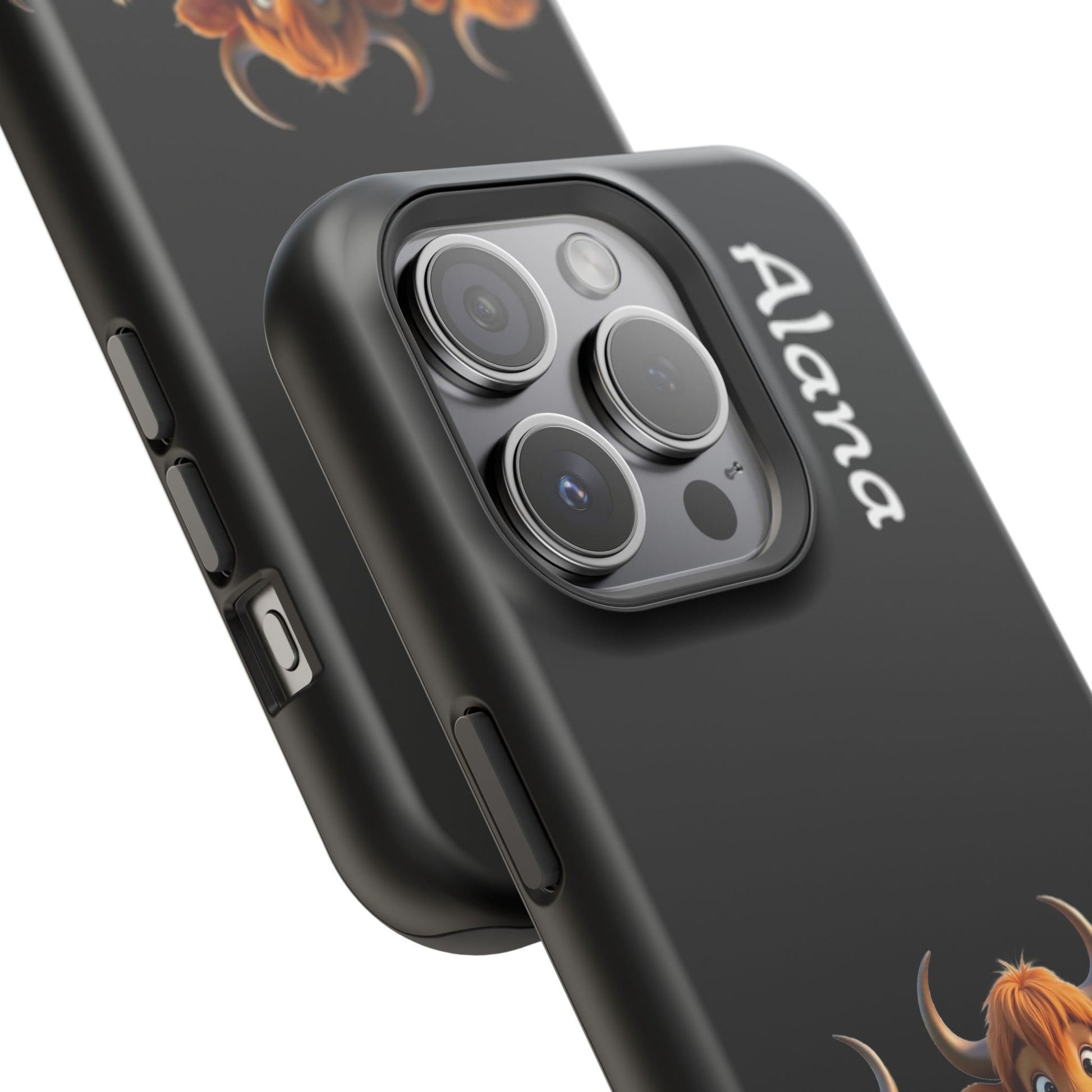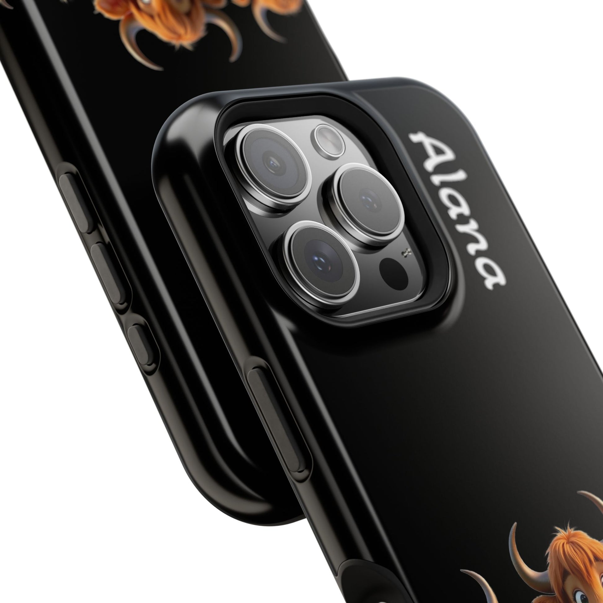 Personalized Highland Cow Phone Case - Custom Name Farm Animal Gift | Cute Black iPhone Cases for Women & Girls