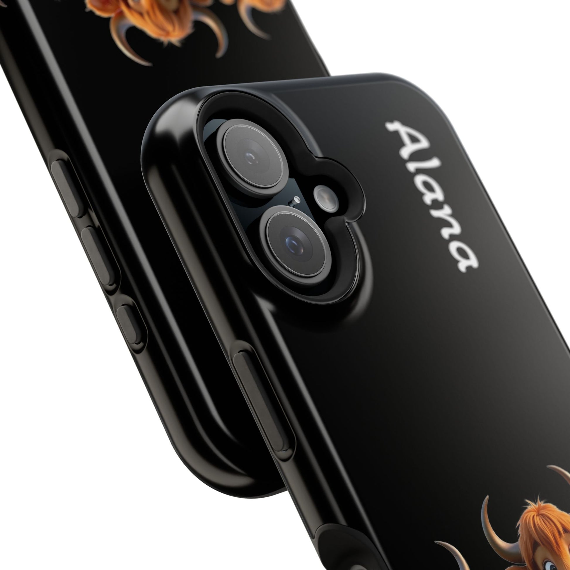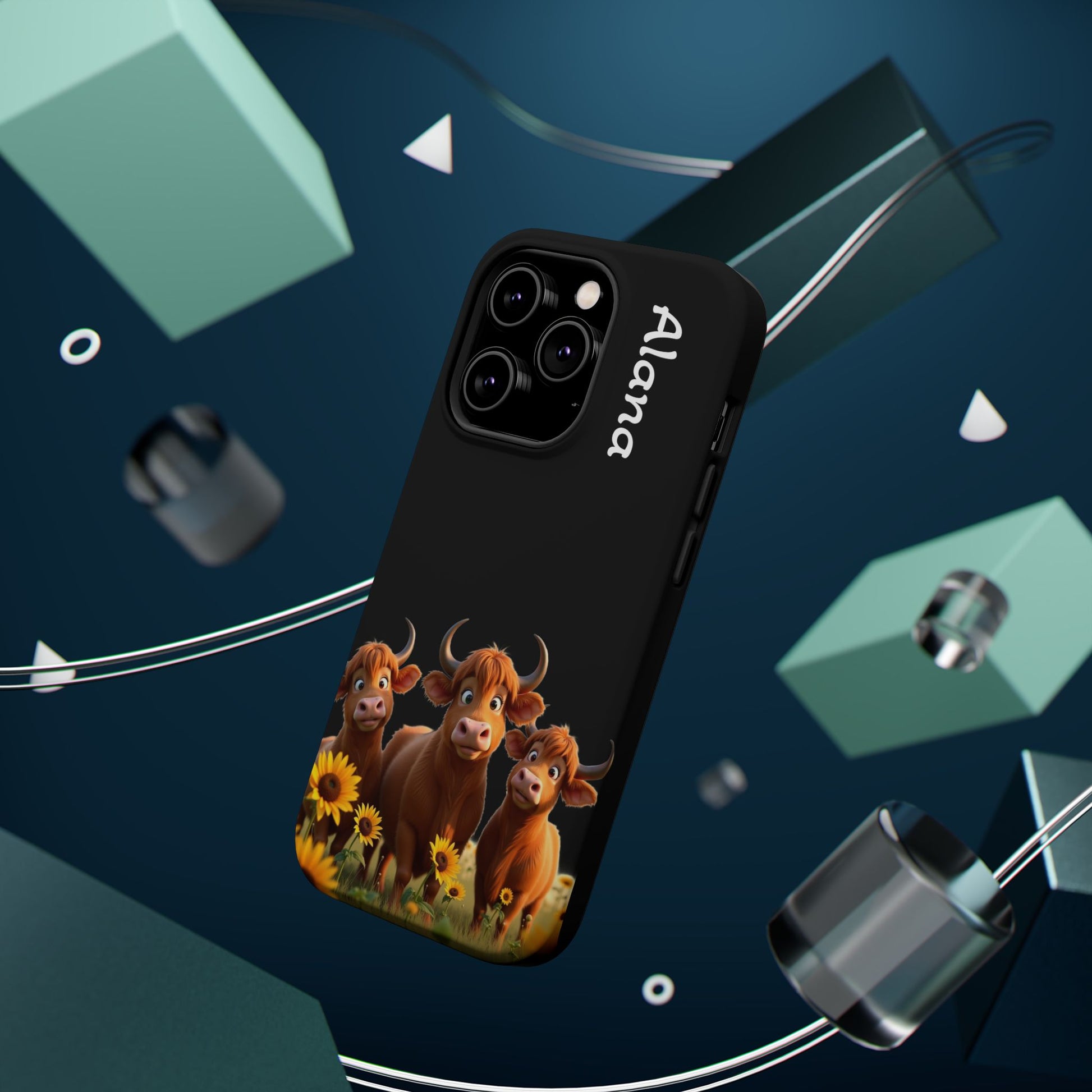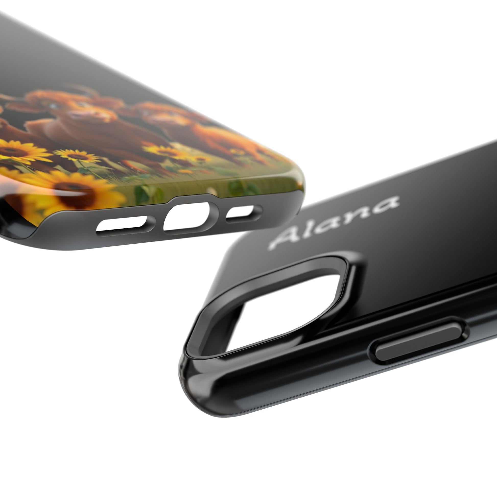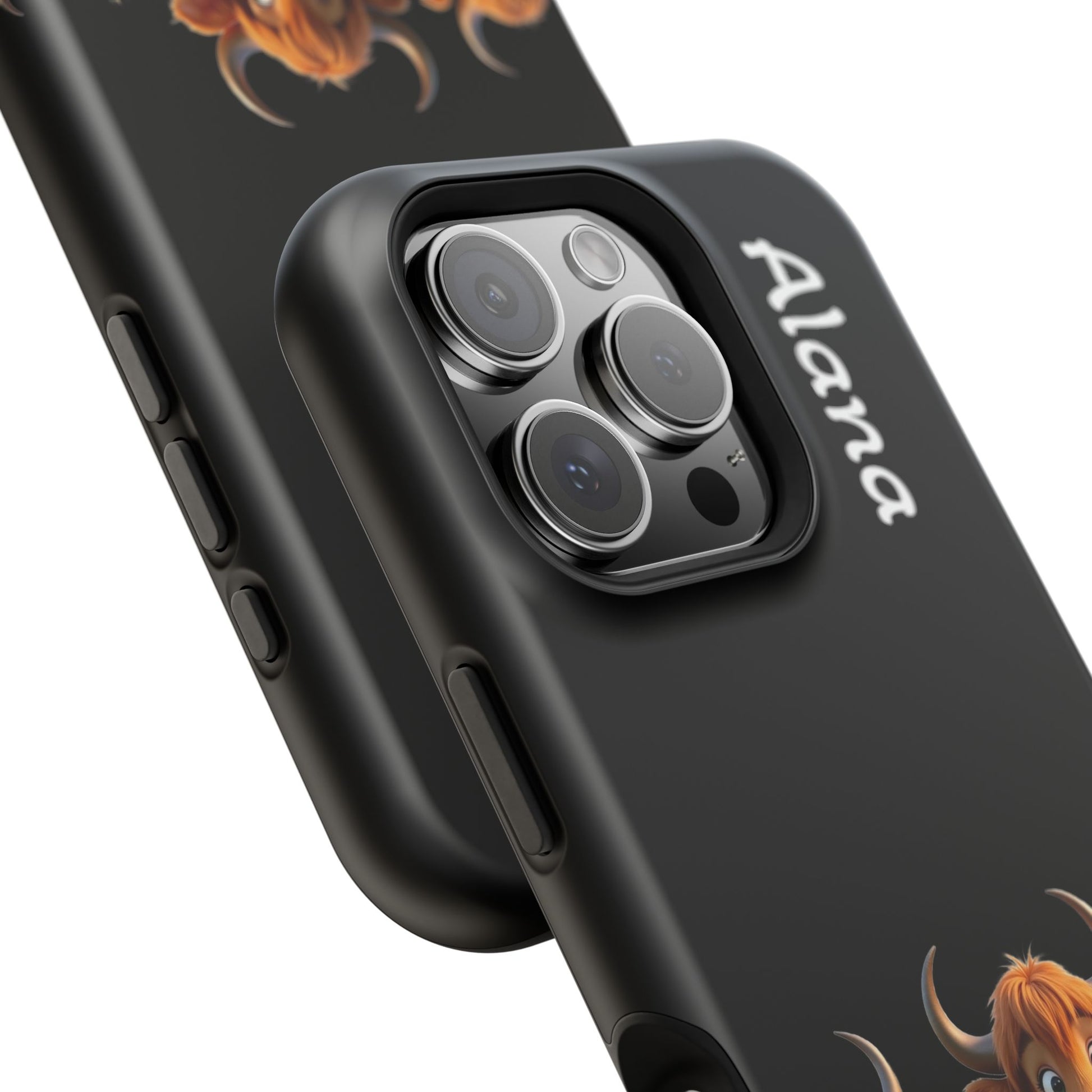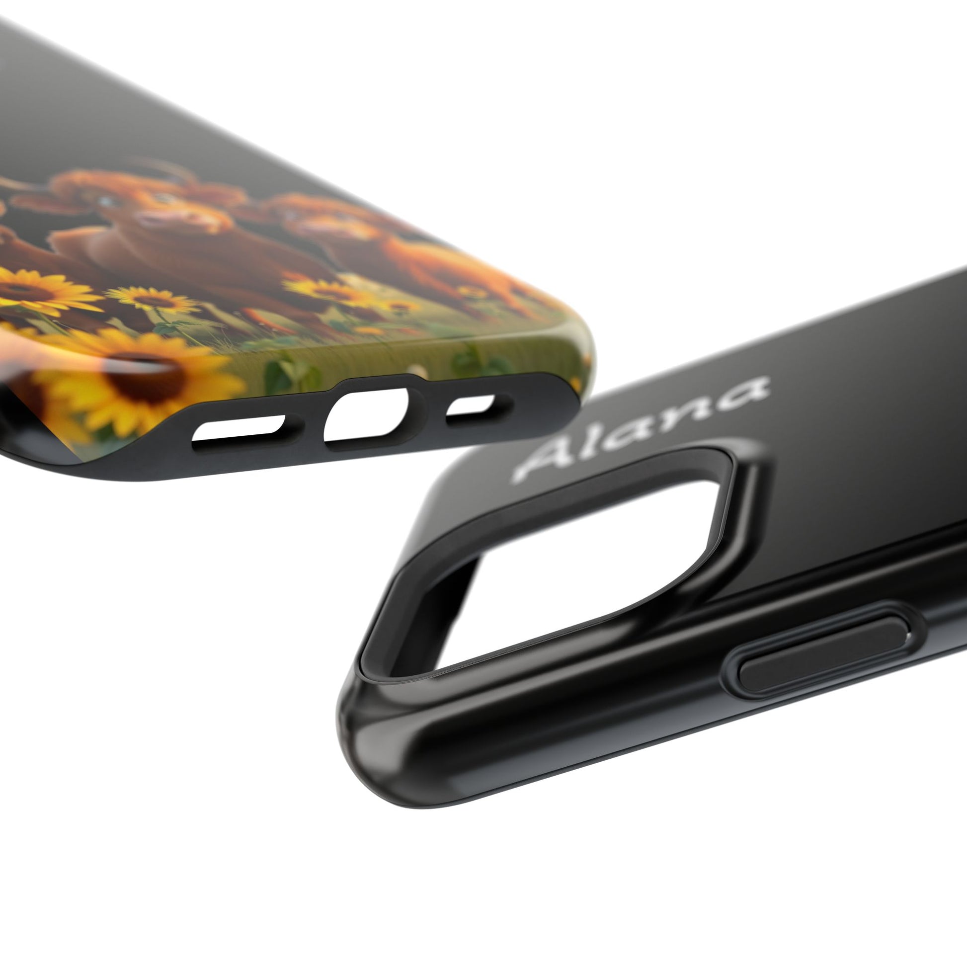 Personalized Highland Cow Phone Case - Custom Name Farm Animal Gift | Cute Black iPhone Cases for Women & Girls