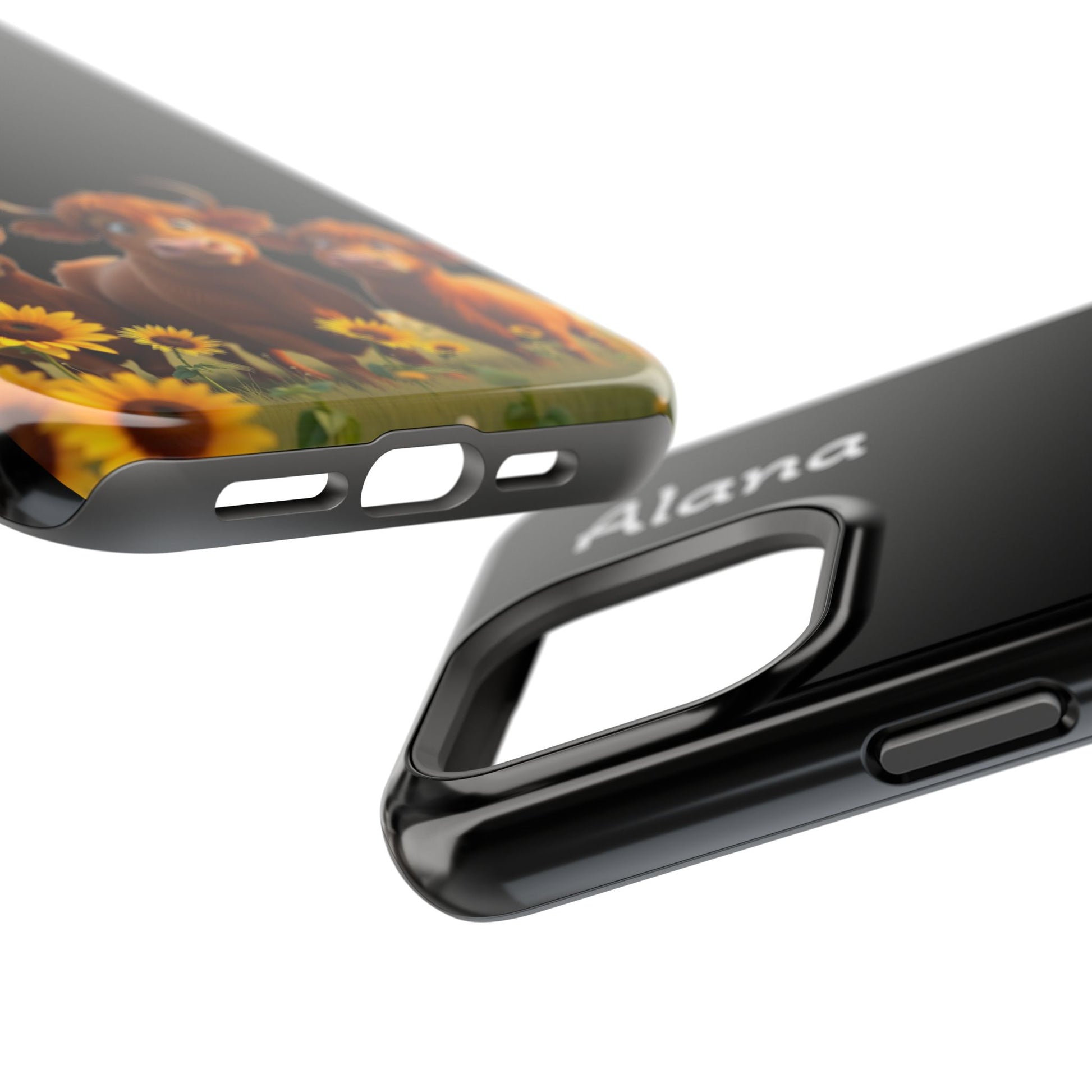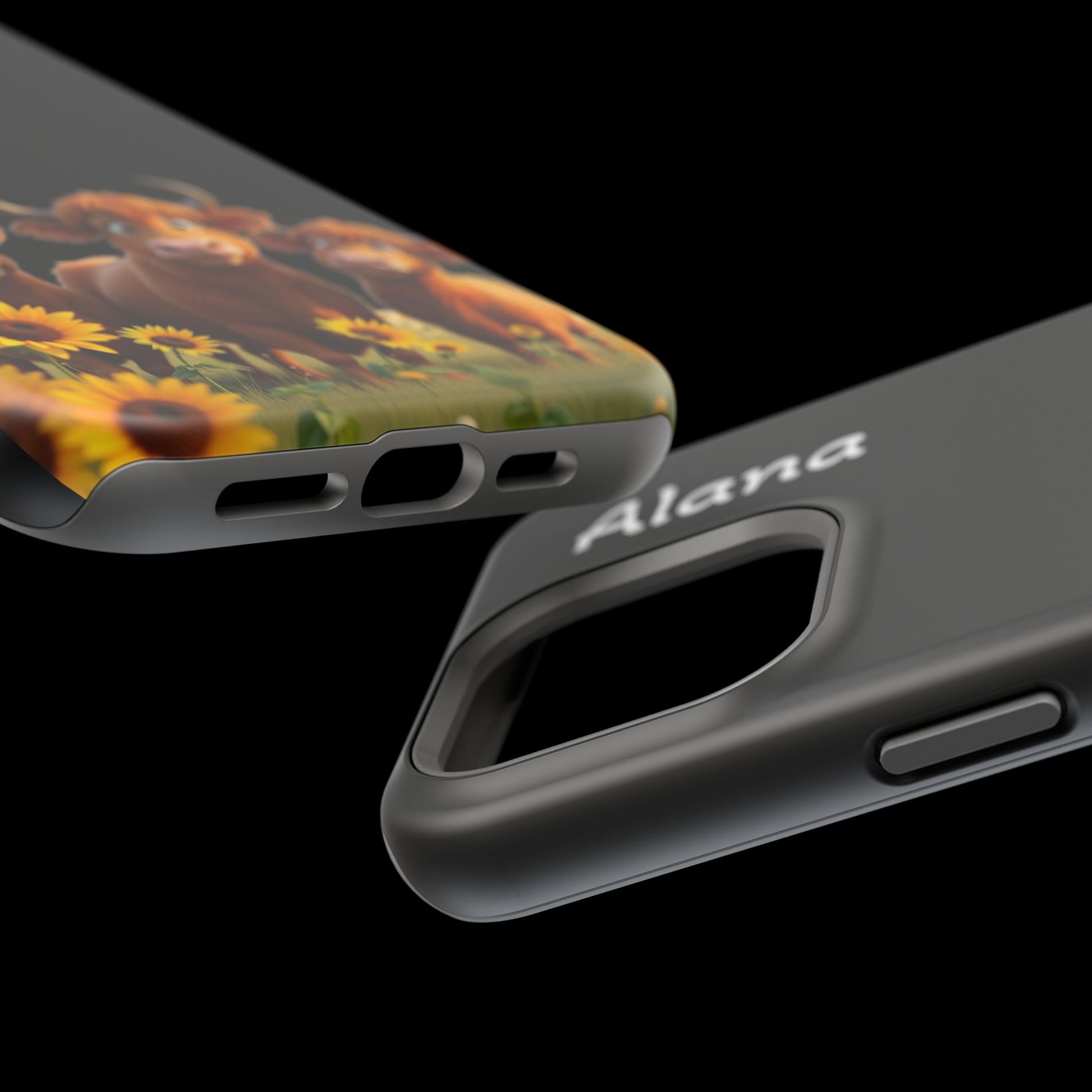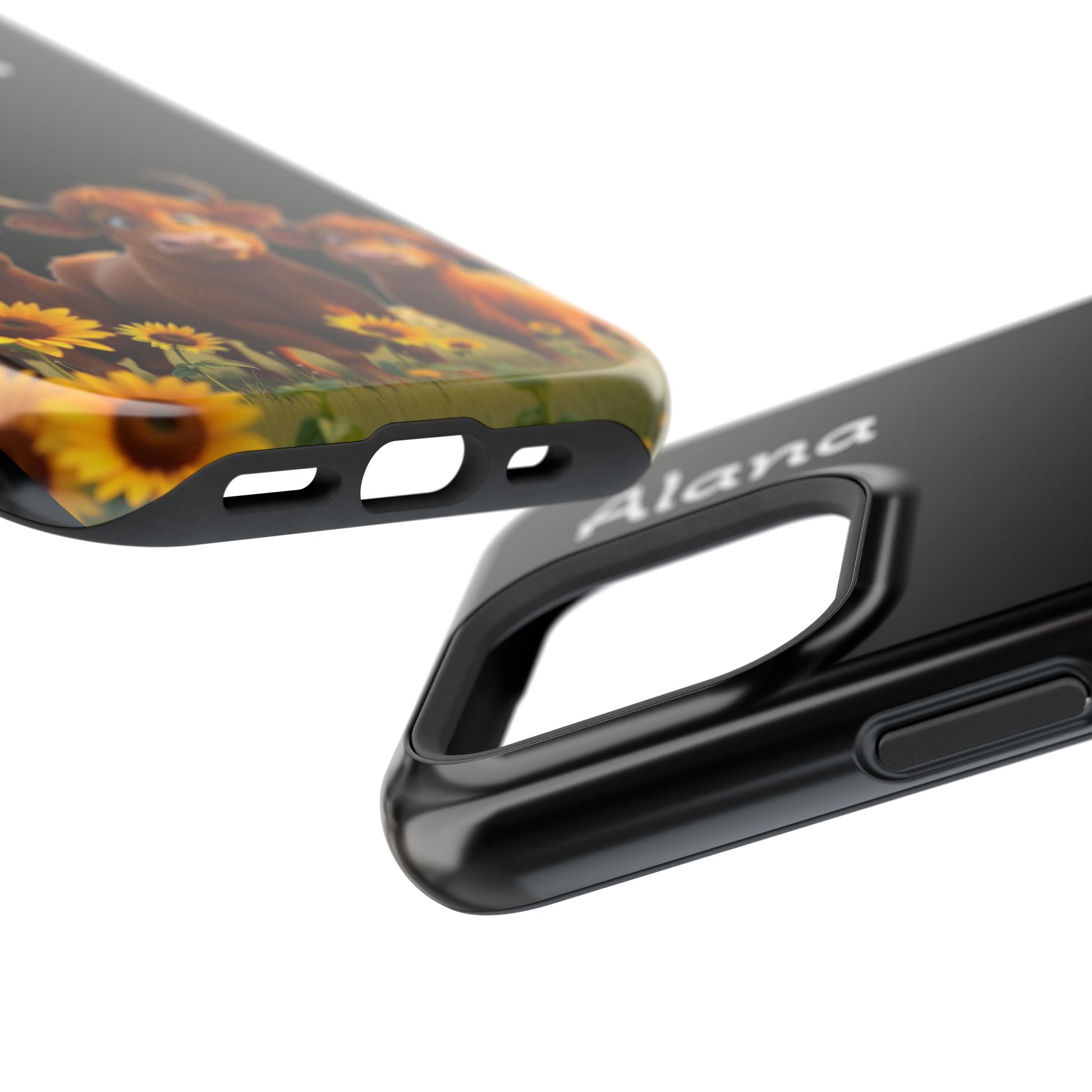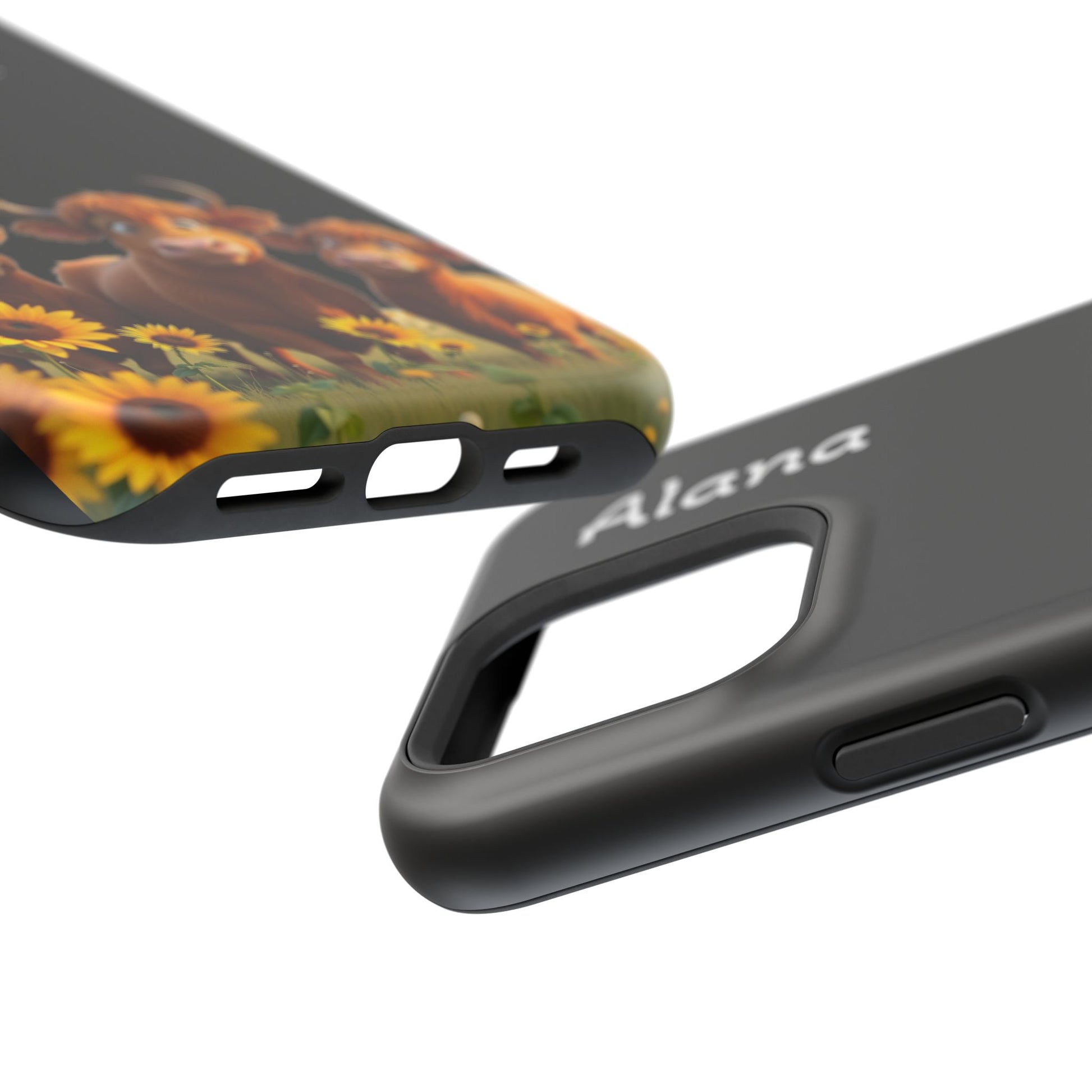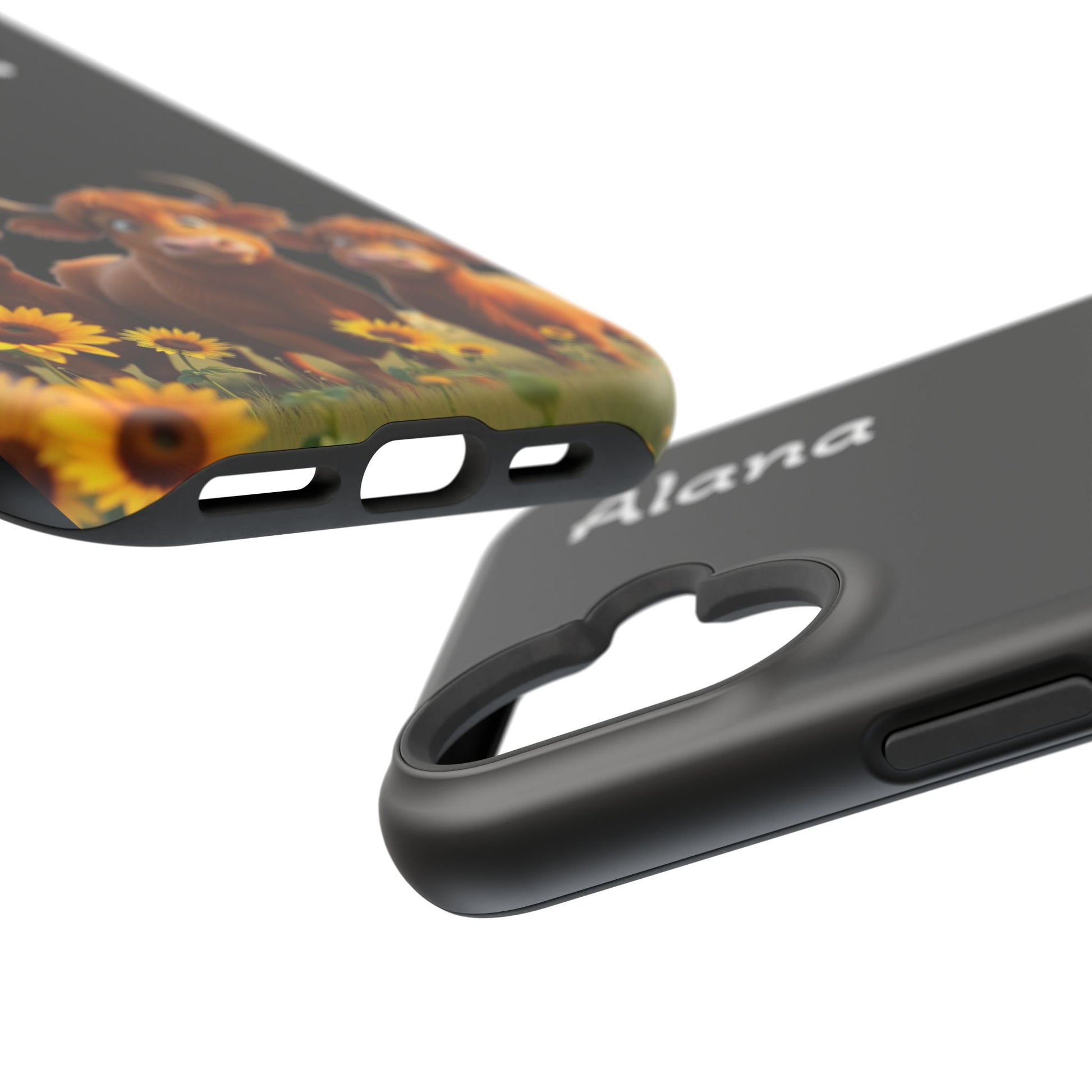 Personalized Highland Cow Phone Case - Custom Name Farm Animal Gift | Cute Black iPhone Cases for Women & Girls