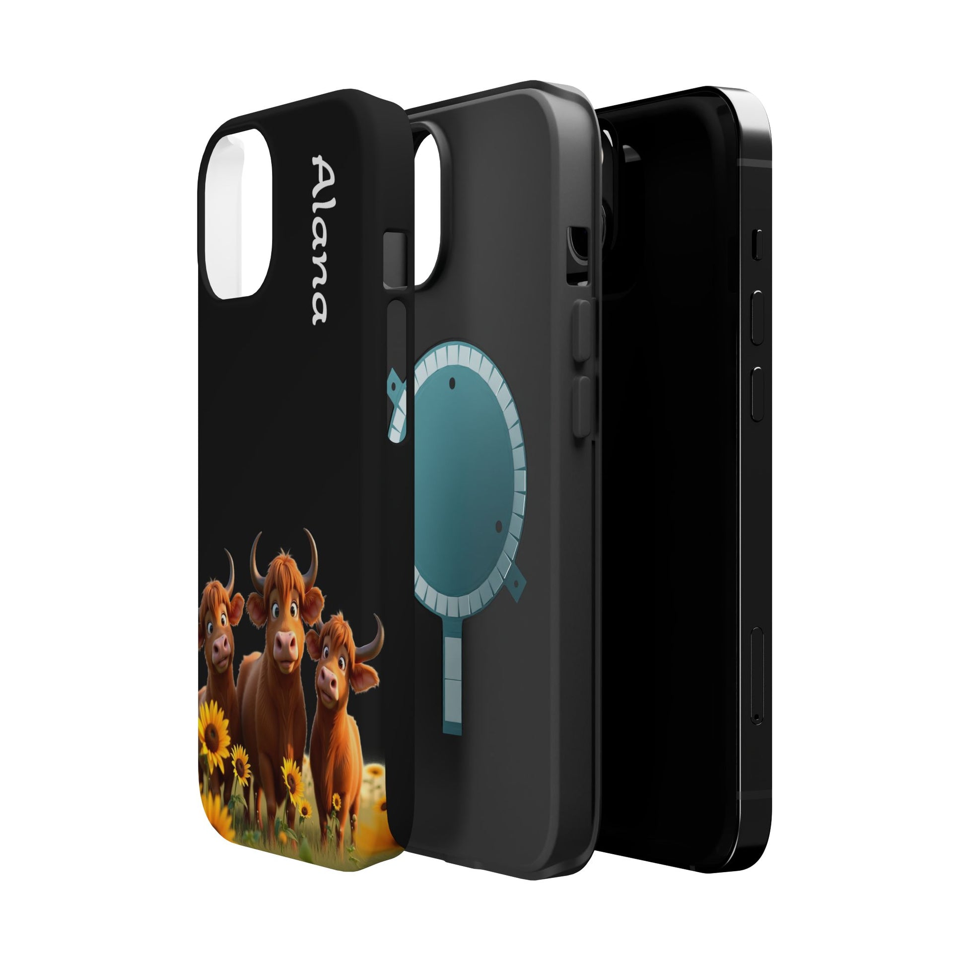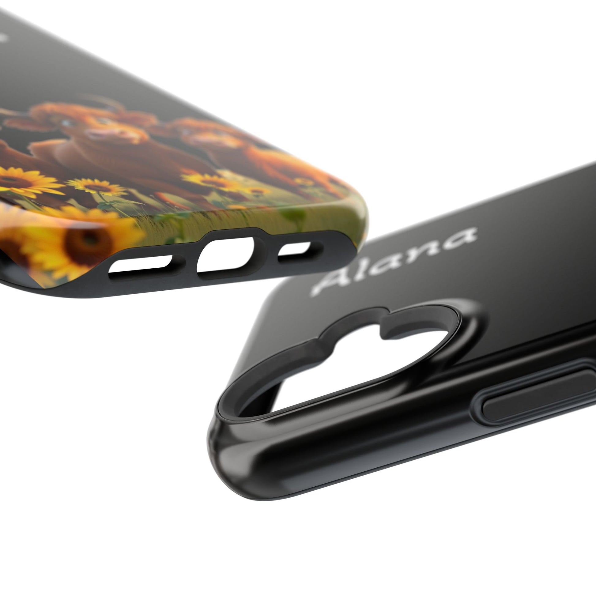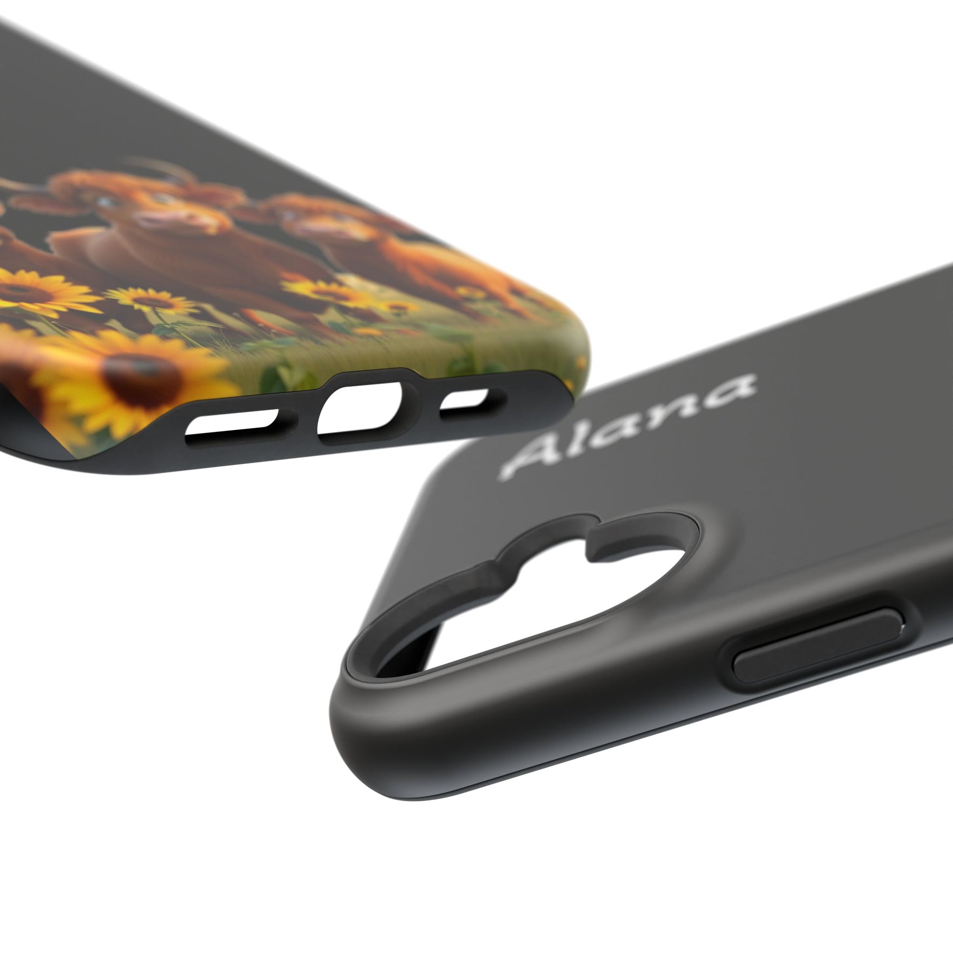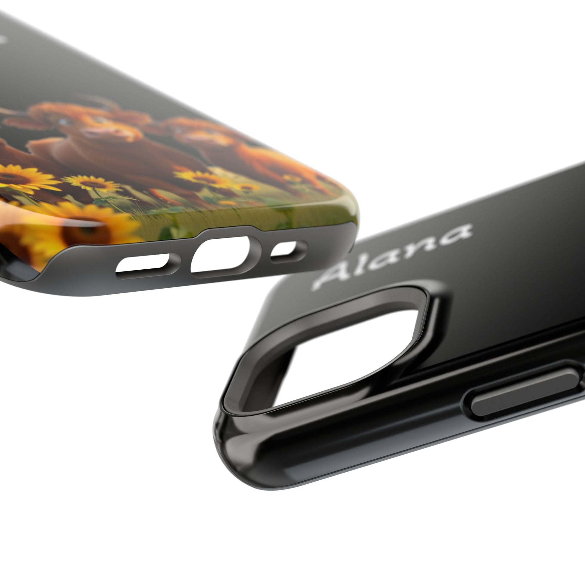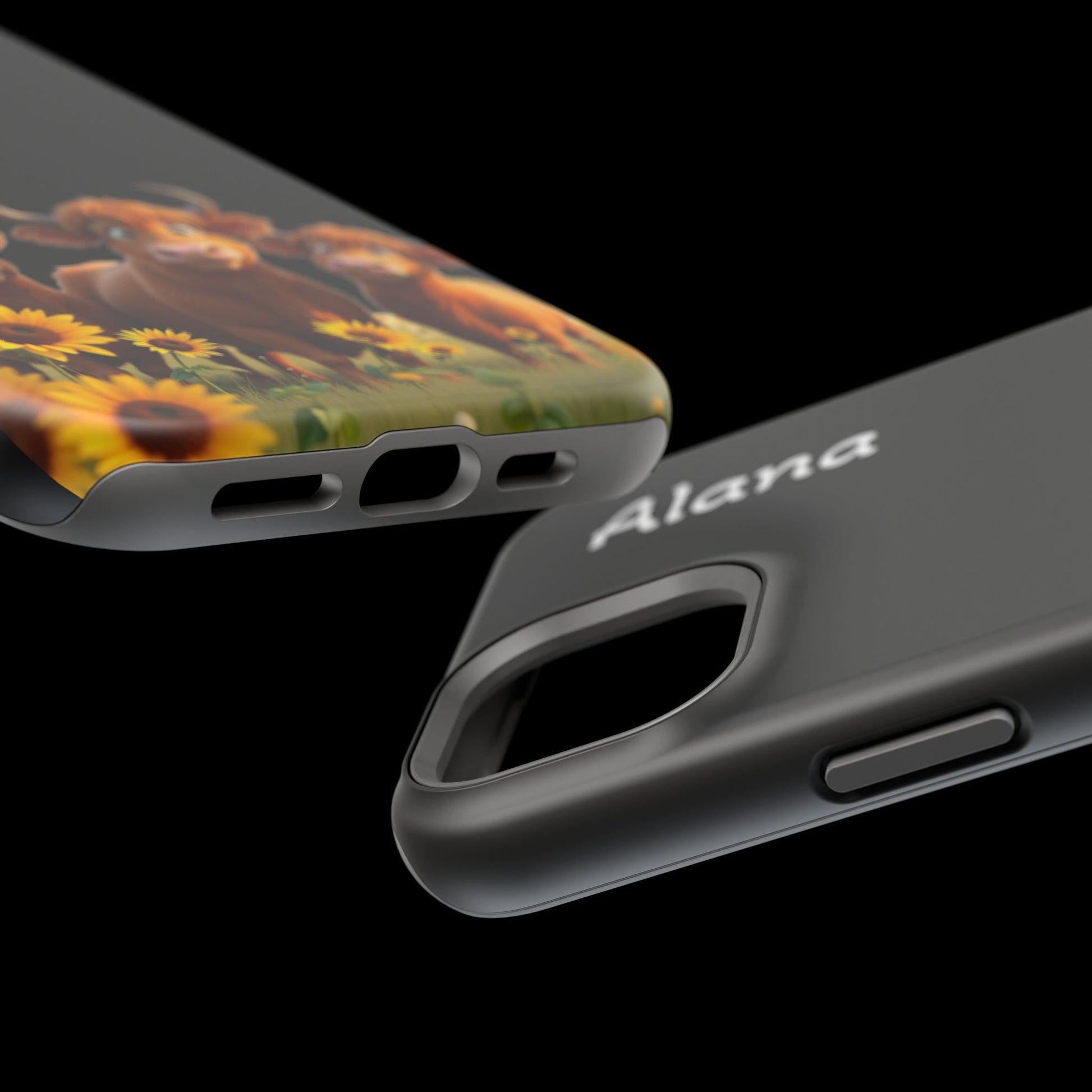 Personalized Highland Cow Phone Case - Custom Name Farm Animal Gift | Cute Black iPhone Cases for Women & Girls