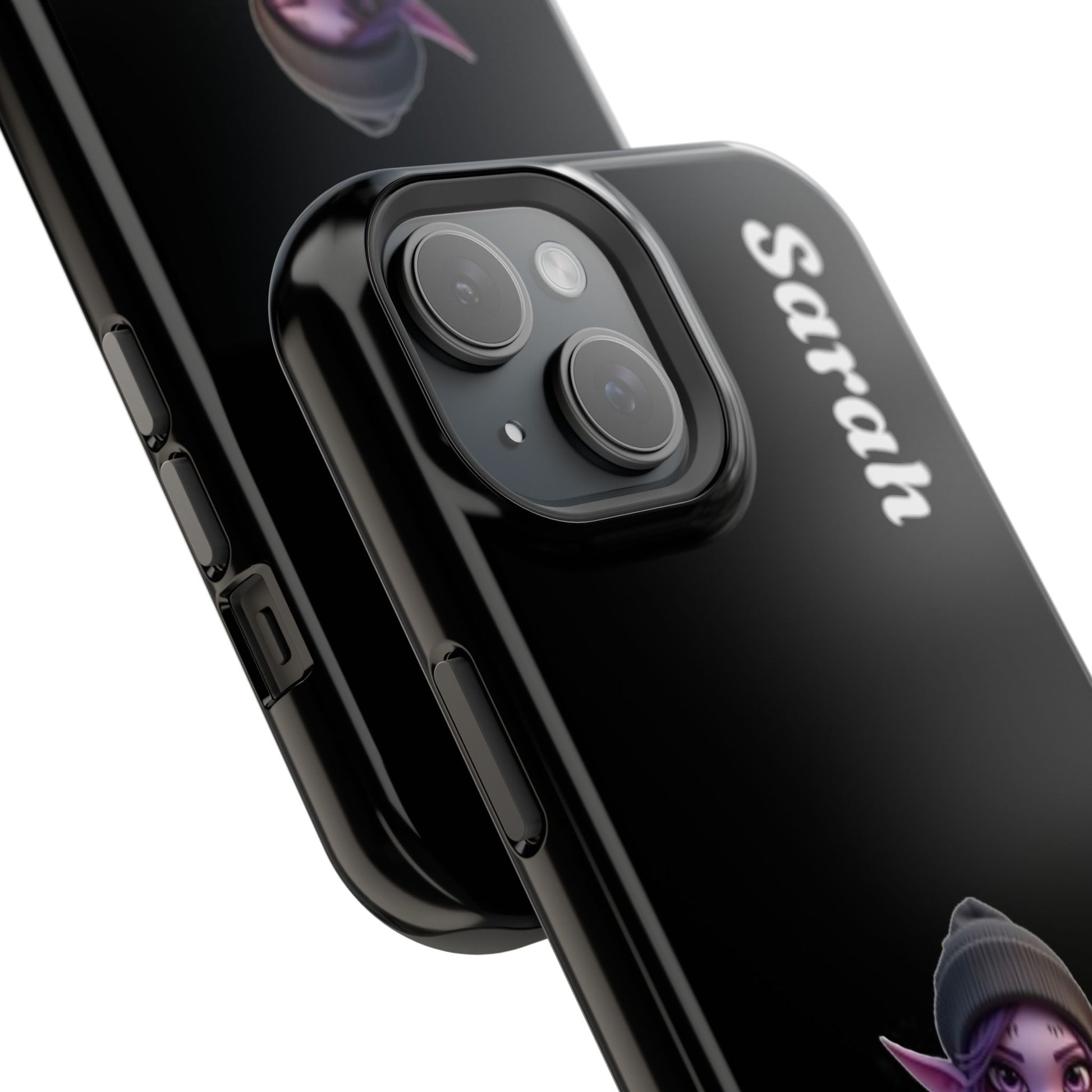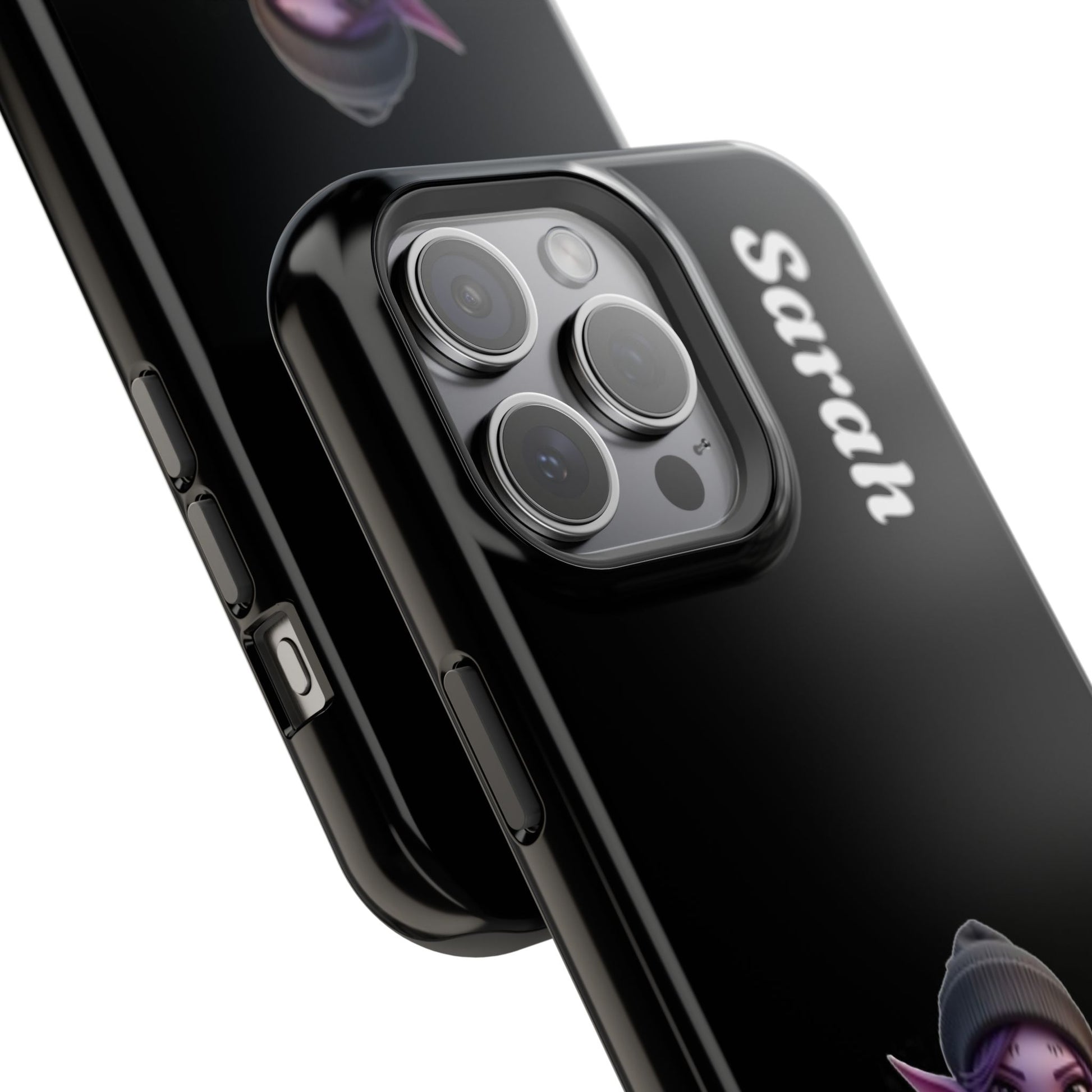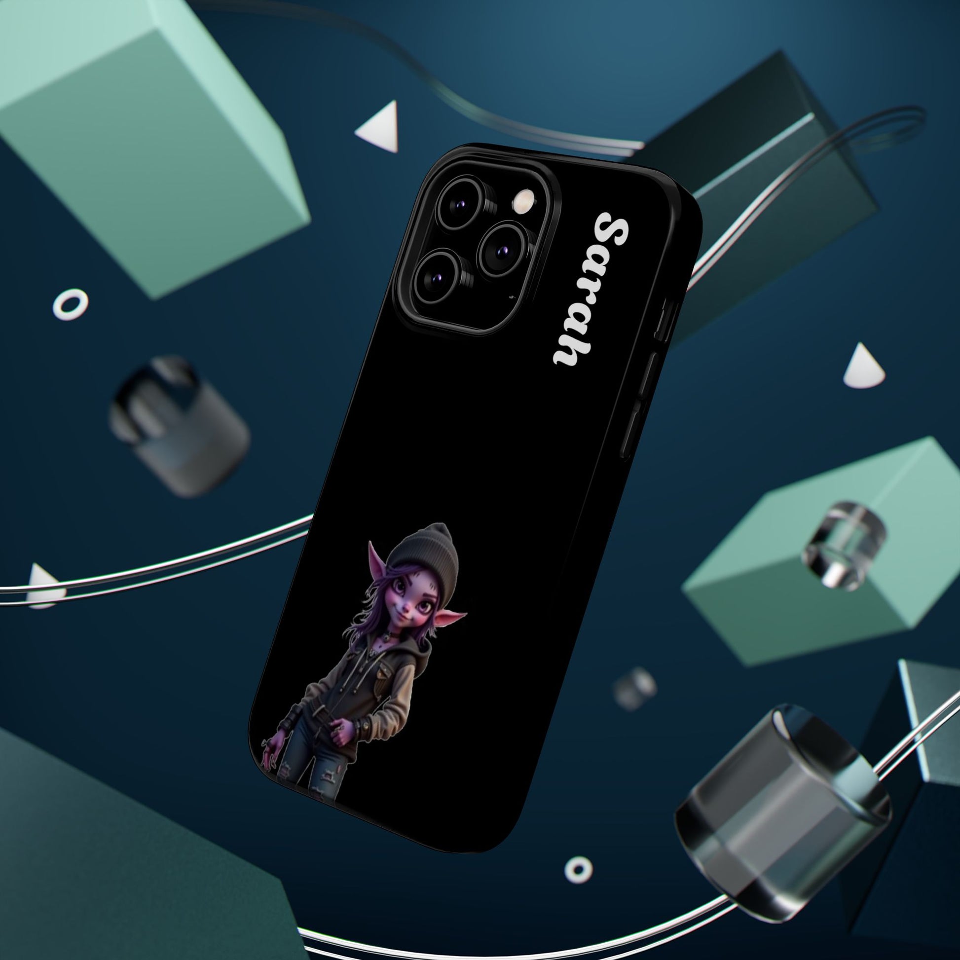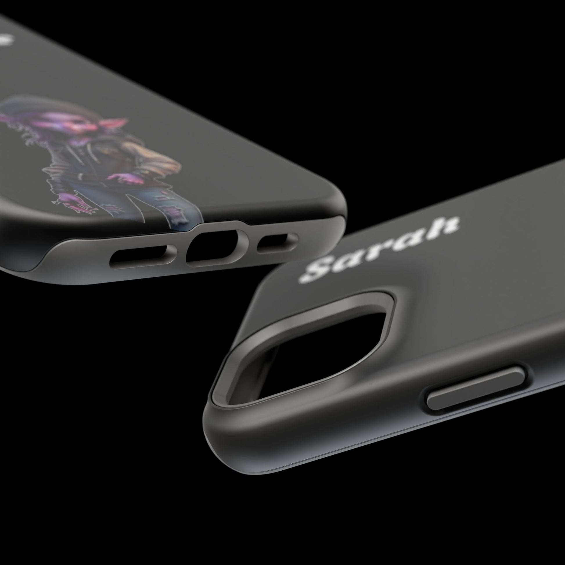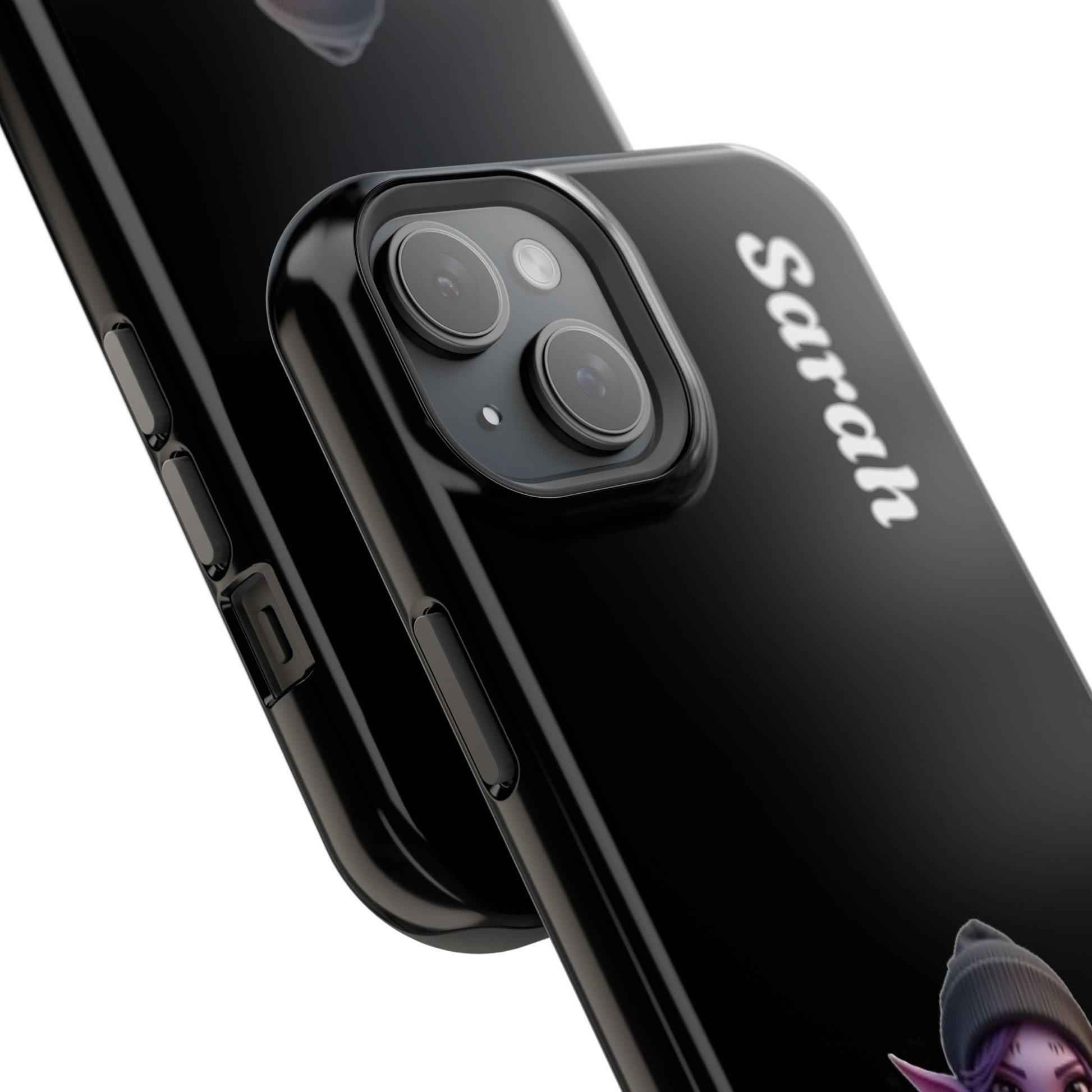 This striking case showcases an edgy elf design with bold colors and a confident attitude, complete with your chosen name vertically along the side. Prepare to turn heads!