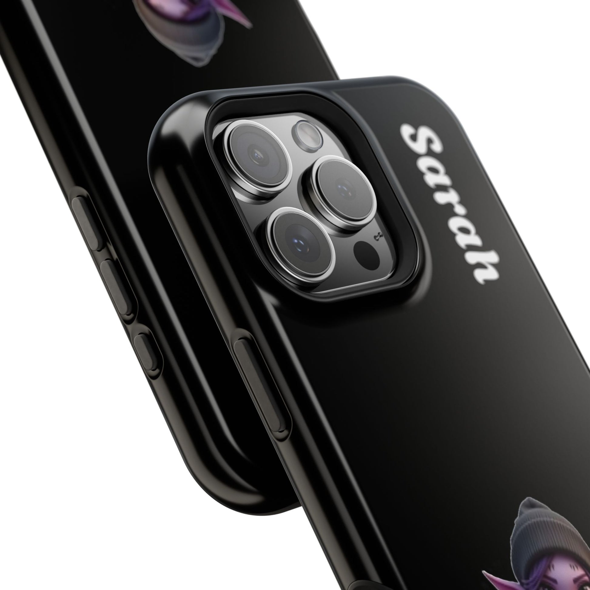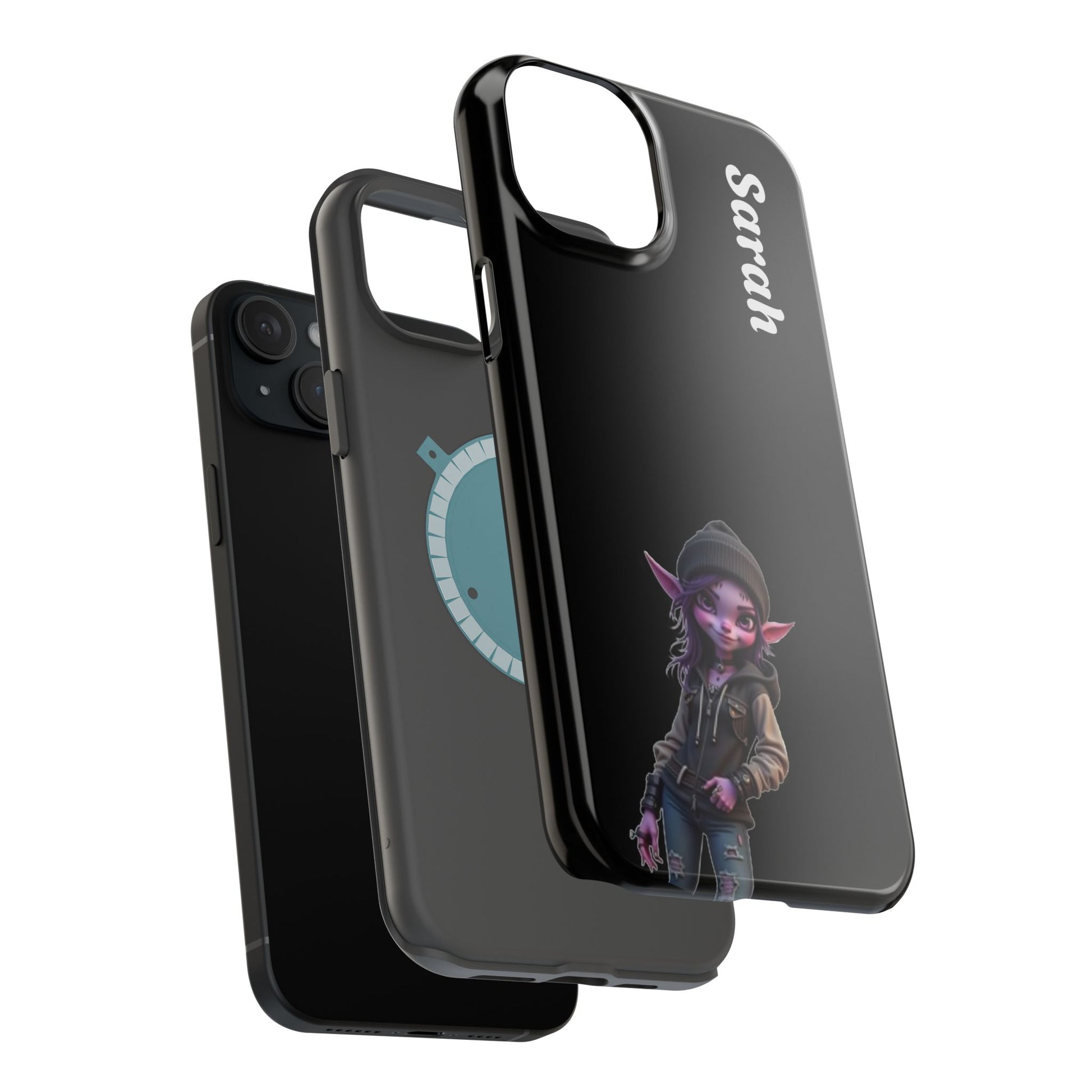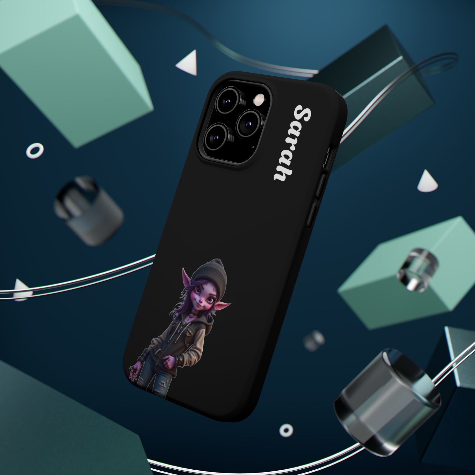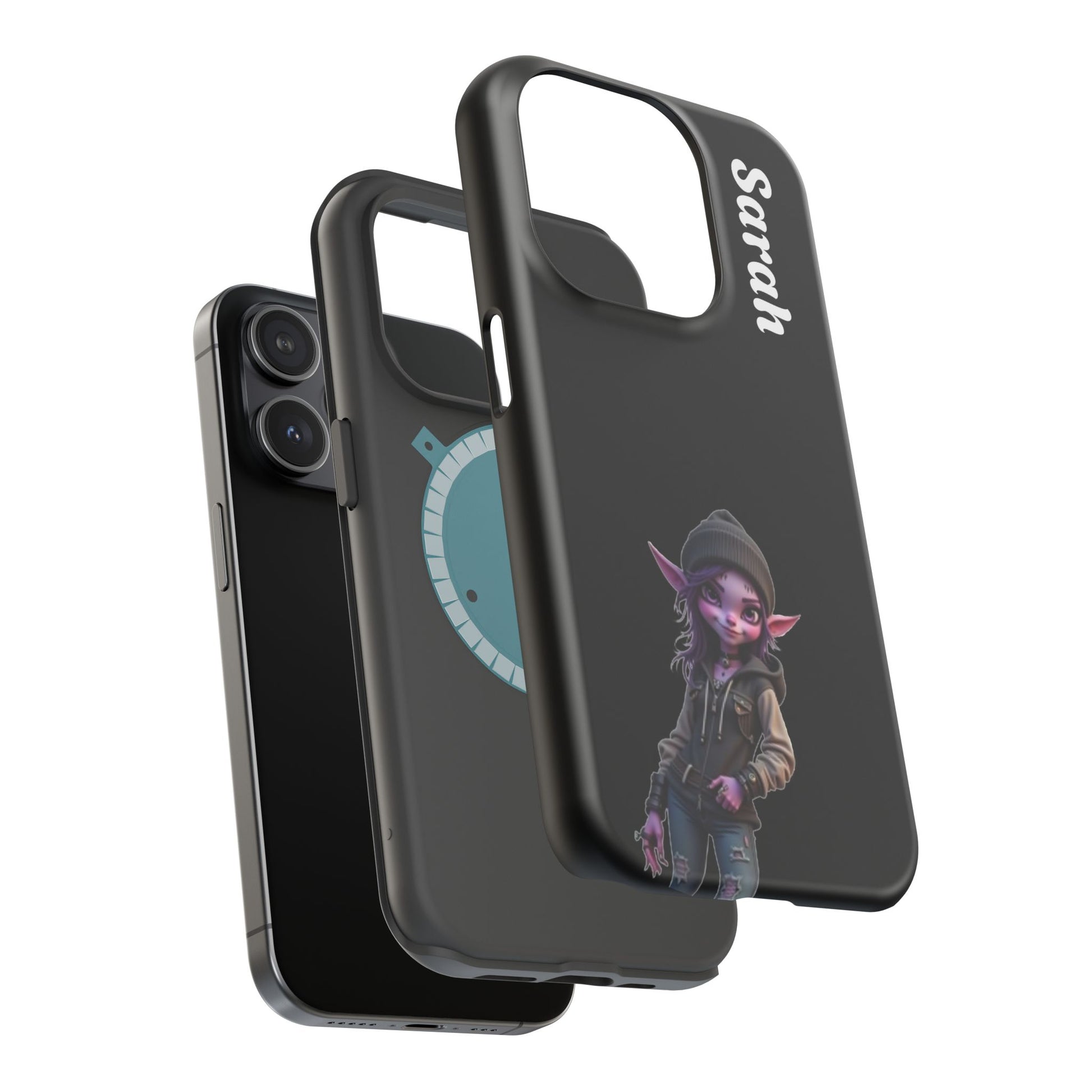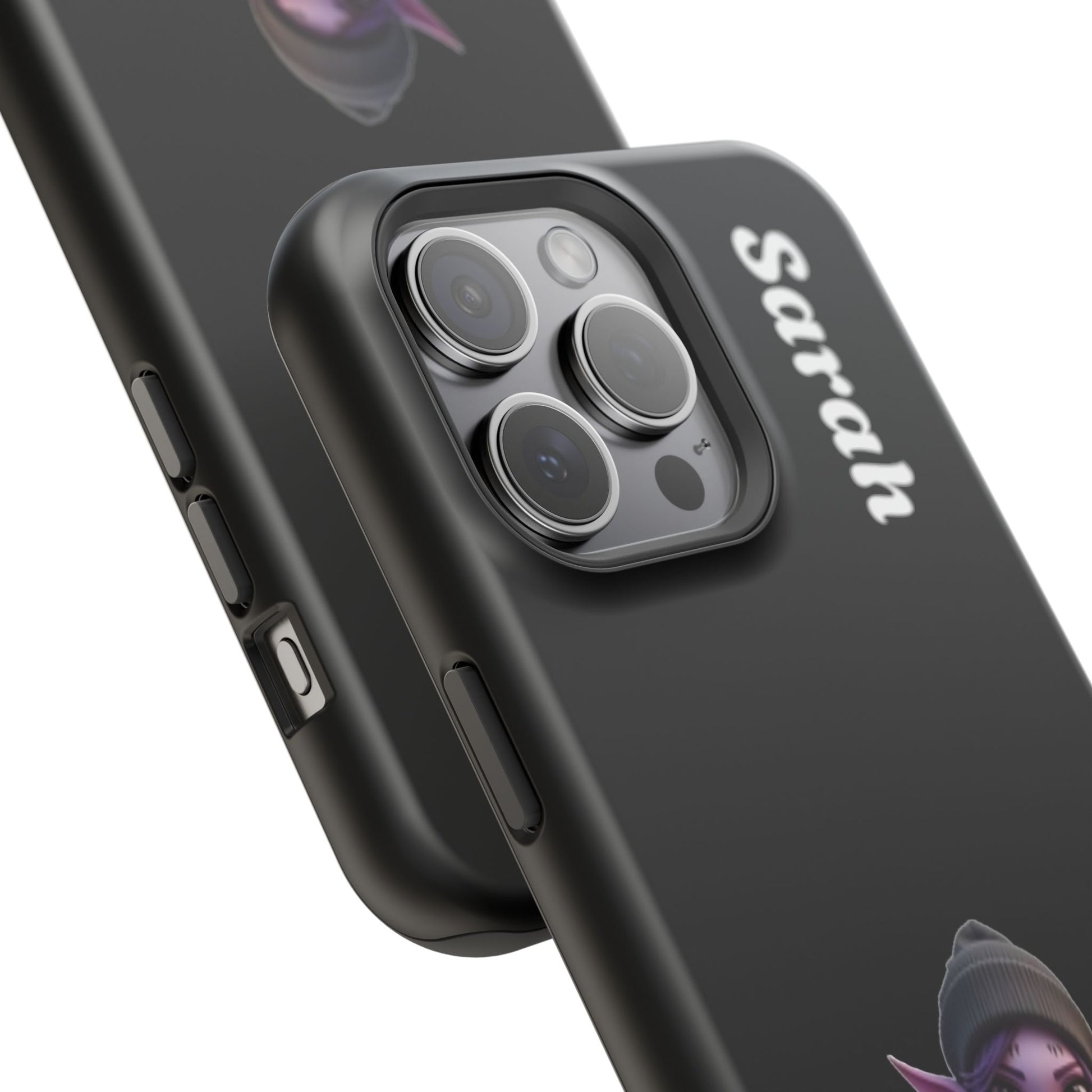 This striking case showcases an edgy elf design with bold colors and a confident attitude, complete with your chosen name vertically along the side. Prepare to turn heads!