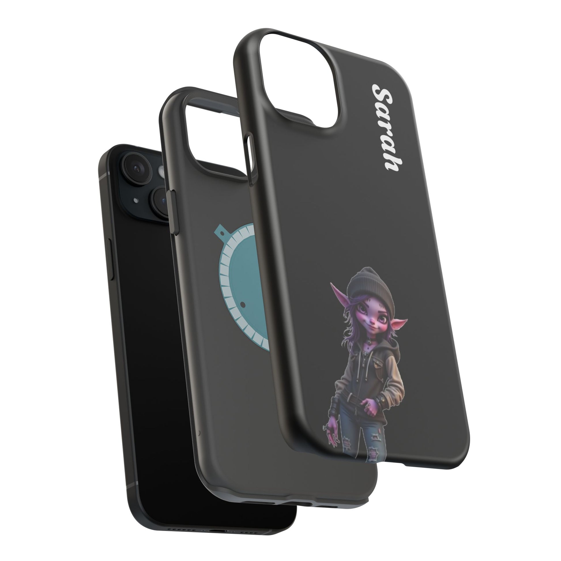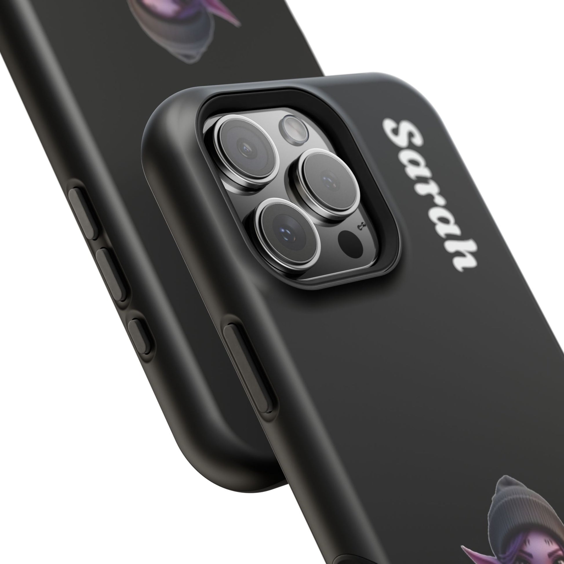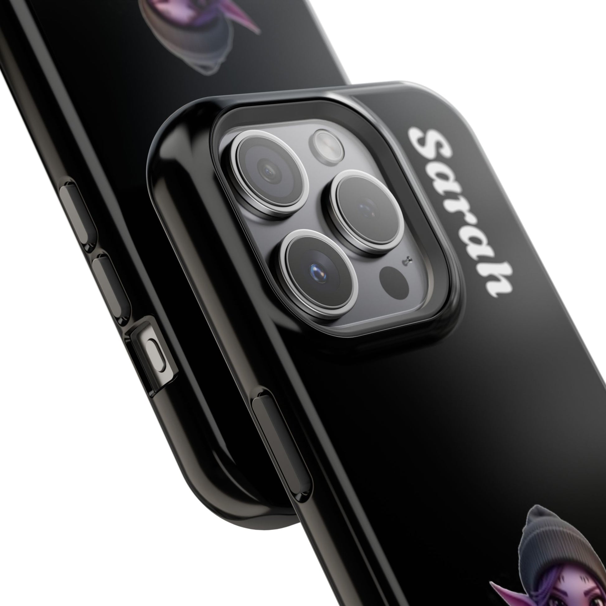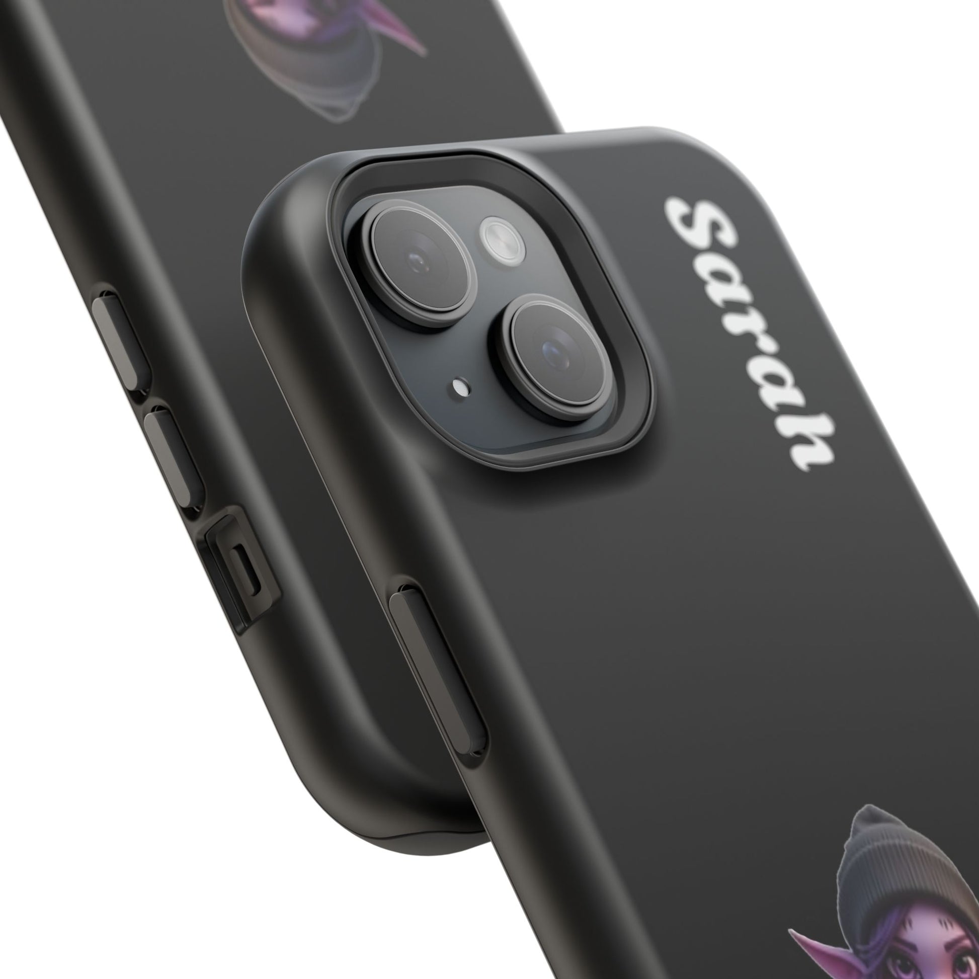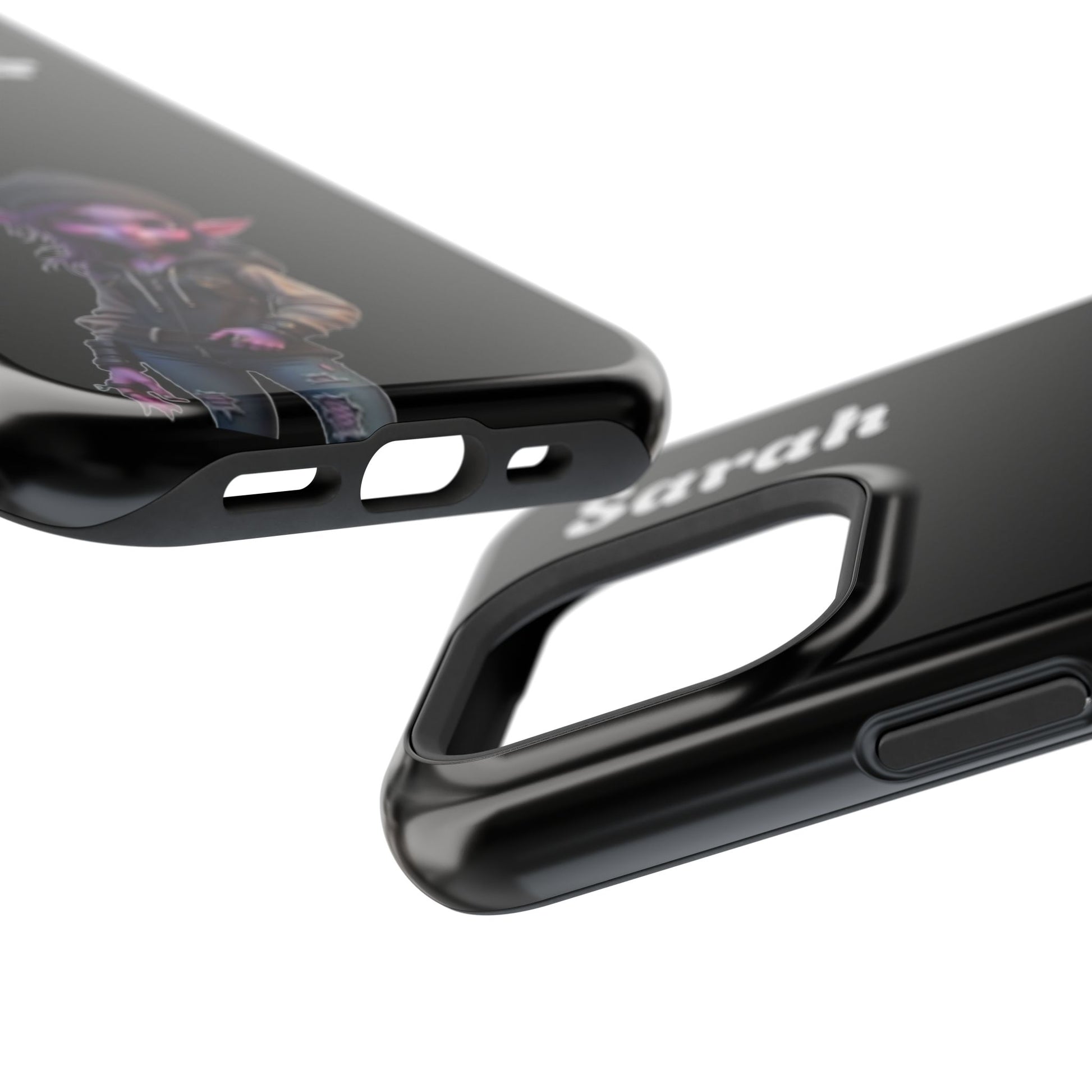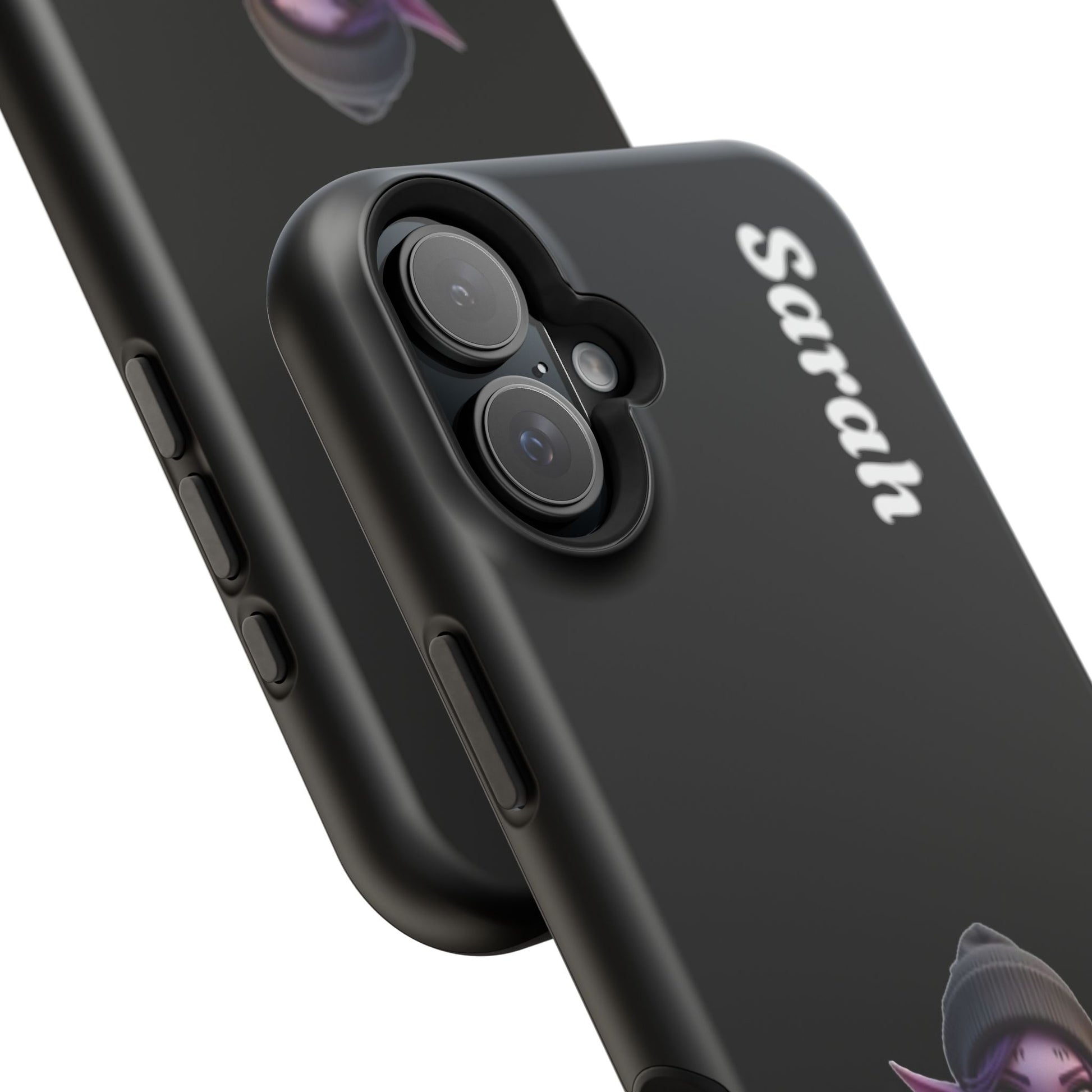 This striking case showcases an edgy elf design with bold colors and a confident attitude, complete with your chosen name vertically along the side. Prepare to turn heads!