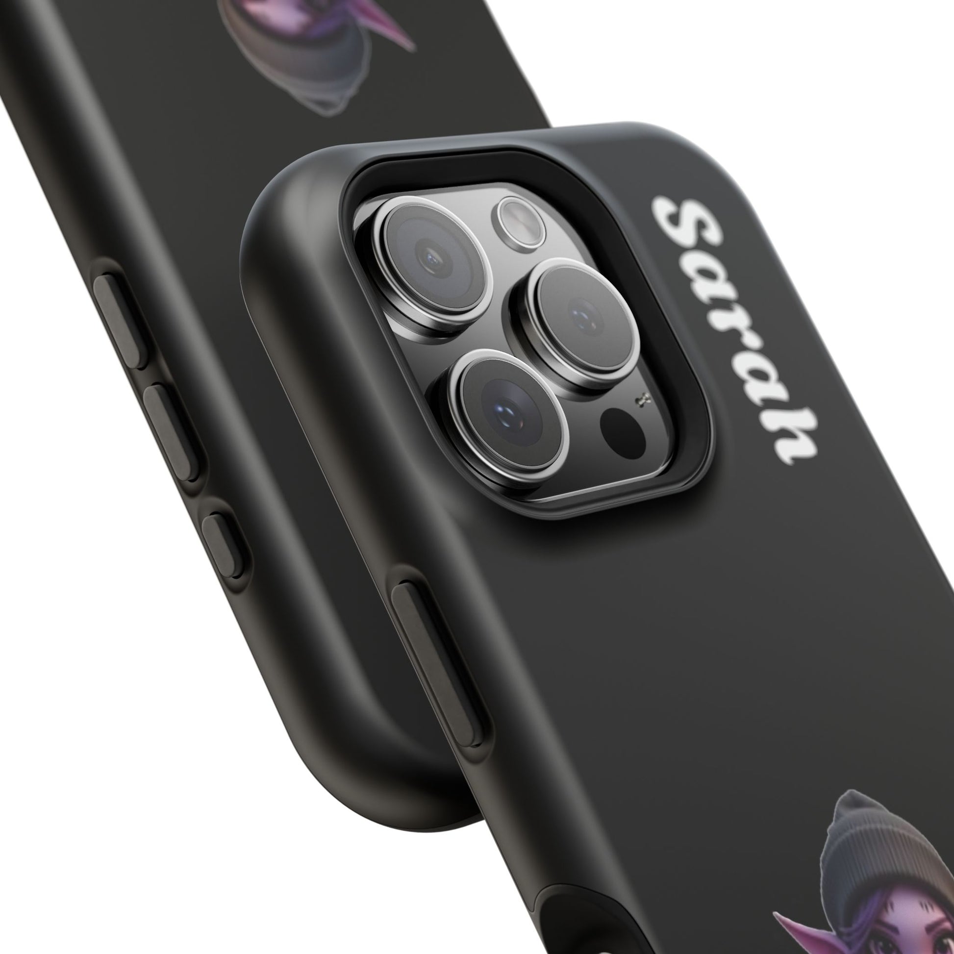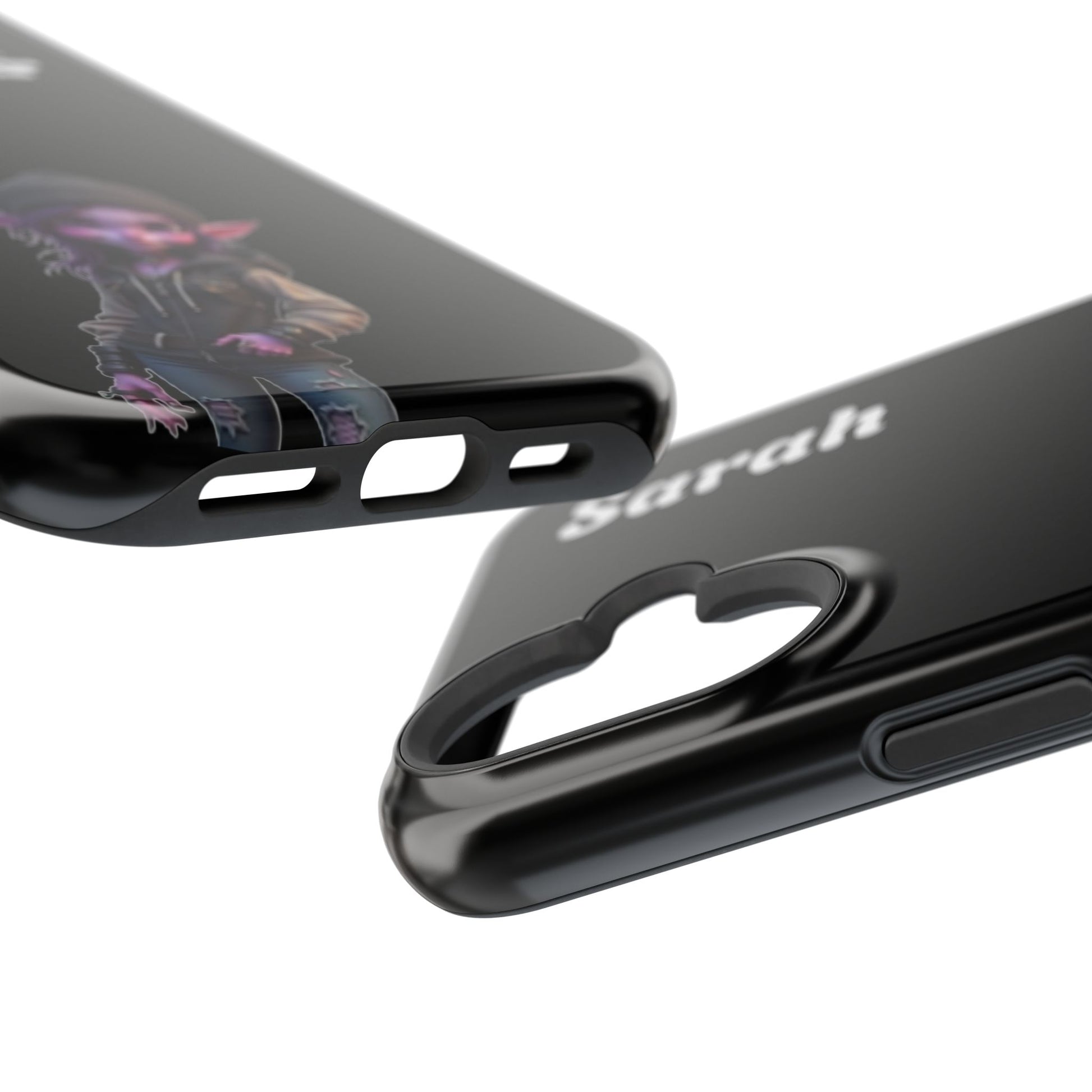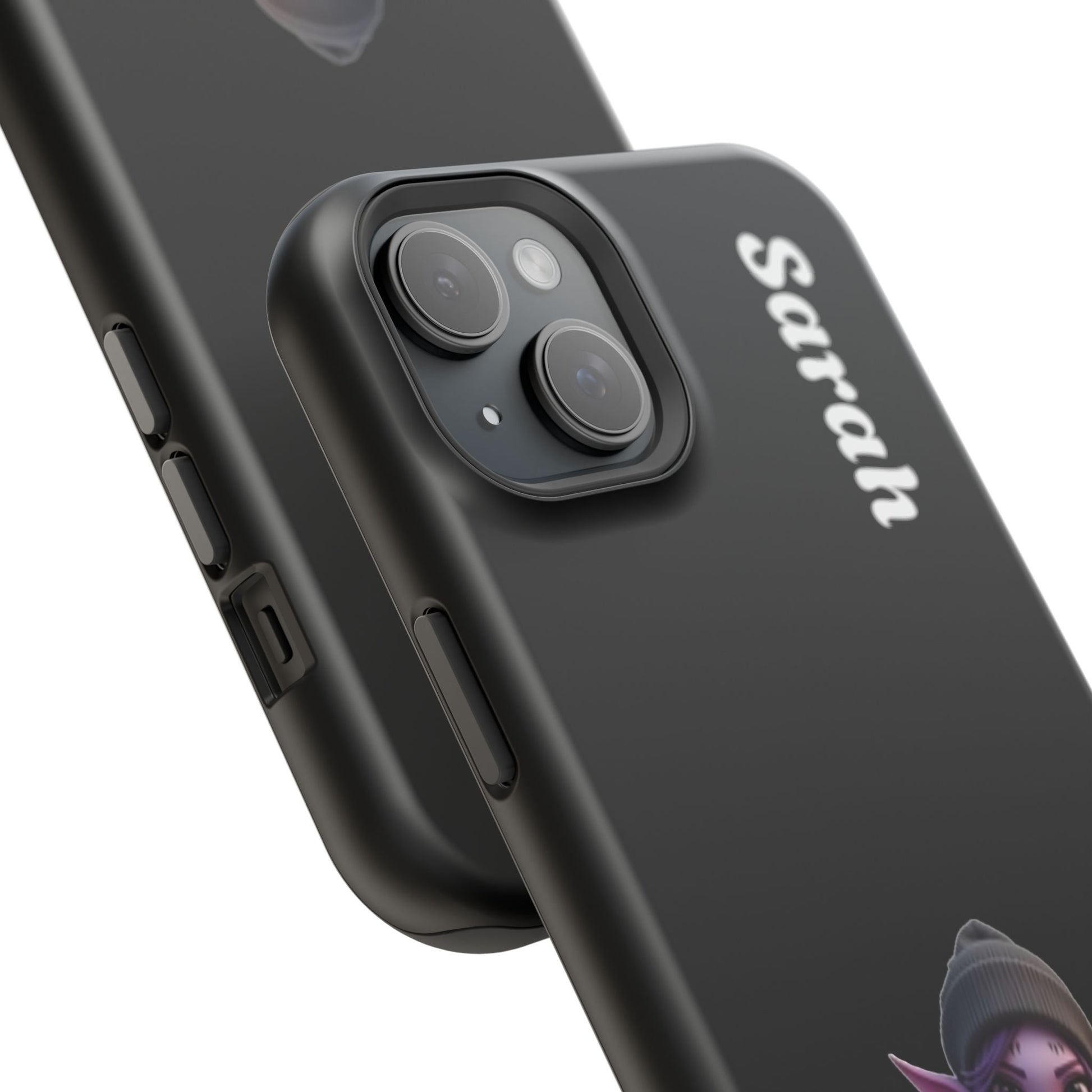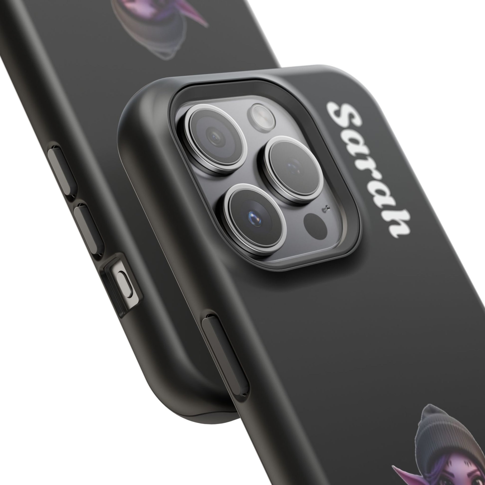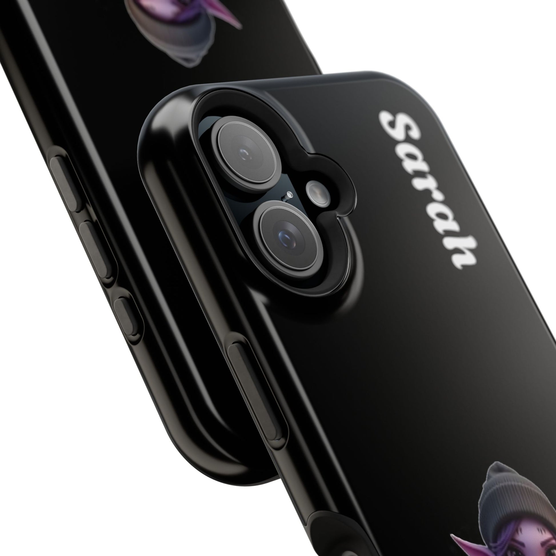 This striking case showcases an edgy elf design with bold colors and a confident attitude, complete with your chosen name vertically along the side. Prepare to turn heads!