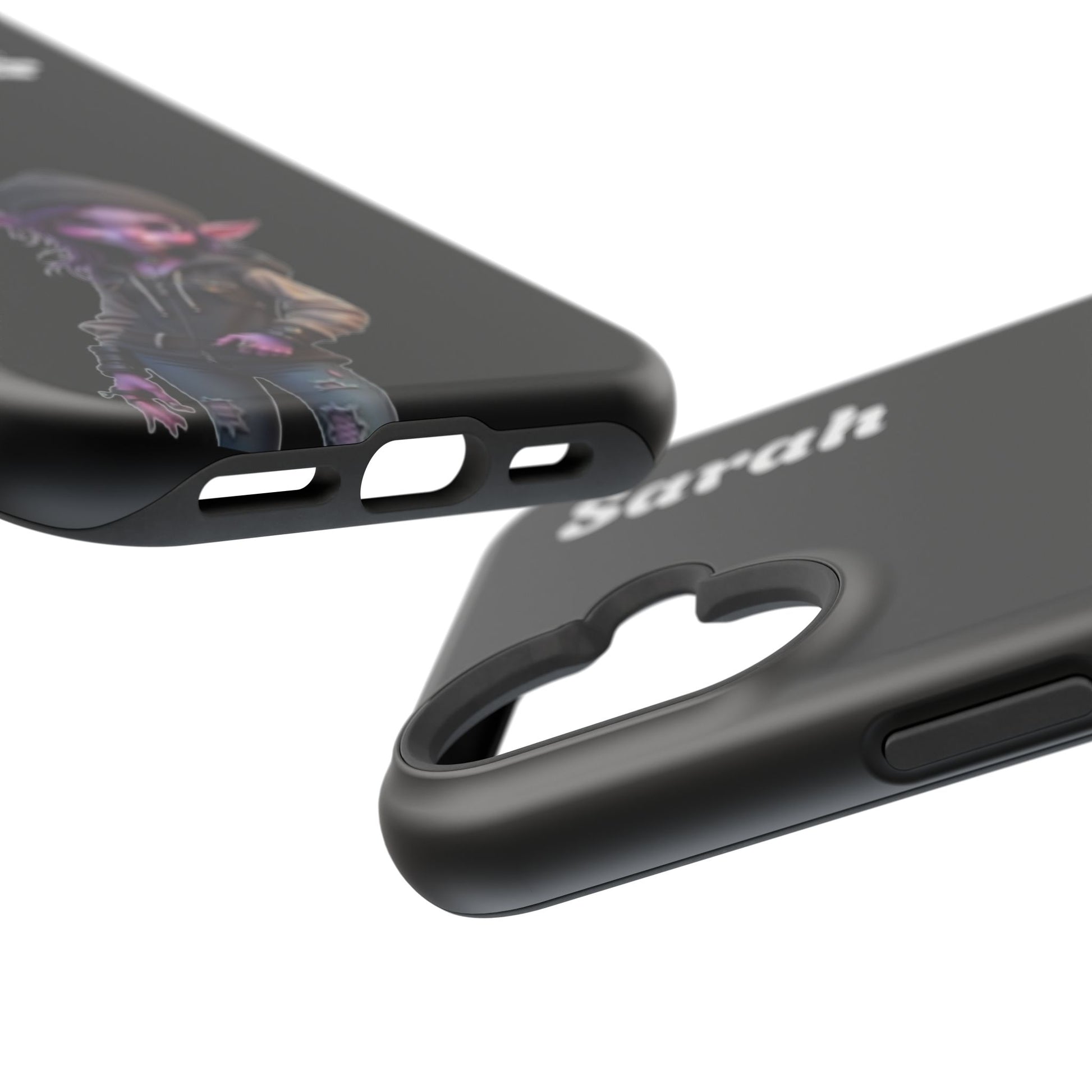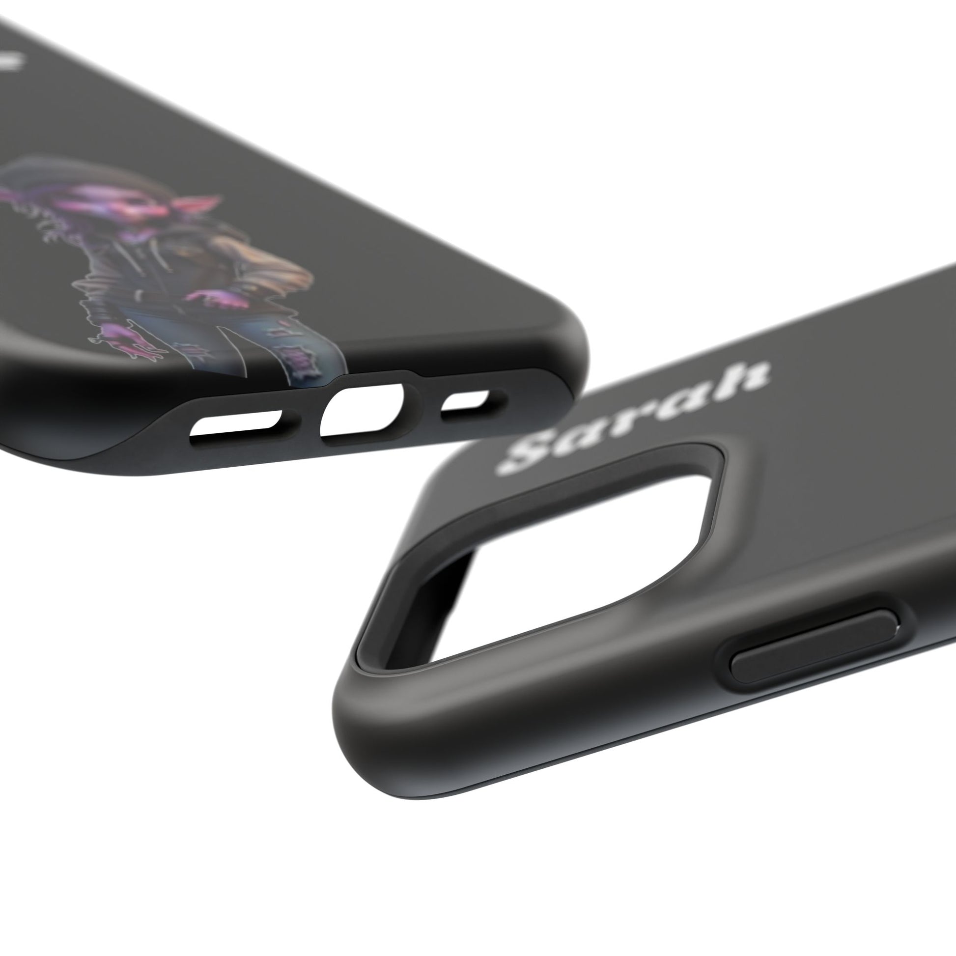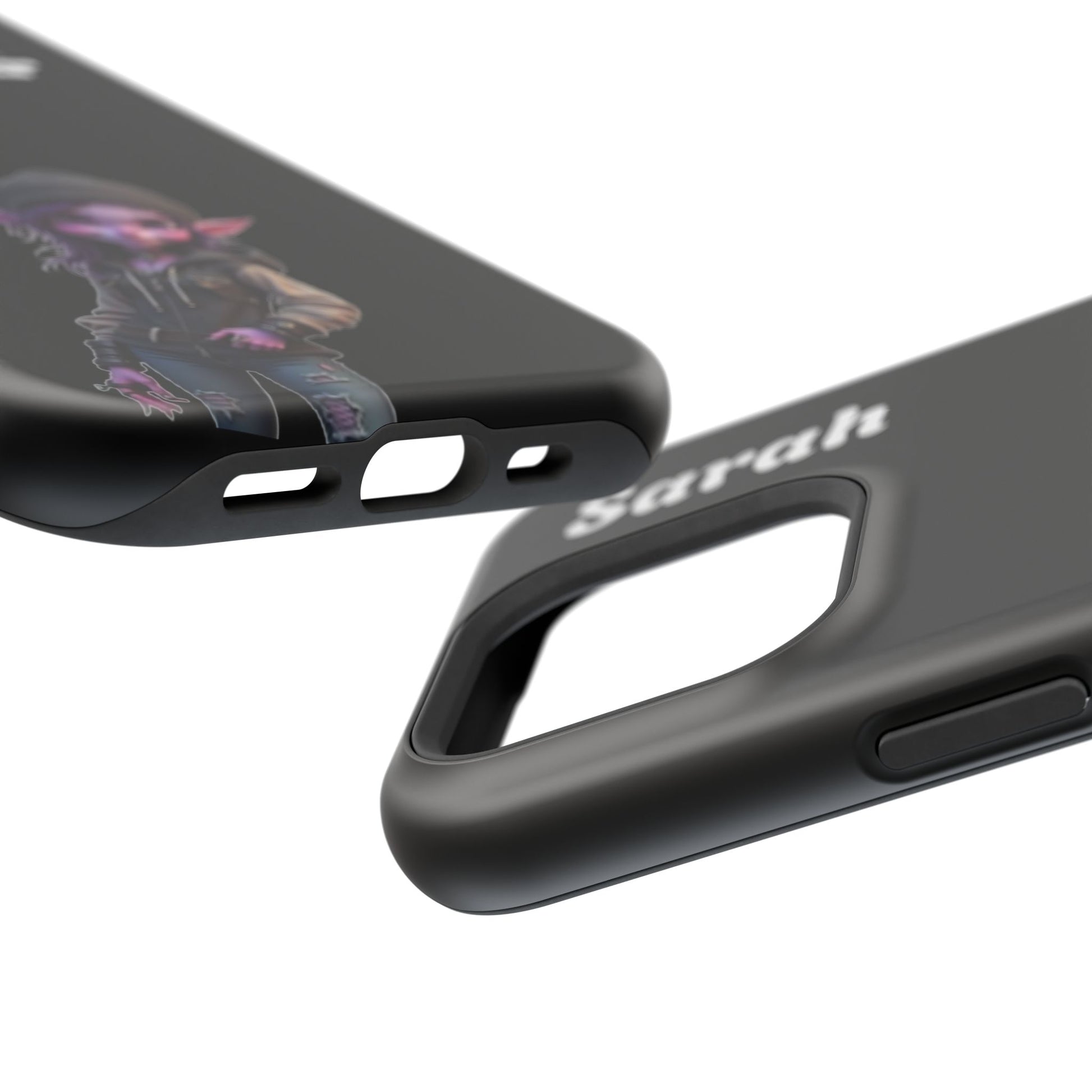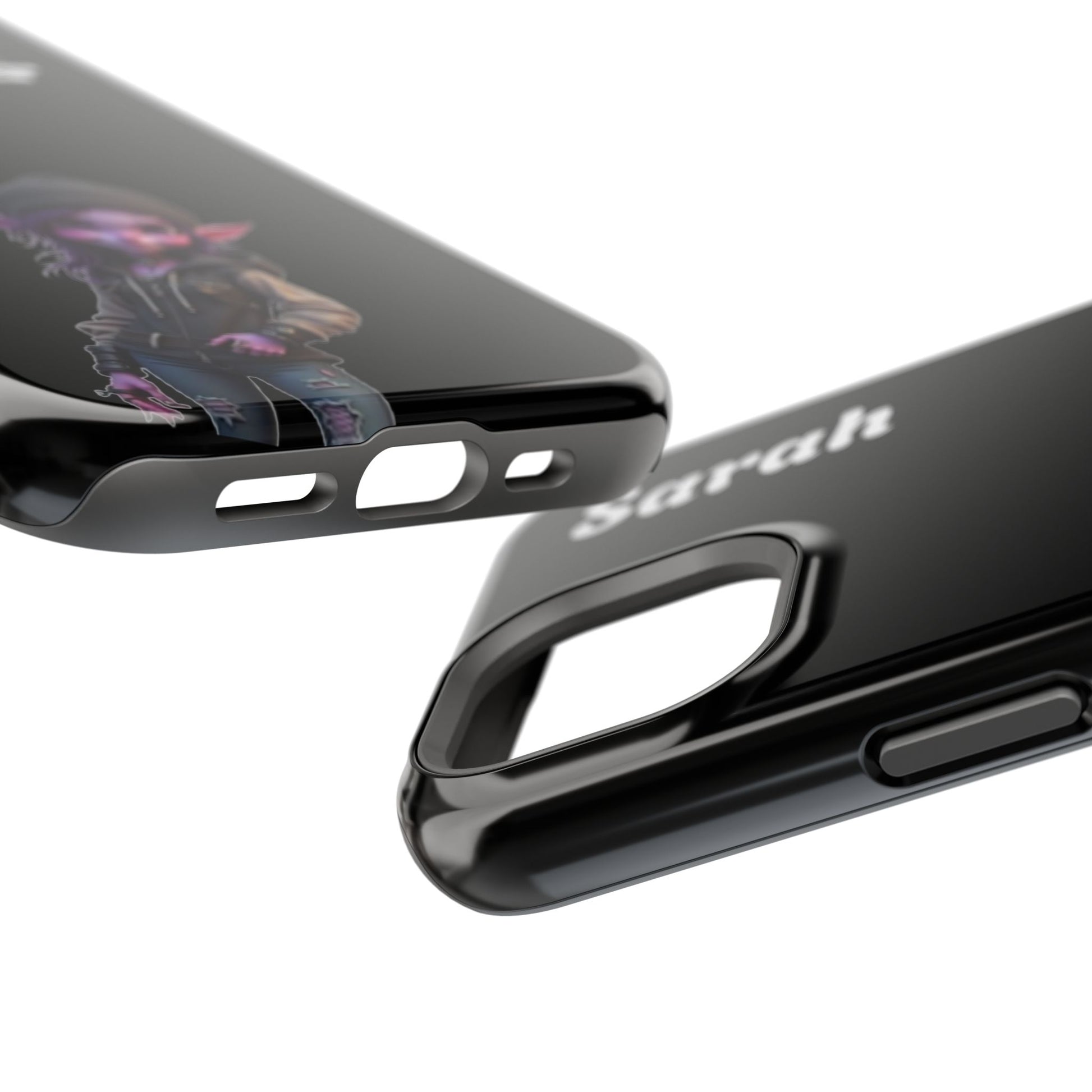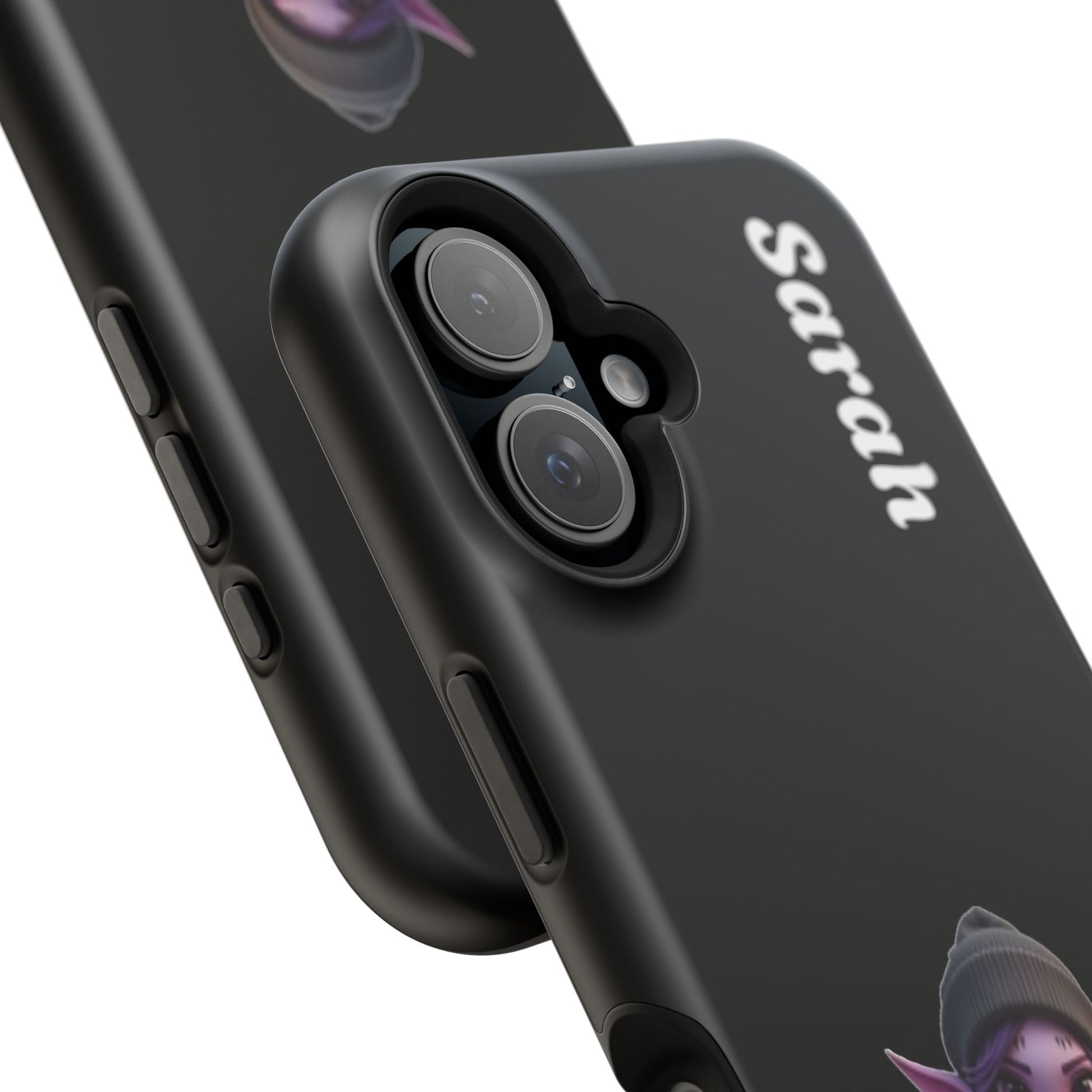 This striking case showcases an edgy elf design with bold colors and a confident attitude, complete with your chosen name vertically along the side. Prepare to turn heads!