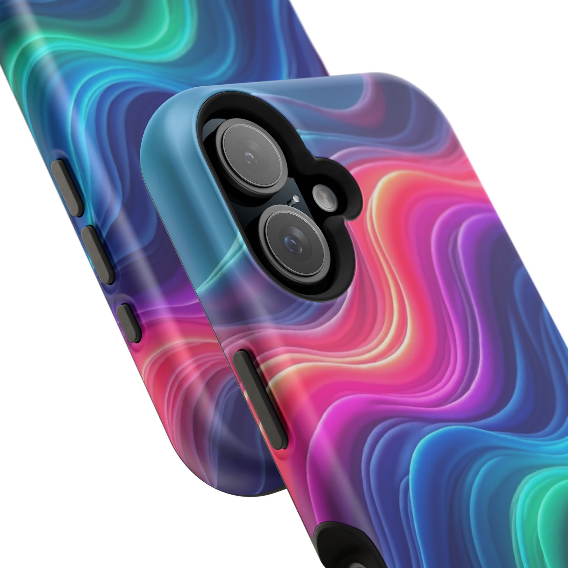 Introducing the Neon Flow Phone Case โ a beautifully detailed design featuring flowing waves in electrifying shades of pink, purple, blue and green. This isnโt just protection; it's a little bit of energetic vibes and artistic flair in your pocket, perfect for anyone who loves bold aesthetics or striking artwork!