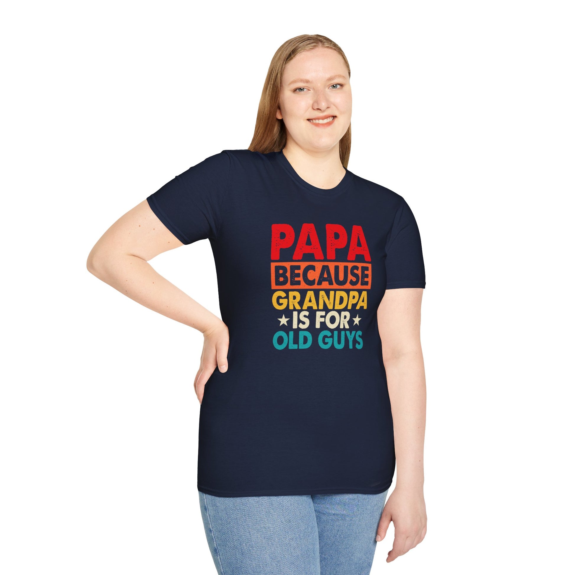 "Papa Because Grandpa Is for Old Guys" Funny Dad & Grandpa Humor T-Shirt β Ironic Family Gift Tee for Dads, Pops & Proud Papa Vibes