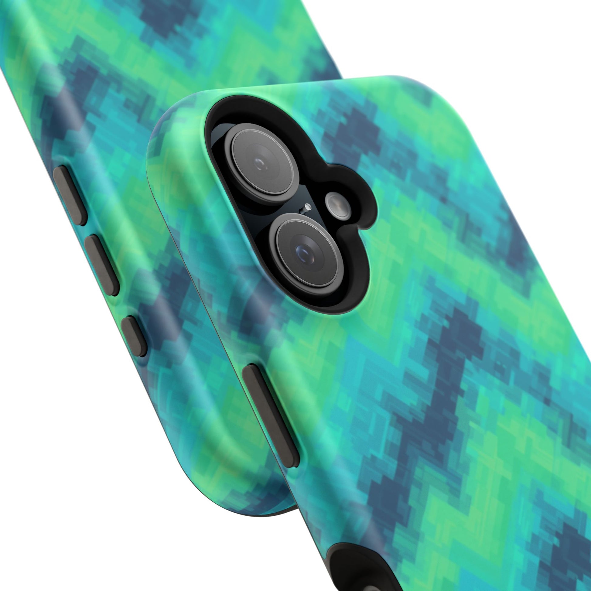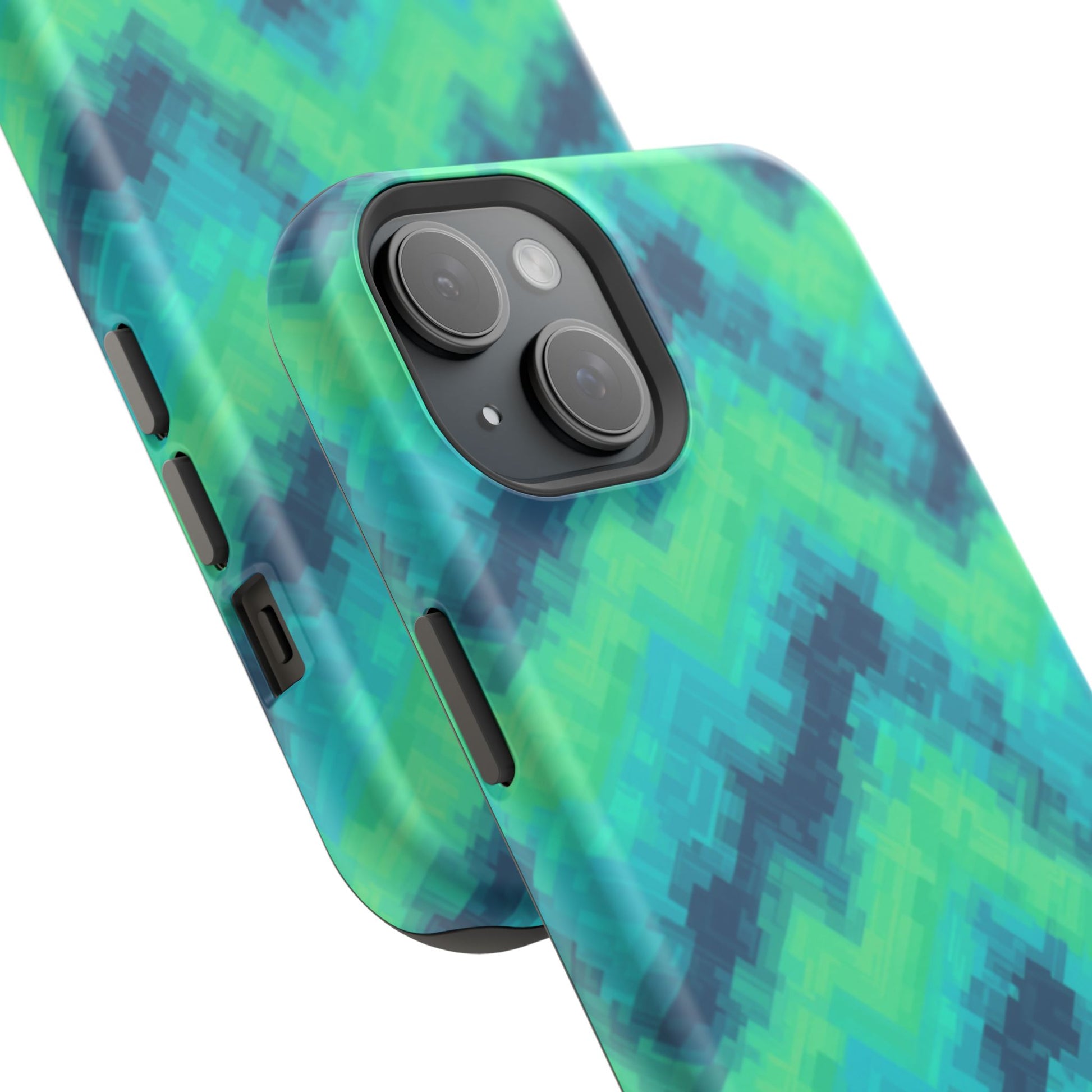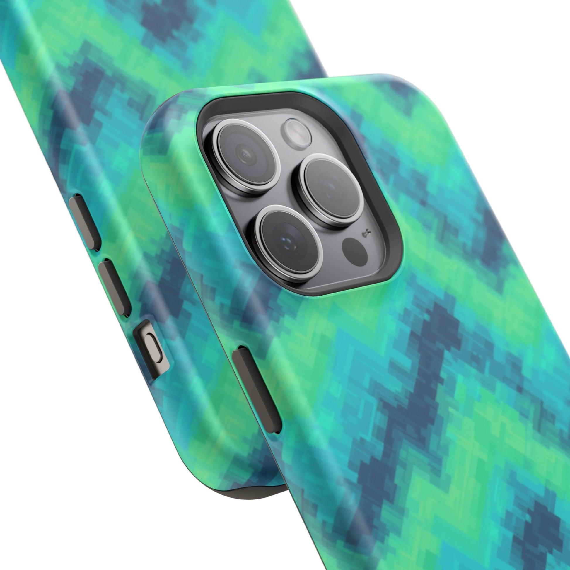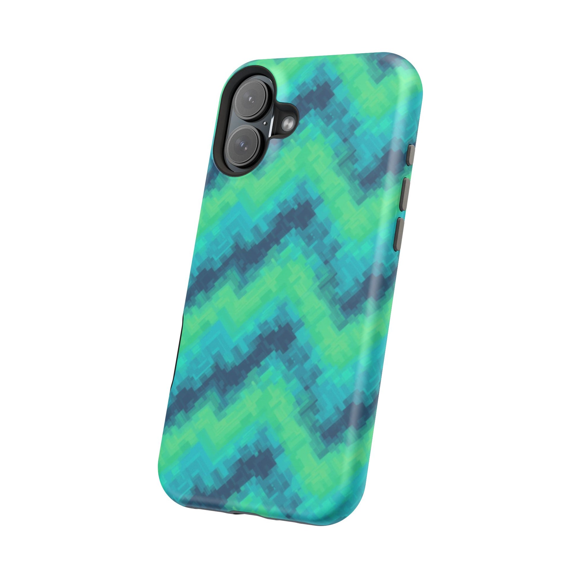 Featuring a striking zigzag pattern in shades of turquoise, teal, and lime green, this case is like holding a miniature arcade game in your hand. The slim design feels amazing in your grip, while durable construction keeps your iPhone safe from everyday bumps and scratches. Prepare for compliments – and maybe the urge to play some classic 8-bit tunes!
