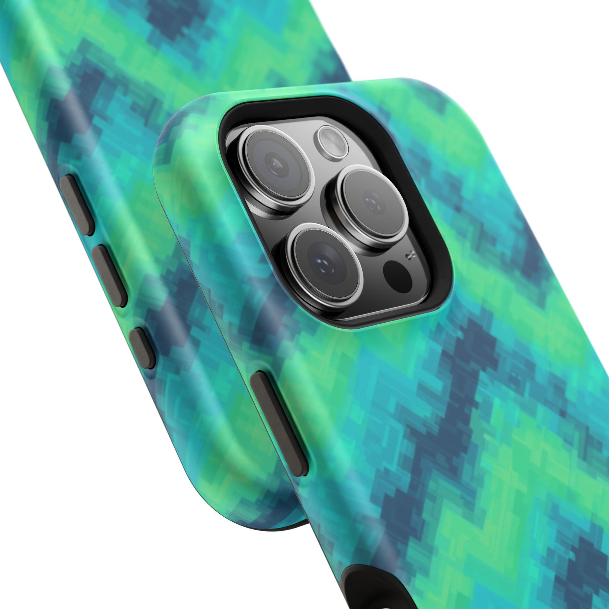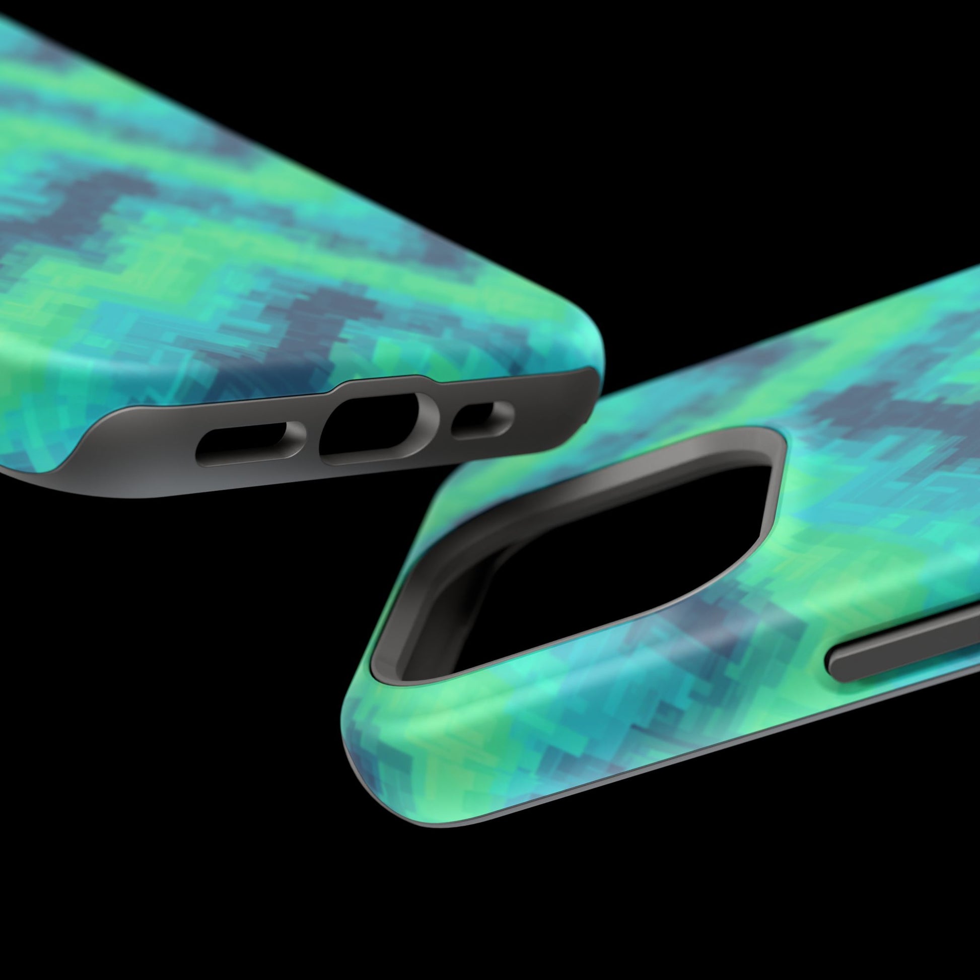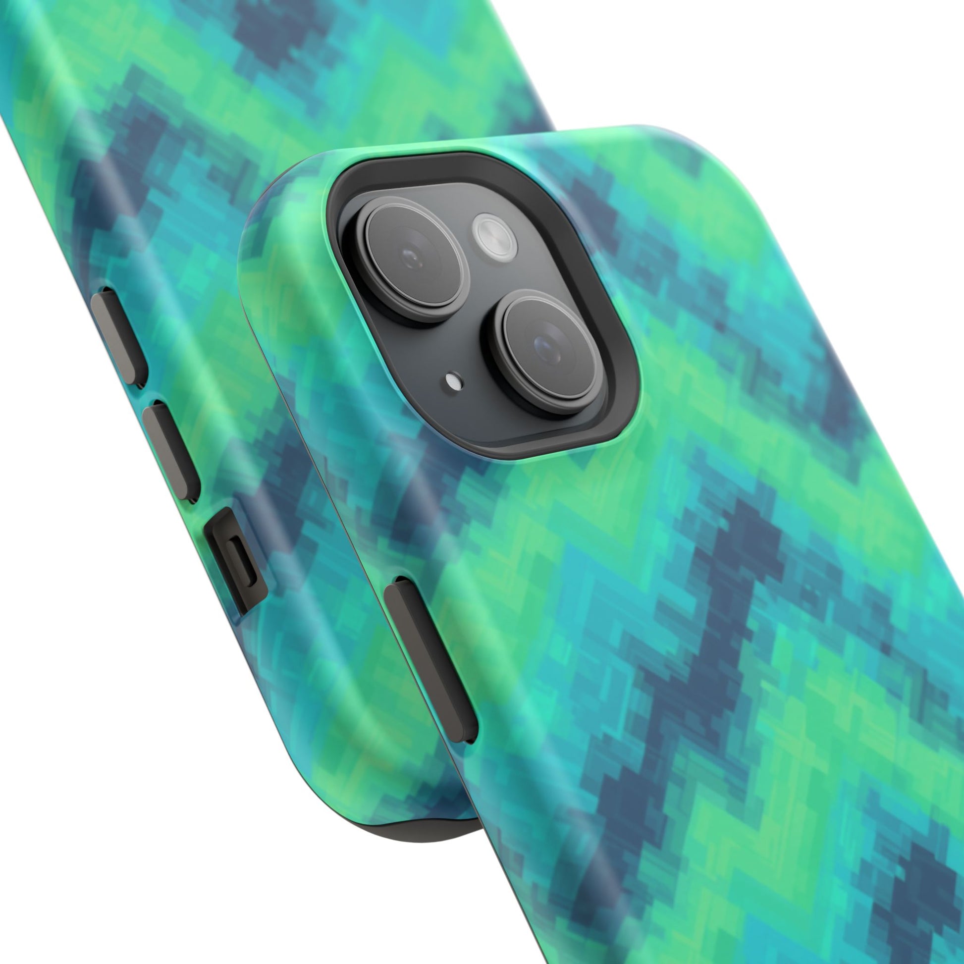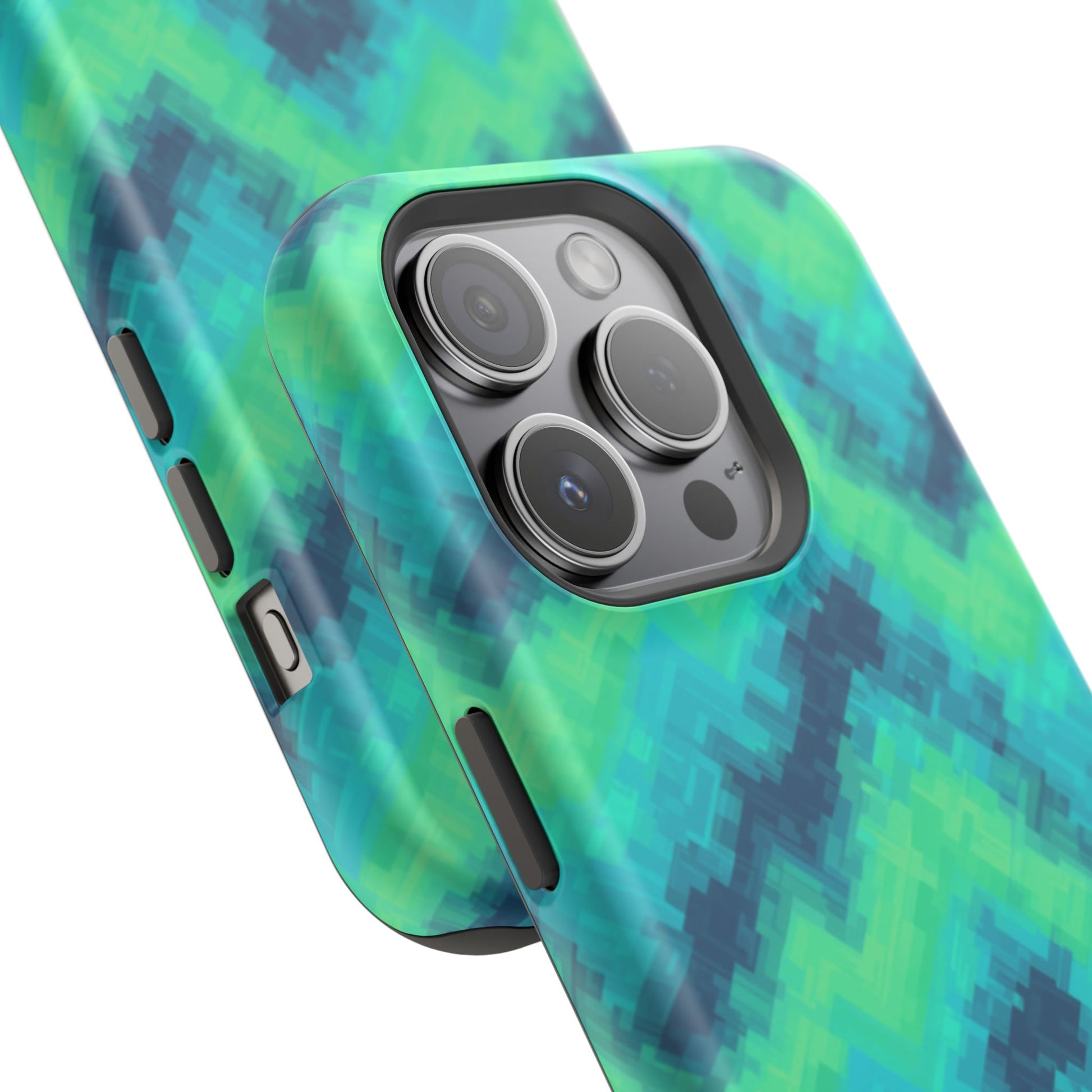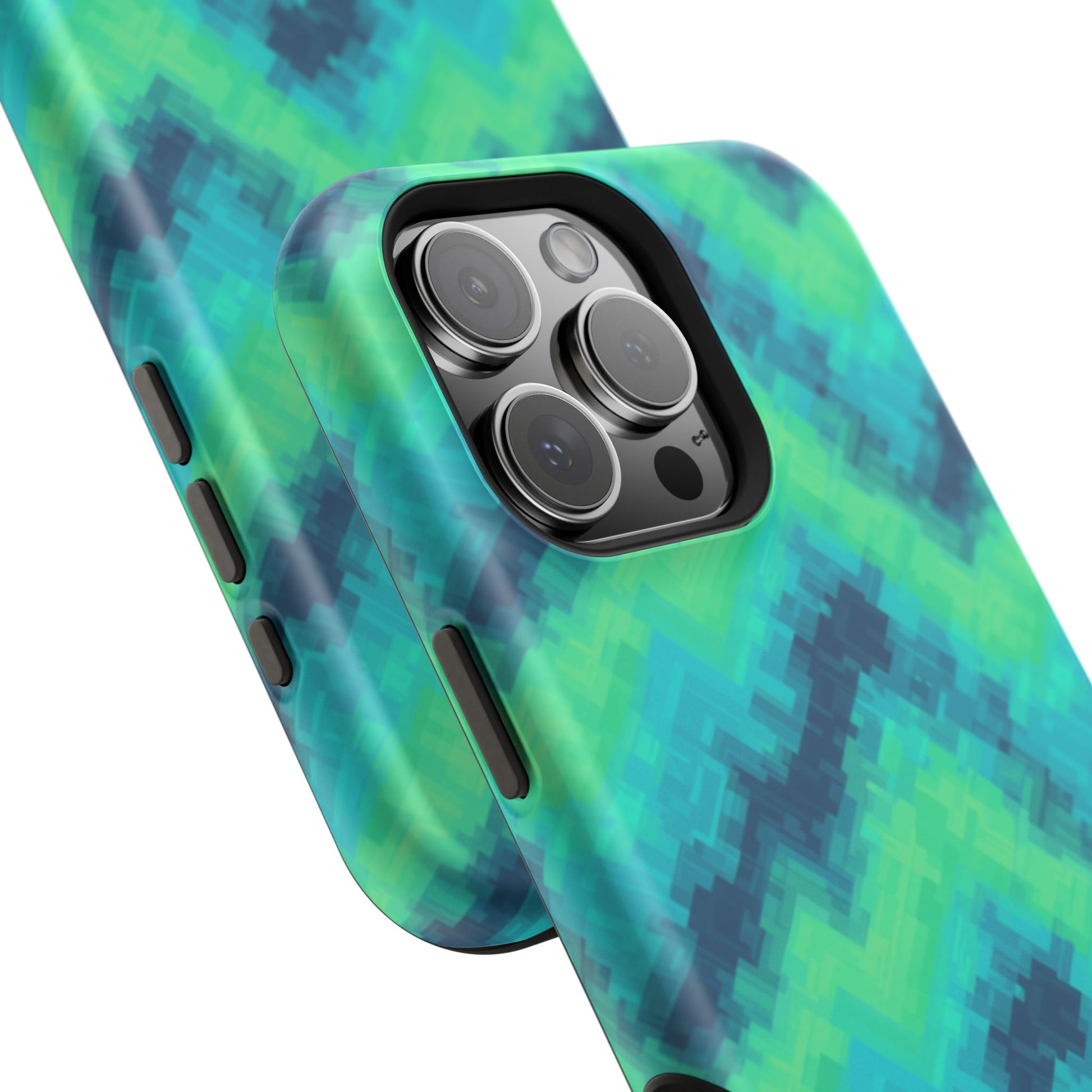 Featuring a striking zigzag pattern in shades of turquoise, teal, and lime green, this case is like holding a miniature arcade game in your hand. The slim design feels amazing in your grip, while durable construction keeps your iPhone safe from everyday bumps and scratches. Prepare for compliments – and maybe the urge to play some classic 8-bit tunes!
