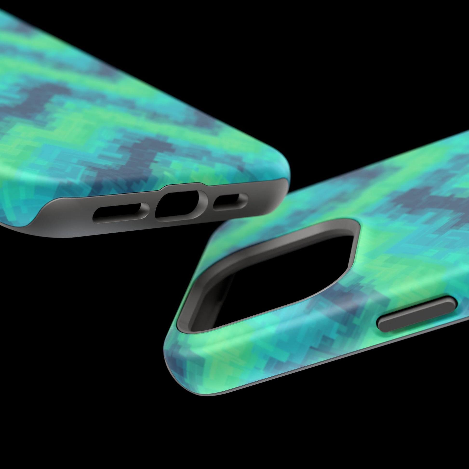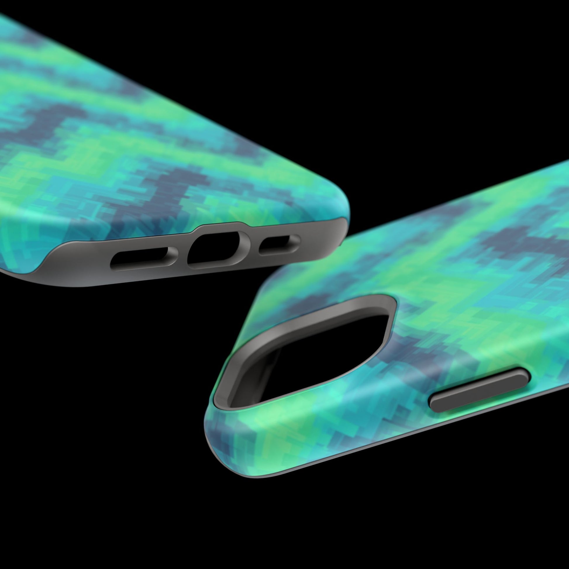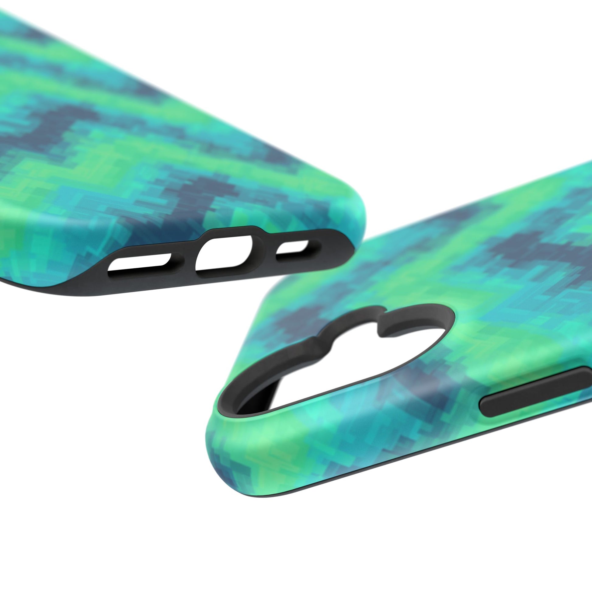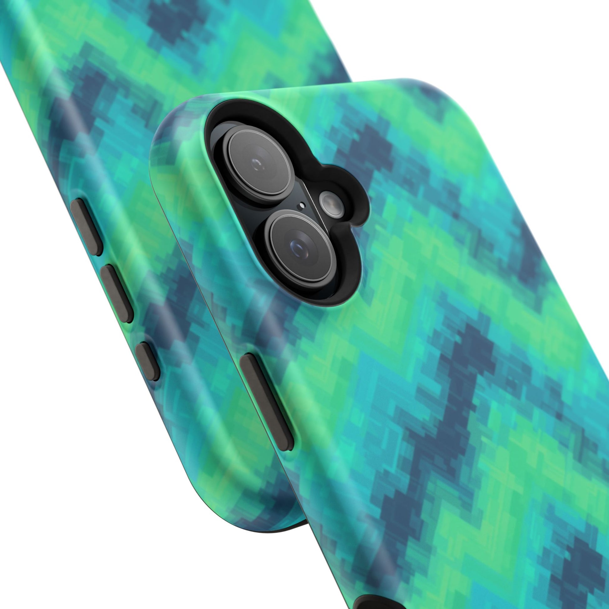 Featuring a striking zigzag pattern in shades of turquoise, teal, and lime green, this case is like holding a miniature arcade game in your hand. The slim design feels amazing in your grip, while durable construction keeps your iPhone safe from everyday bumps and scratches. Prepare for compliments – and maybe the urge to play some classic 8-bit tunes!