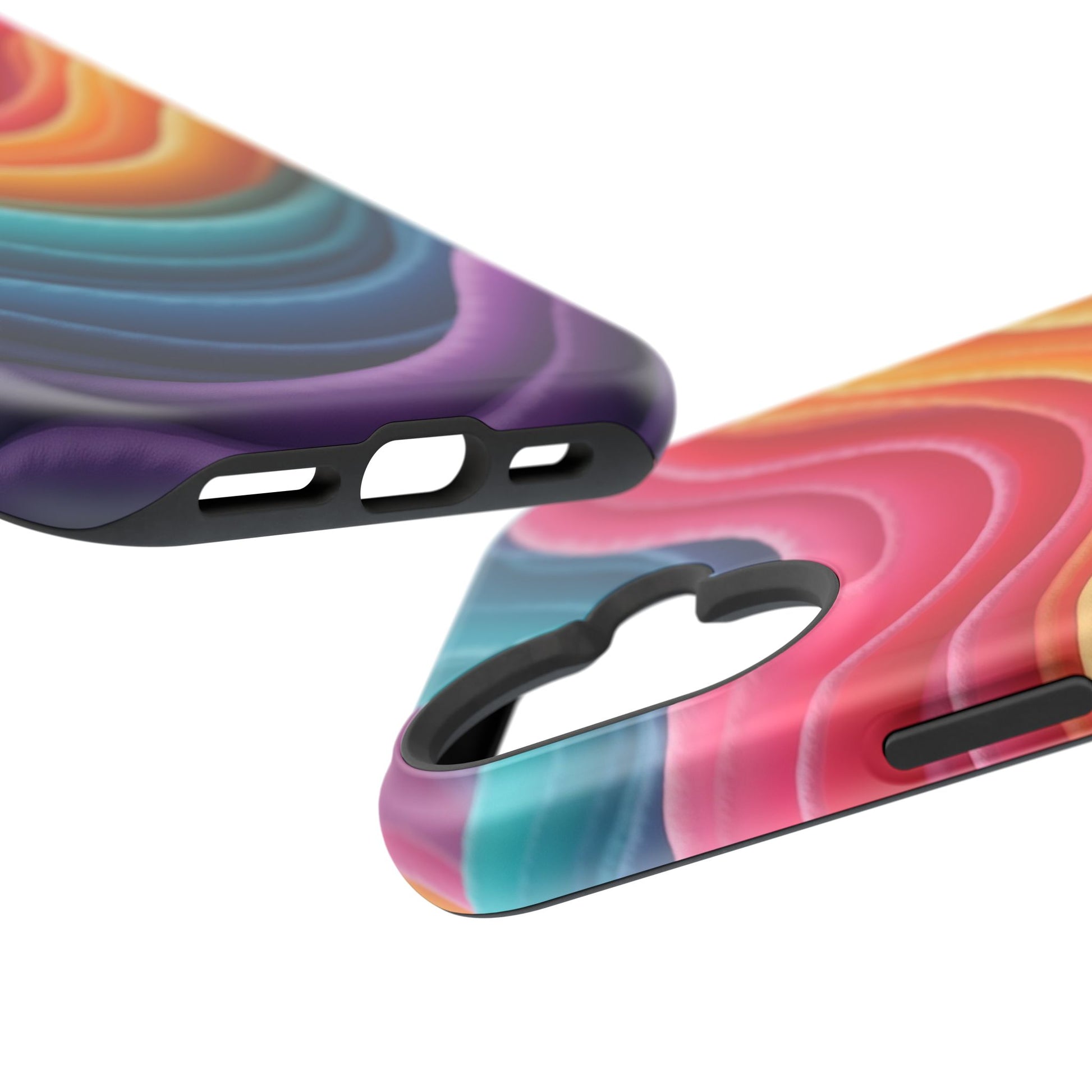 This striking case showcases smooth, symmetrical waves with a gradient color scheme that evokes a feeling of happiness and flow. Prepare to be captivated by this harmonious design!