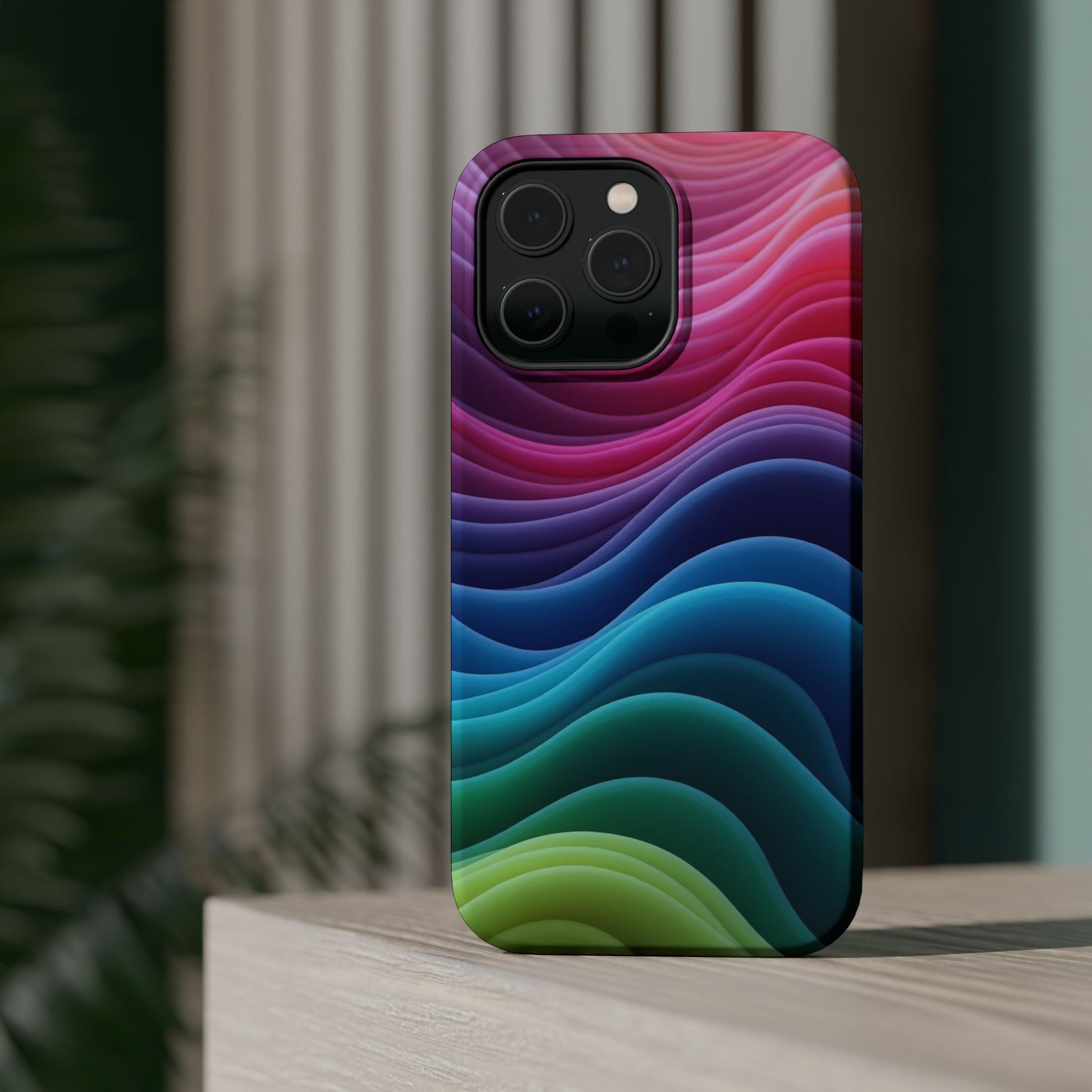 This eye-catching case showcases smooth, layered waves that blend vibrant pinks, blues, greens and purples into a truly unique look. Perfect for anyone who loves bold colors, artistic designs, or just wants to add a splash of joy!