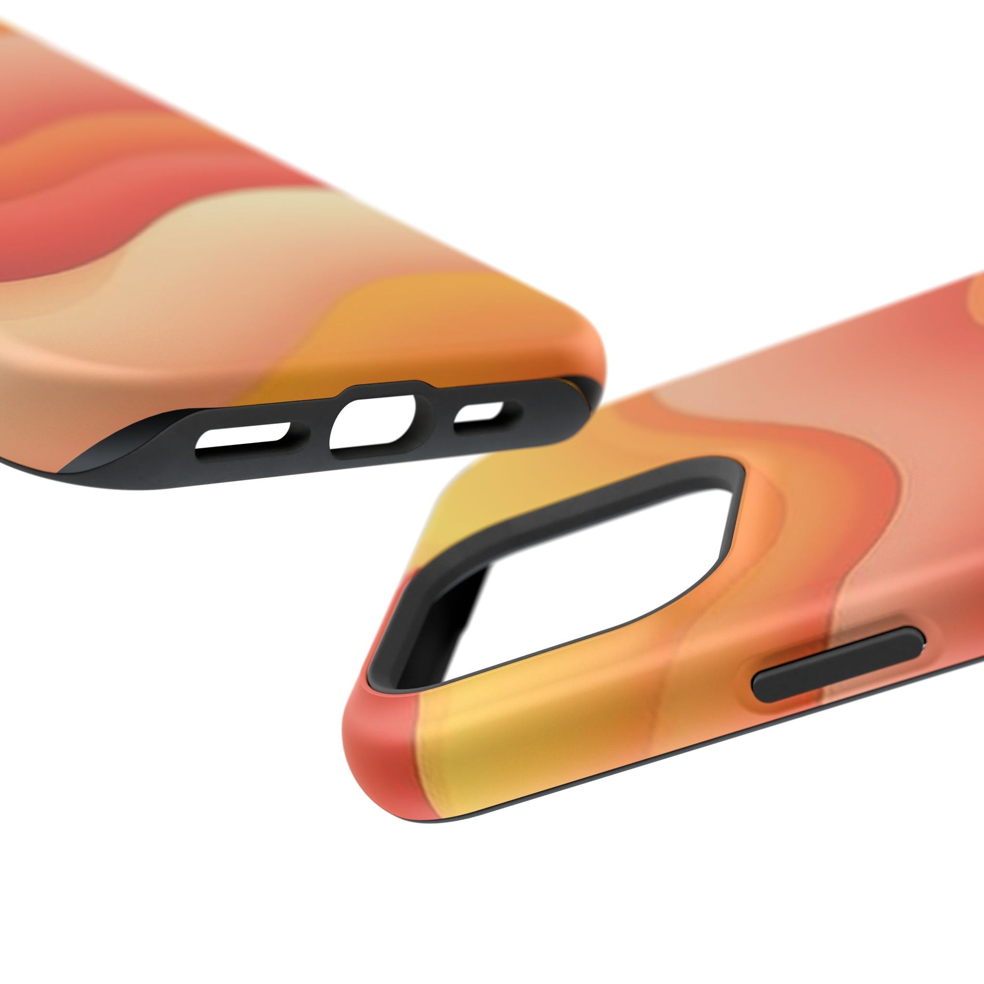 This striking case features flowing waves in shades of golden yellow, burnt orange, and peach, creating a calming and cheerful aesthetic. Itโs like holding sunshine in your hand!