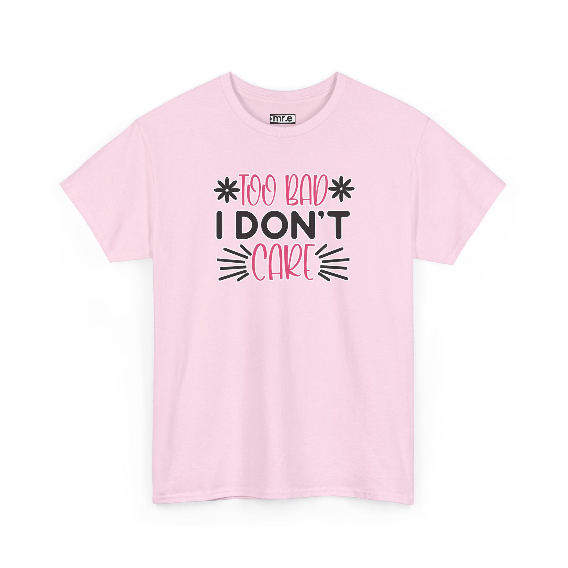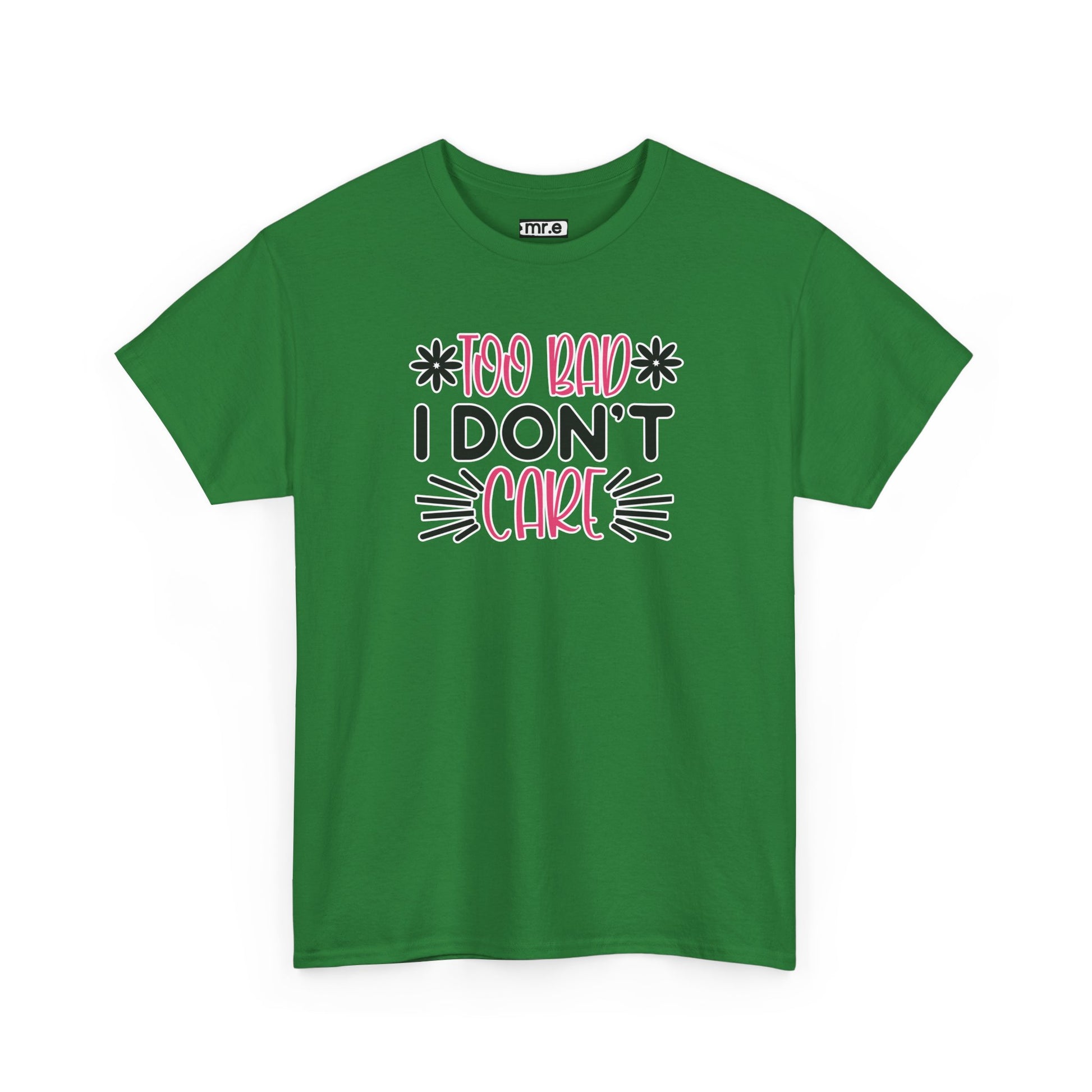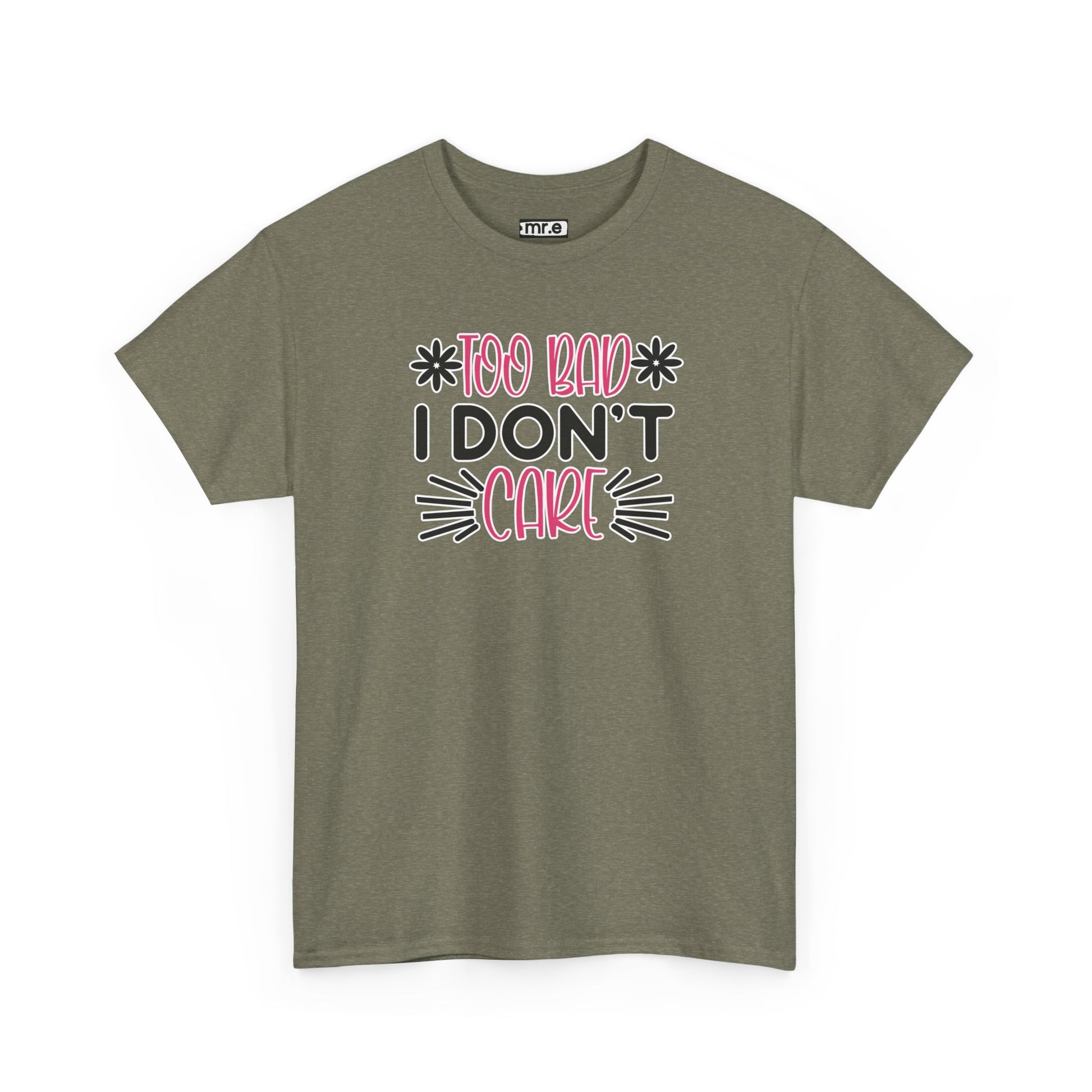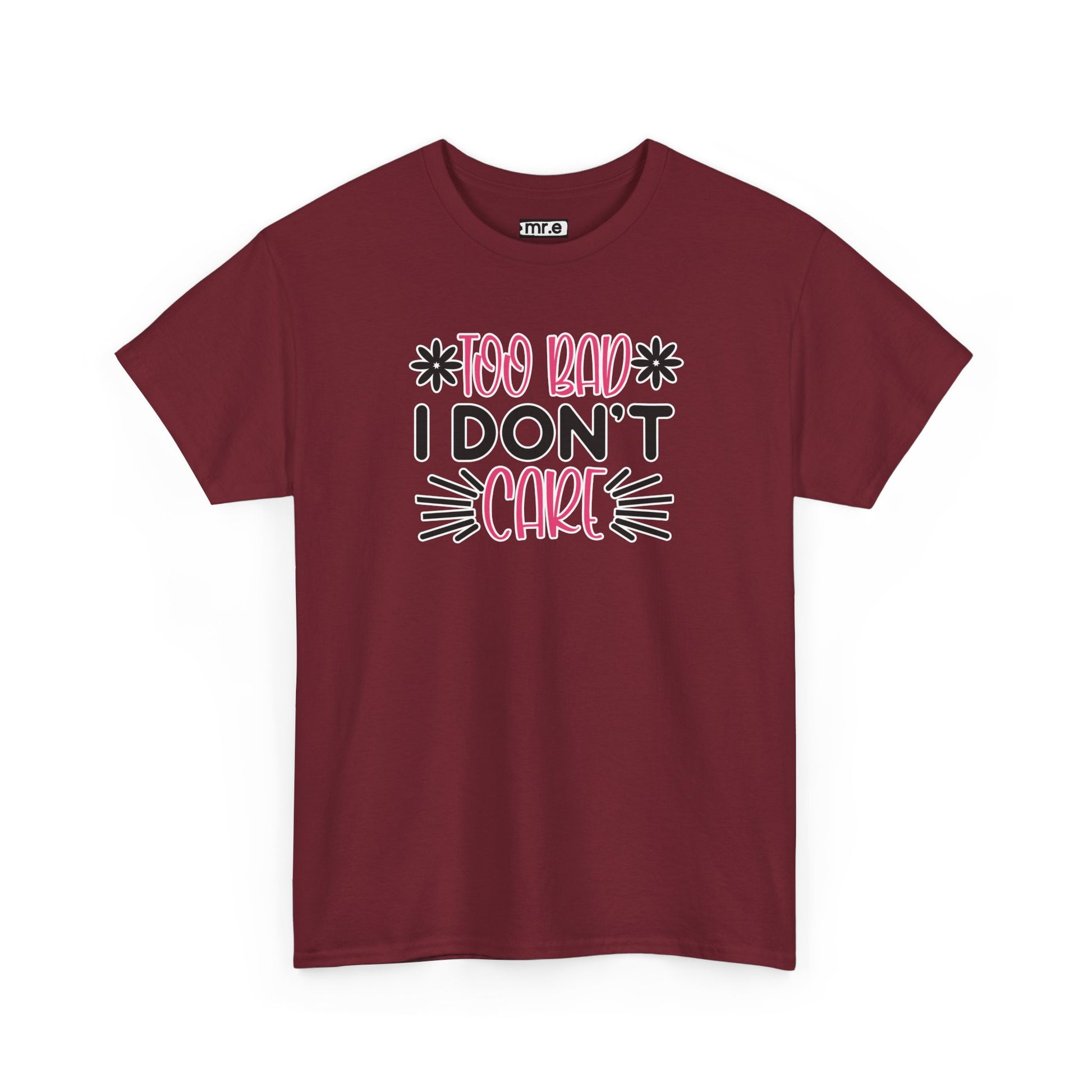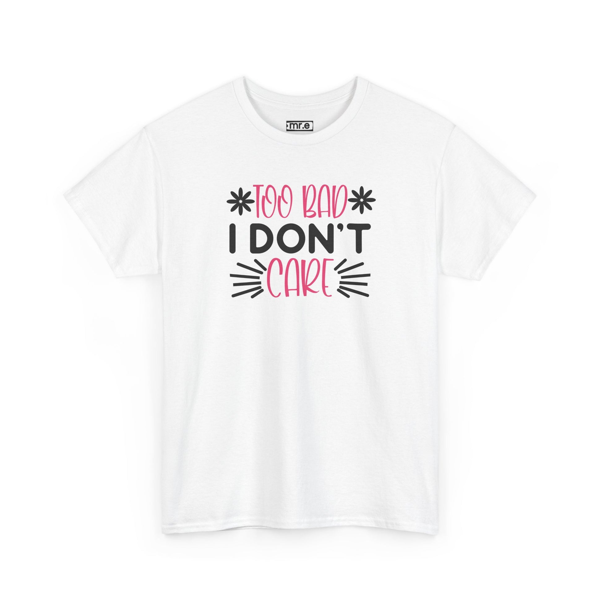 "Too Bad I Don’t Care" Sarcastic Confidence Tee – Bold & Attitude-Forward Graphic Shirt for Unbothered Vibes, Dry Wit & Chill Energy